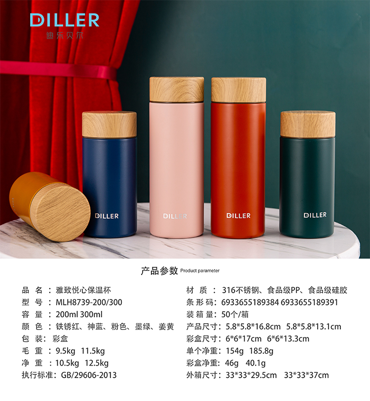 商品名称:迪乐贝尔炫彩直饮杯保温杯成人316不锈钢喝水杯学生随手杯便携杯女办公室保温水杯300ML
