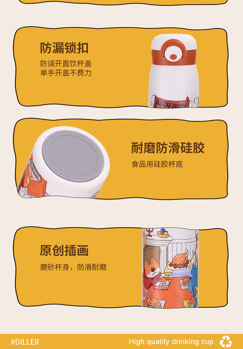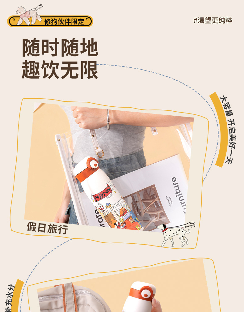 商品名称:迪乐贝尔新款修狗系列水杯女士保温杯学生水壶成人直饮杯便携喝水杯吸管杯大容量杯子