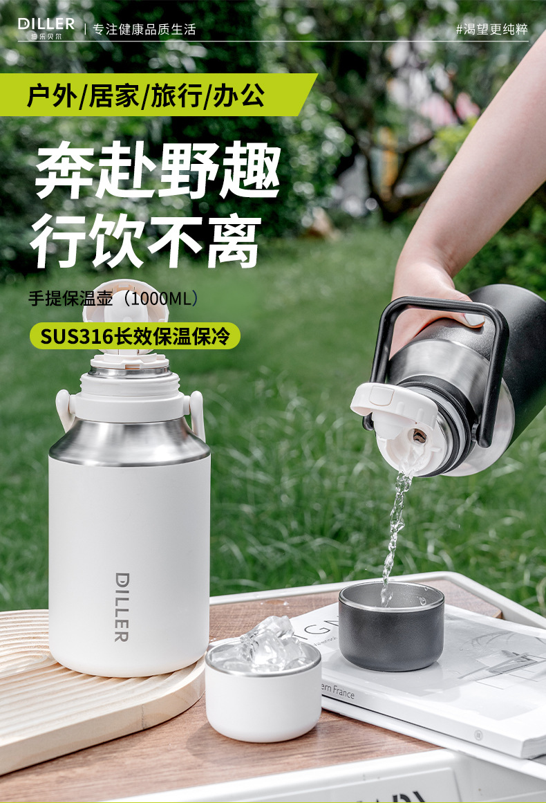 迪乐贝尔新款家用保温杯大容量女生水杯儿童学生杯子泡茶杯成人户外运动保温水壶1000ML