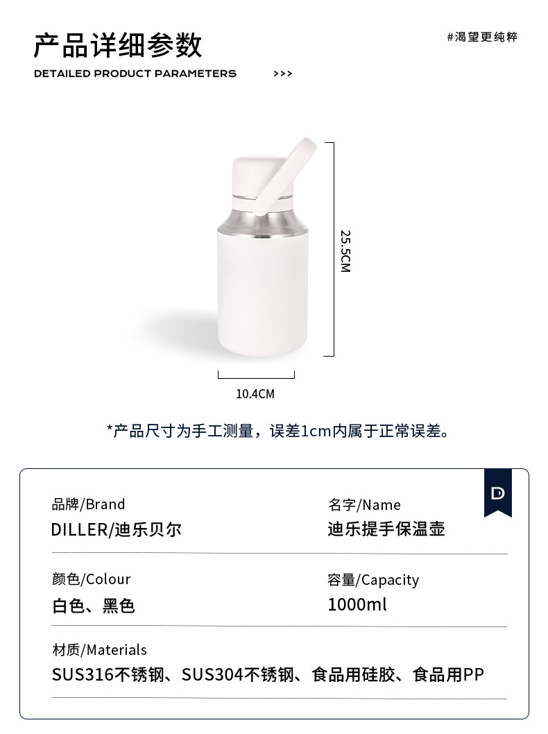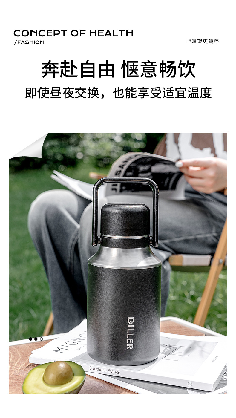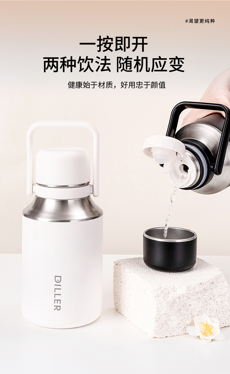 商品名称:迪乐贝尔新款家用保温杯大容量女生水杯儿童学生杯子泡茶杯成人户外运动保温水壶1000ML
