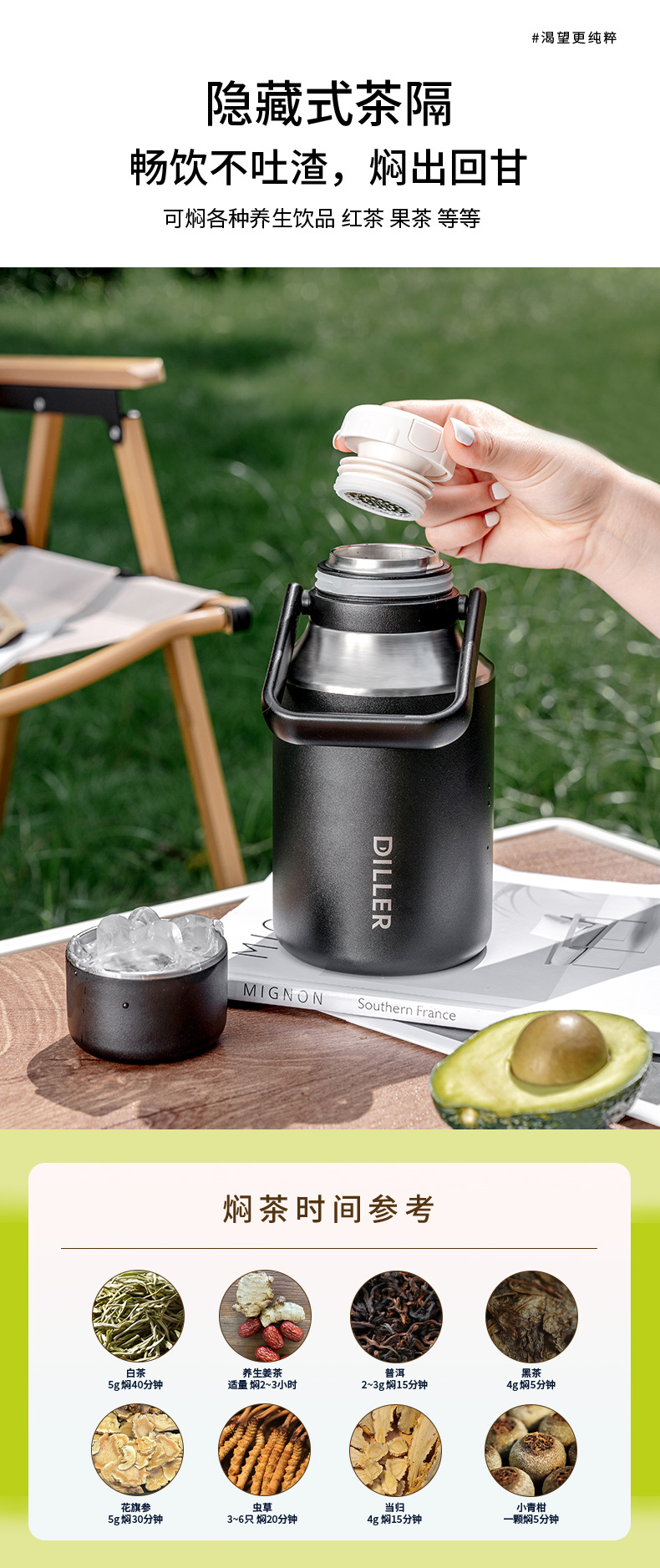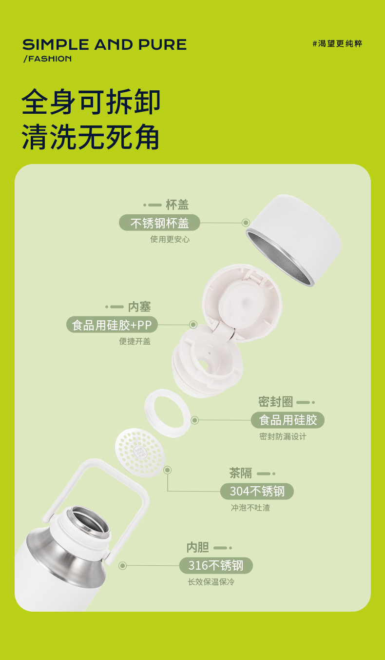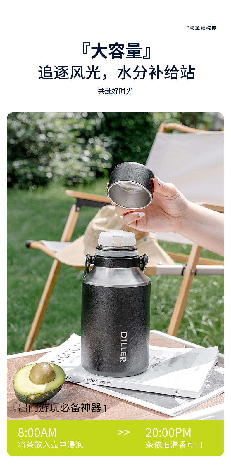 商品名称:迪乐贝尔新款家用保温杯大容量女生水杯儿童学生杯子泡茶杯成人户外运动保温水壶1000ML
