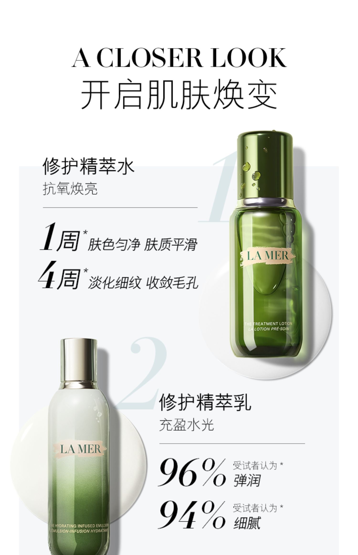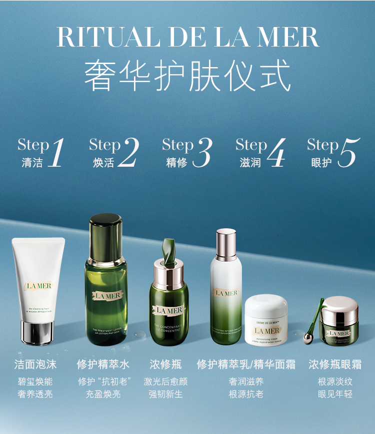 商品名称:La Mer/海蓝之谜 水润抵达套装 精萃水150ml+精萃乳125ml+经典面霜60ml+修护唇膏9g