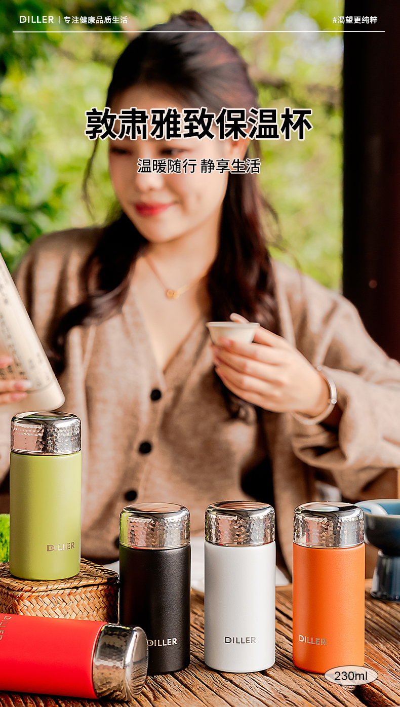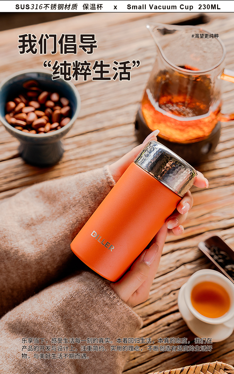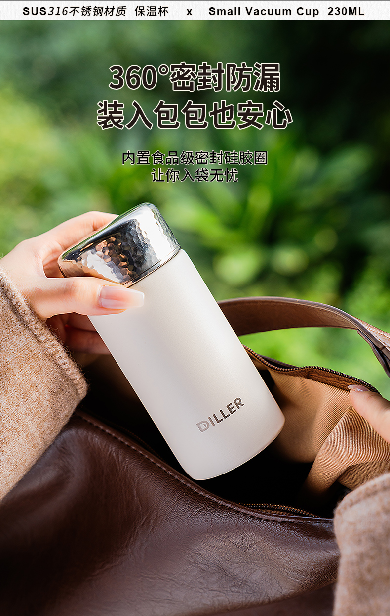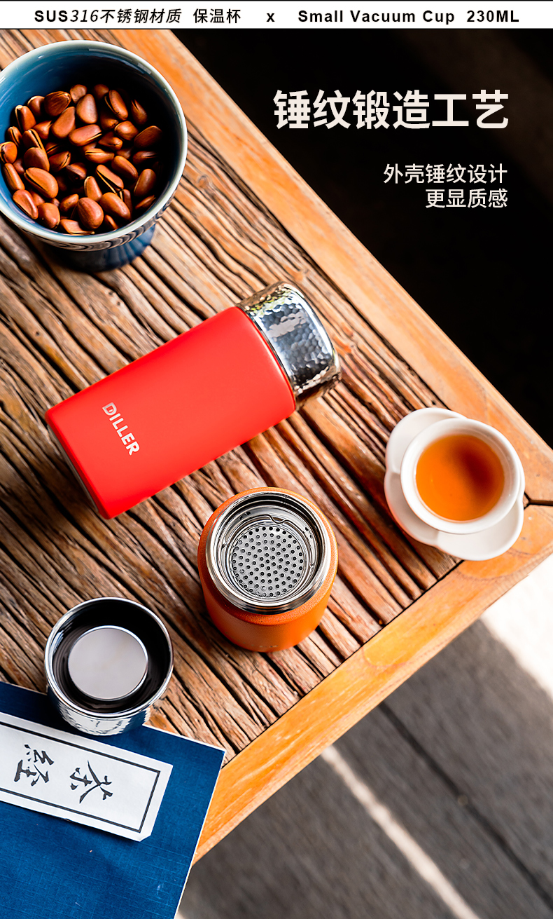 迪乐贝尔新品锤纹口袋杯女士便携直饮杯茶隔迷你保温杯子学生316不锈钢成人小巧水杯