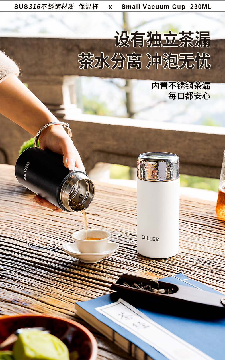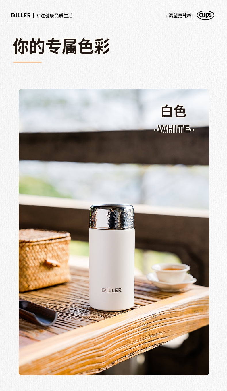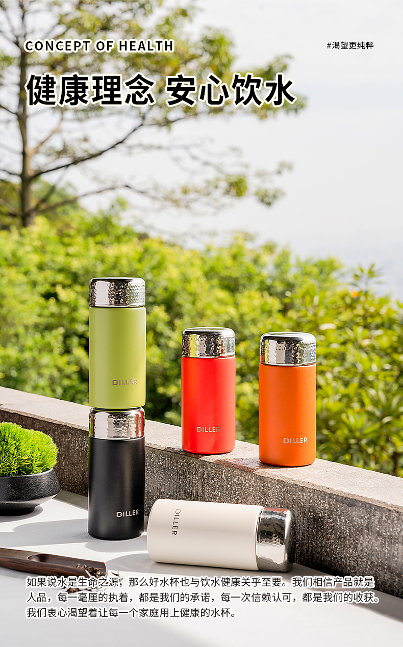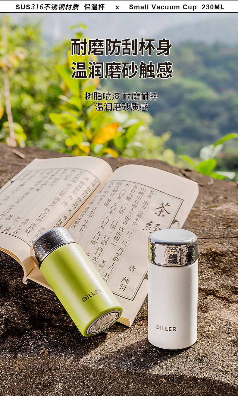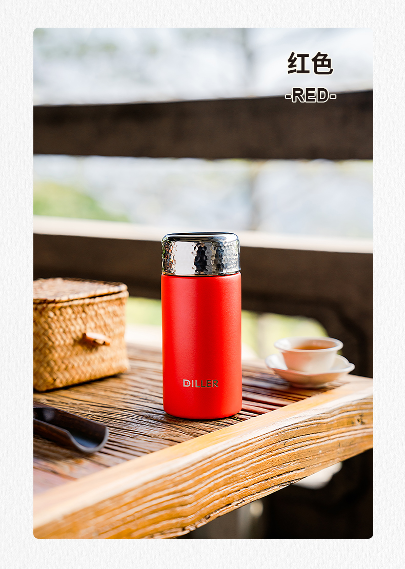 迪乐贝尔新品锤纹口袋杯女士便携直饮杯茶隔迷你保温杯子学生316不锈钢成人小巧水杯