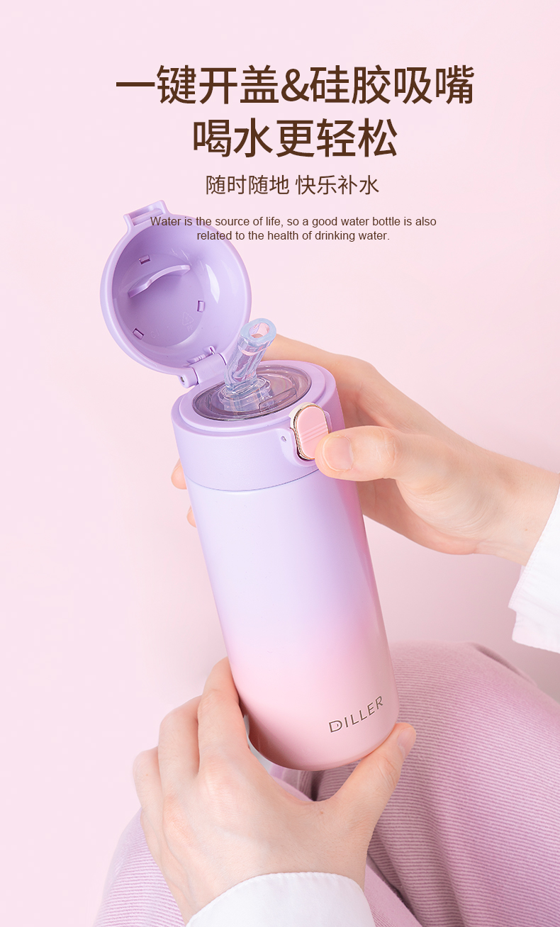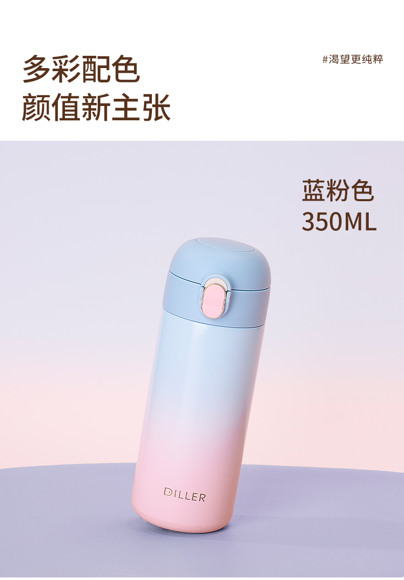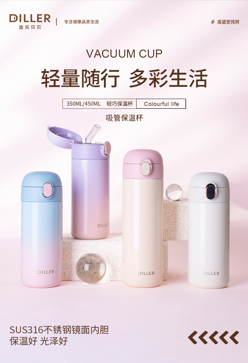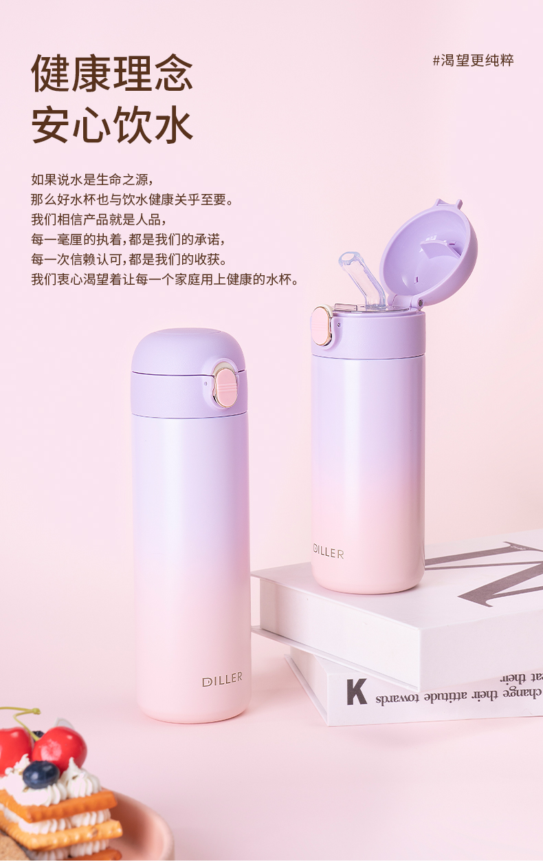 商品名称:2024新款迪乐贝尔保温杯渐变色杯子简约316不锈钢弹盖吸管杯便携成人喝水杯女士水杯