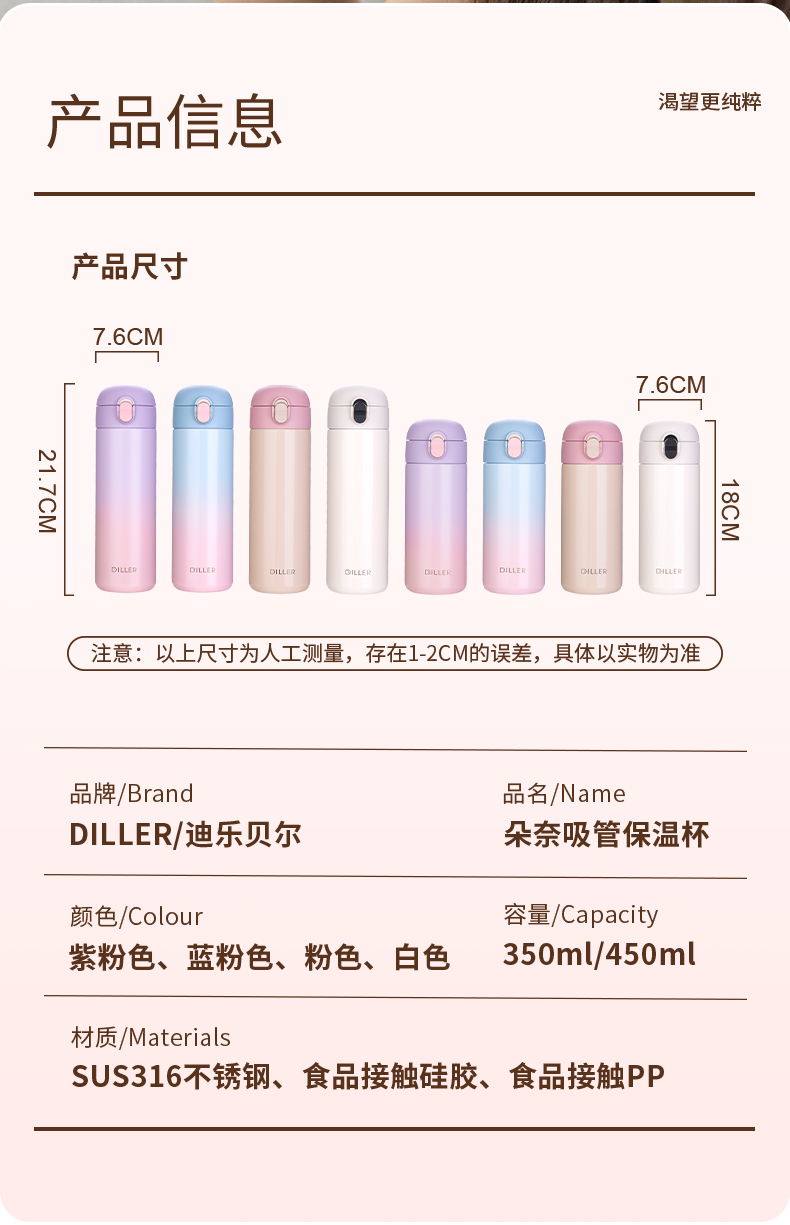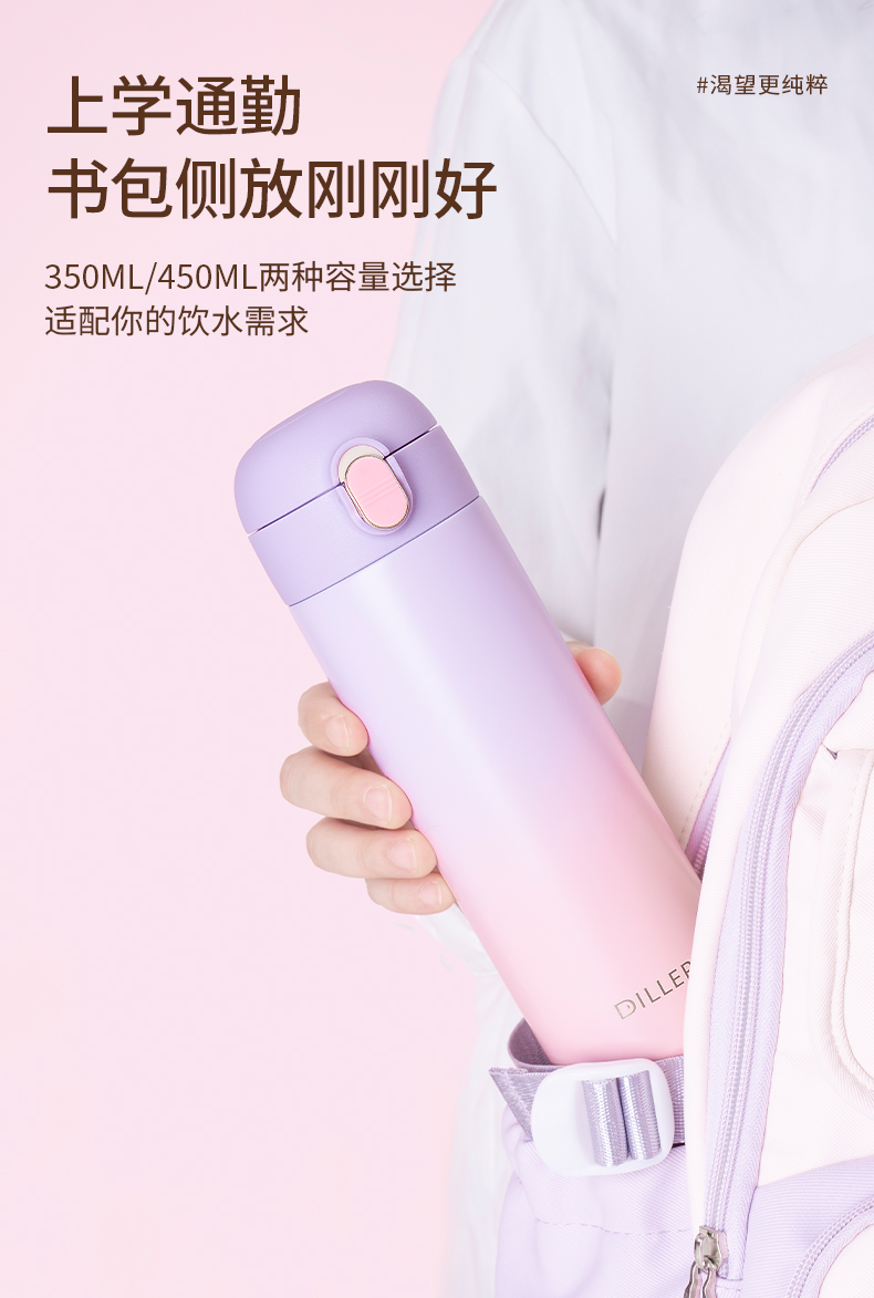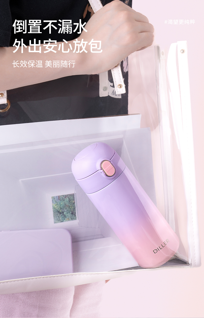 商品名称:2024新款迪乐贝尔保温杯渐变色杯子简约316不锈钢弹盖吸管杯便携成人喝水杯女士水杯