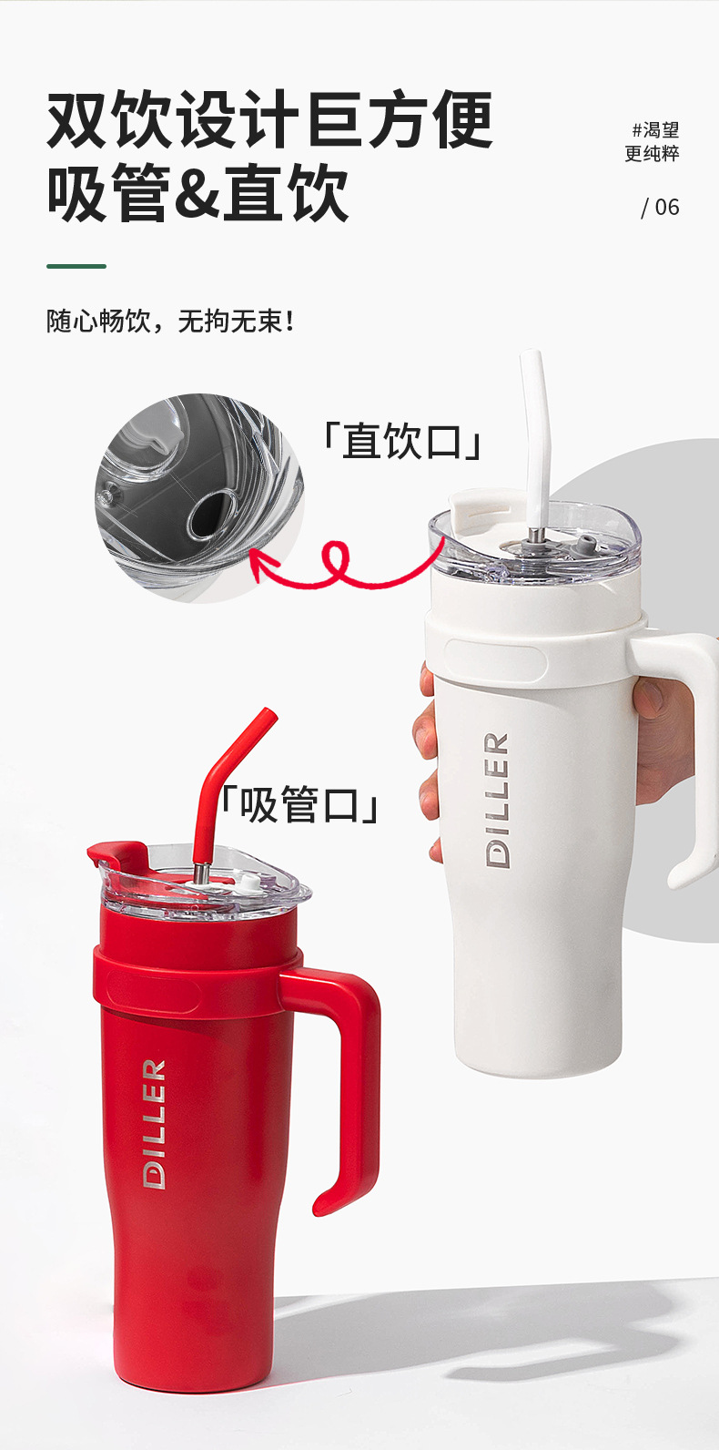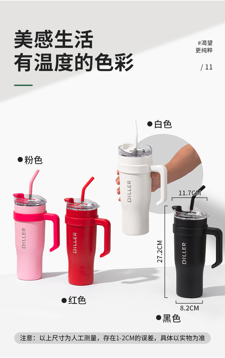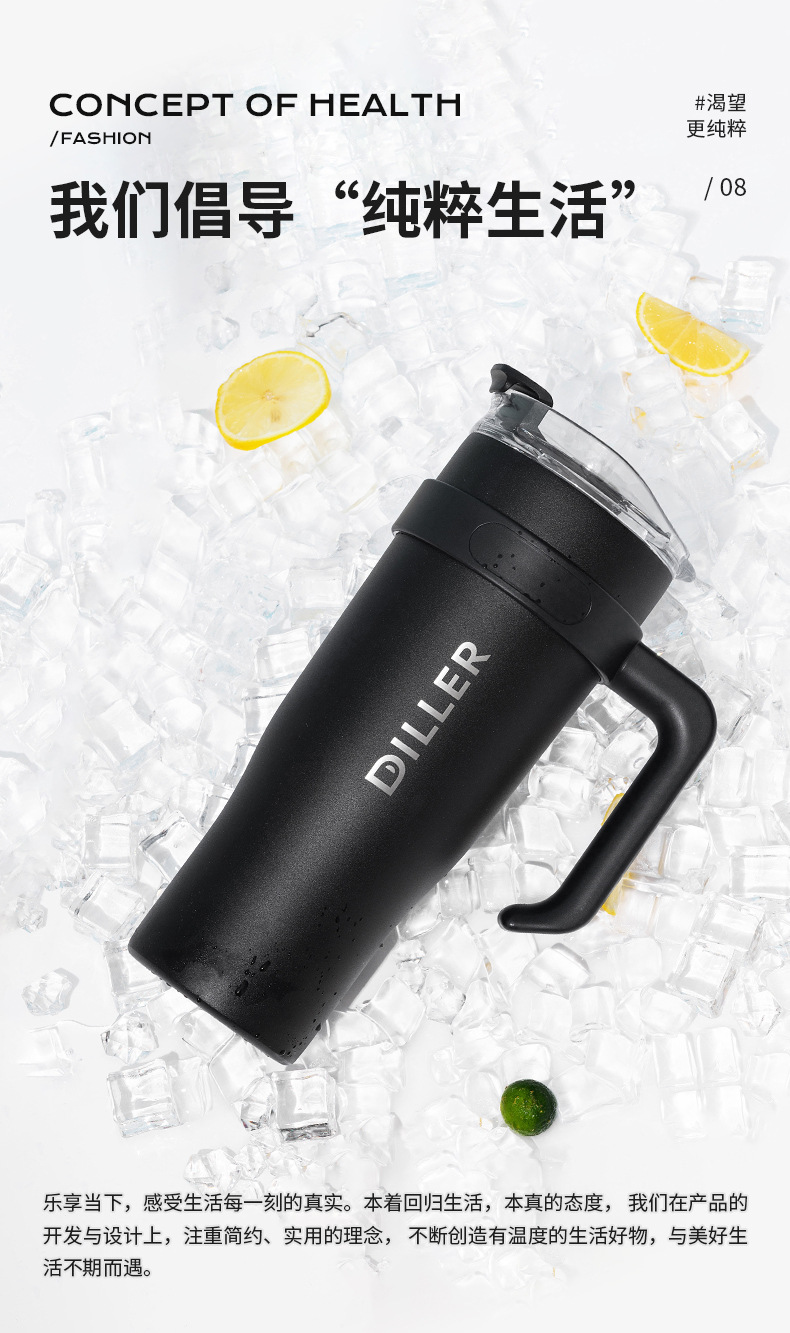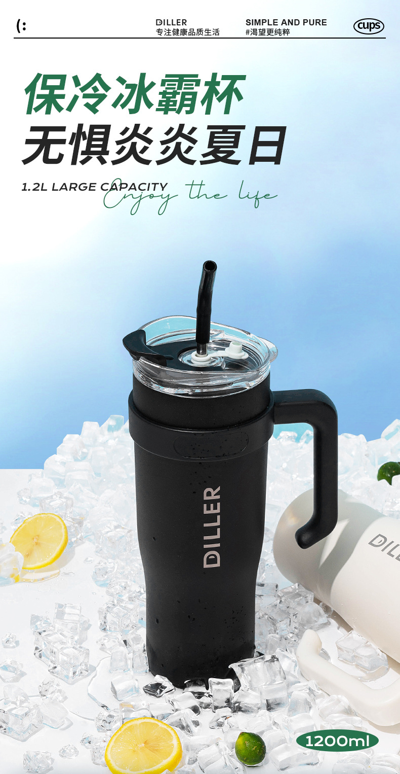 商品名称:迪乐贝尔网红冰霸杯男女高颜值不锈钢水杯车载巨无霸保温杯夏季成人带吸管保冷杯子