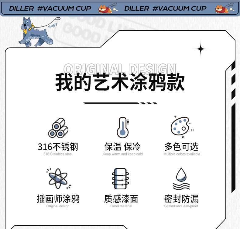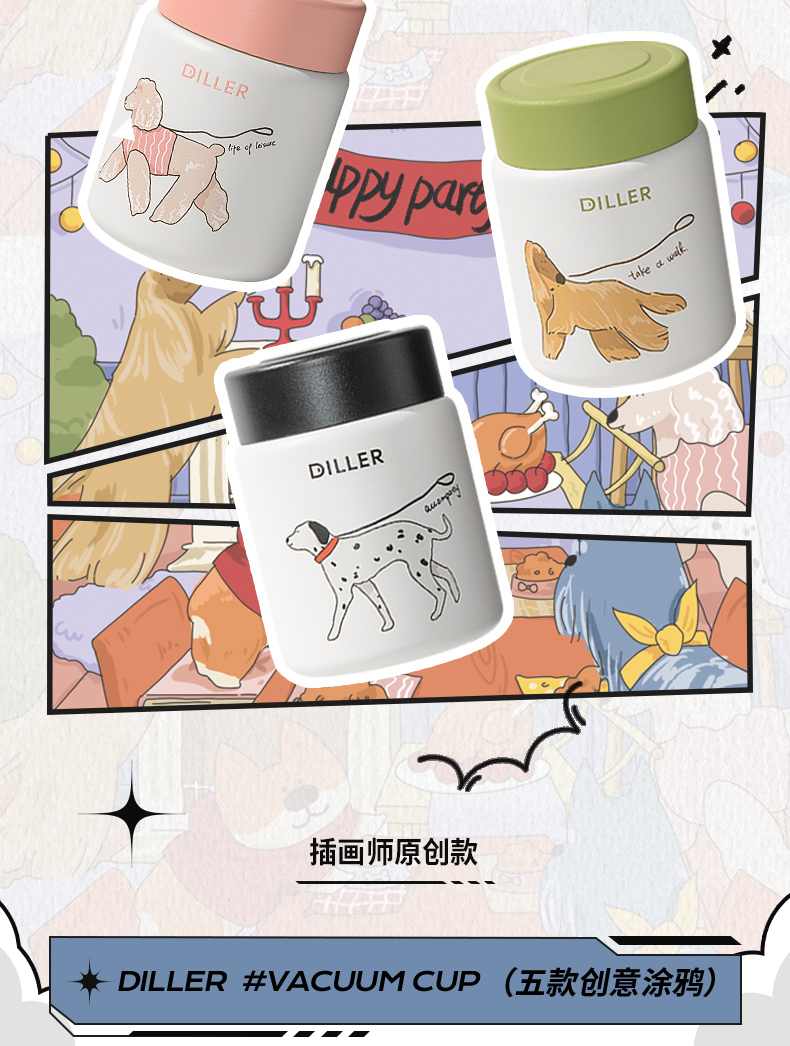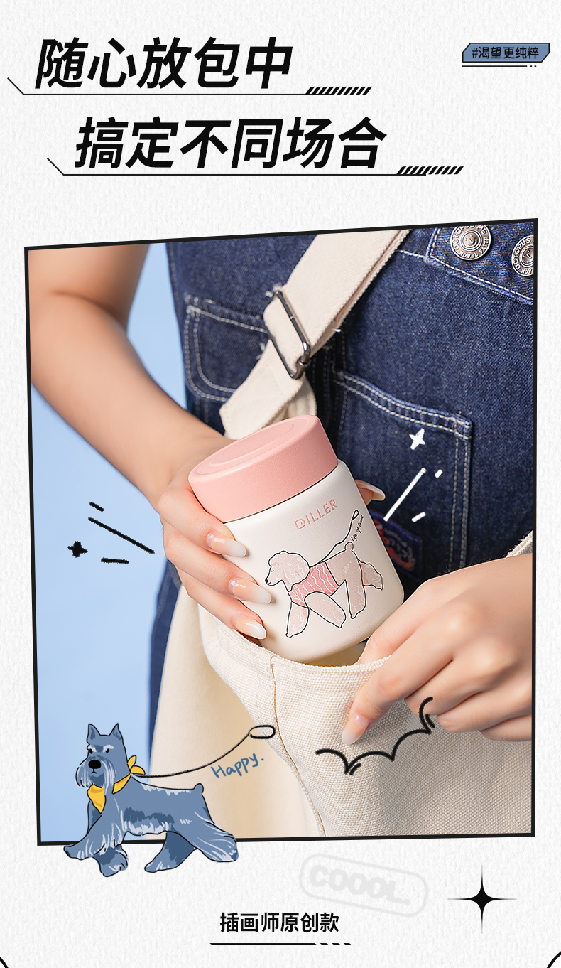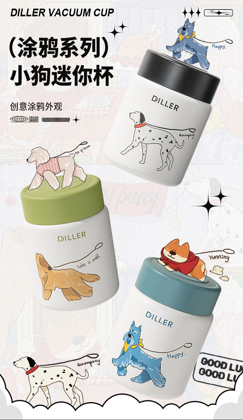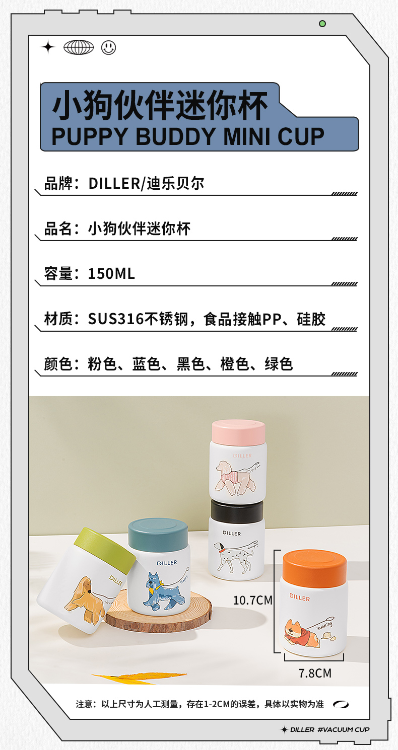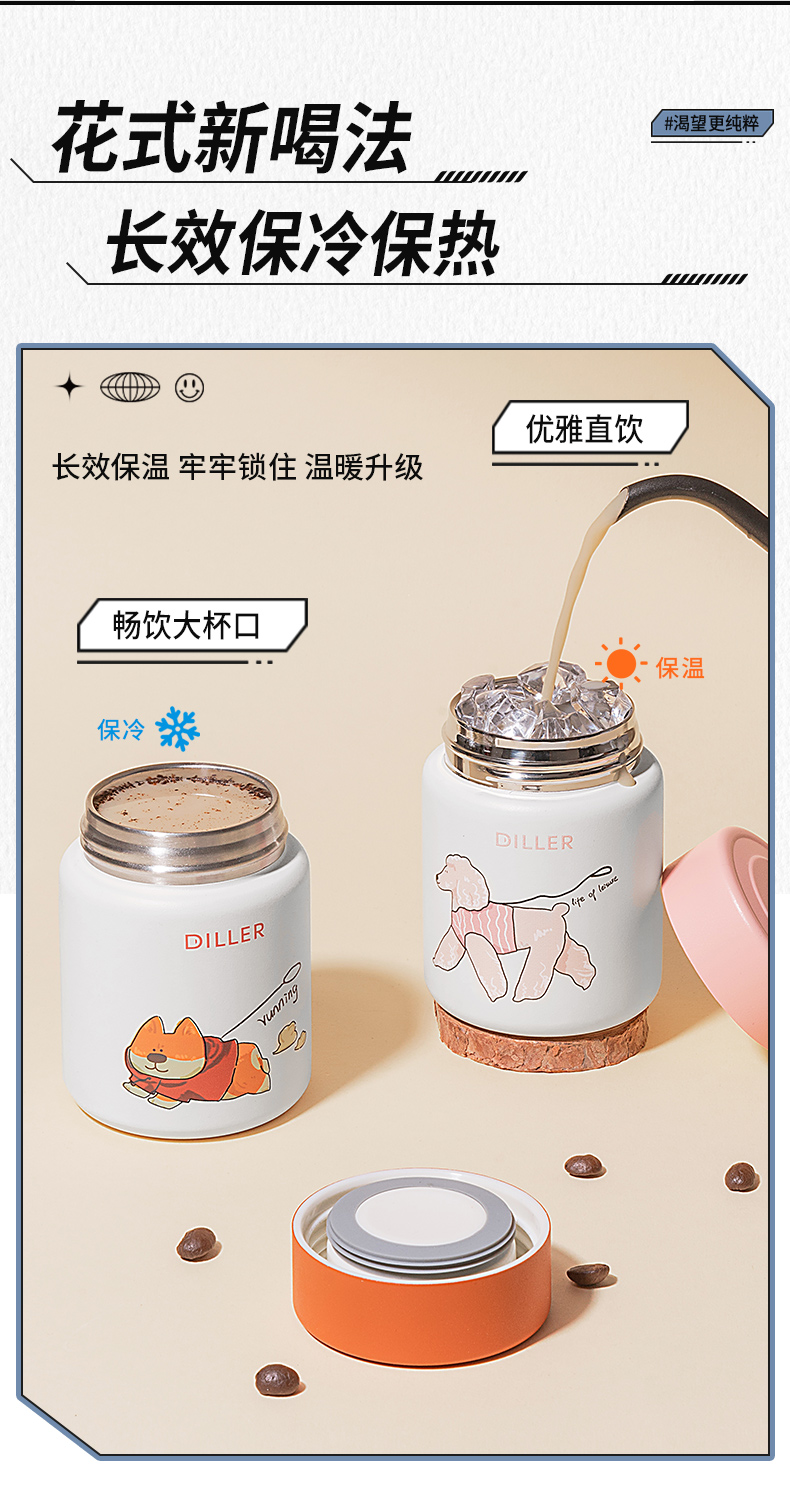迪乐贝尔新品小容量保温杯可爱印花水杯成人迷你杯子便携出行随手杯学生直饮杯150ML