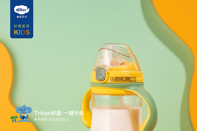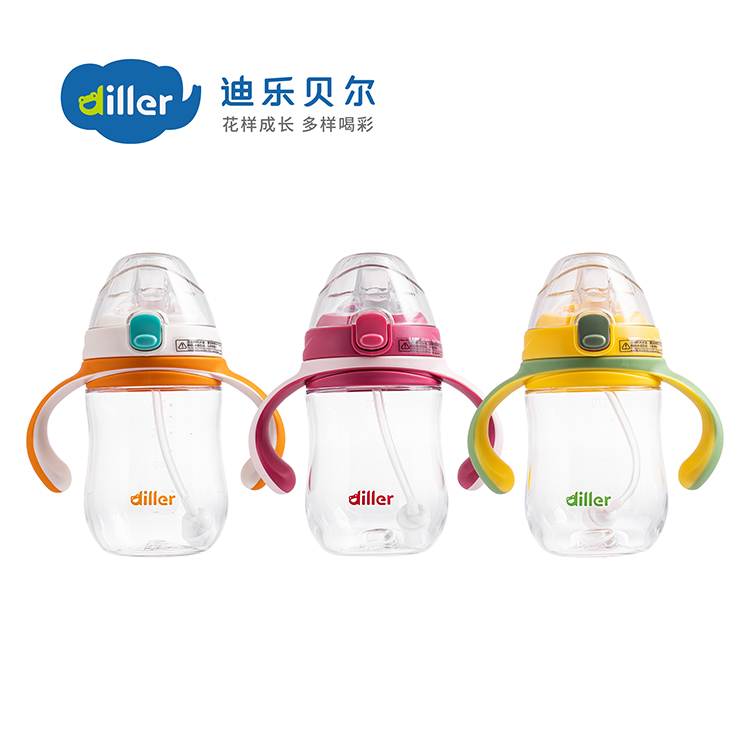 迪乐贝尔diller儿童宽口吸管杯学生运动杯水杯tritan塑料杯防摔带刻度便携喝水杯子400ML