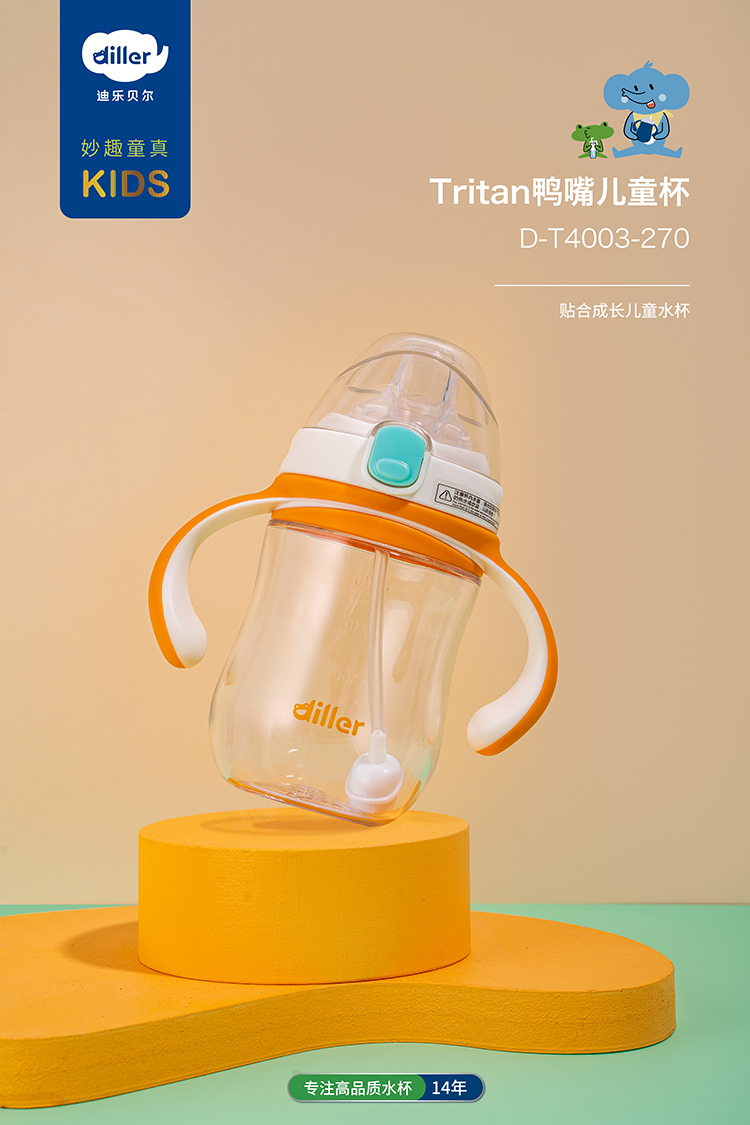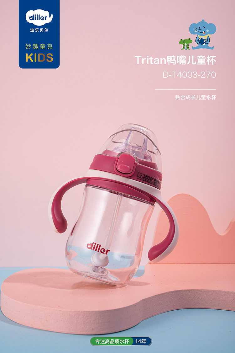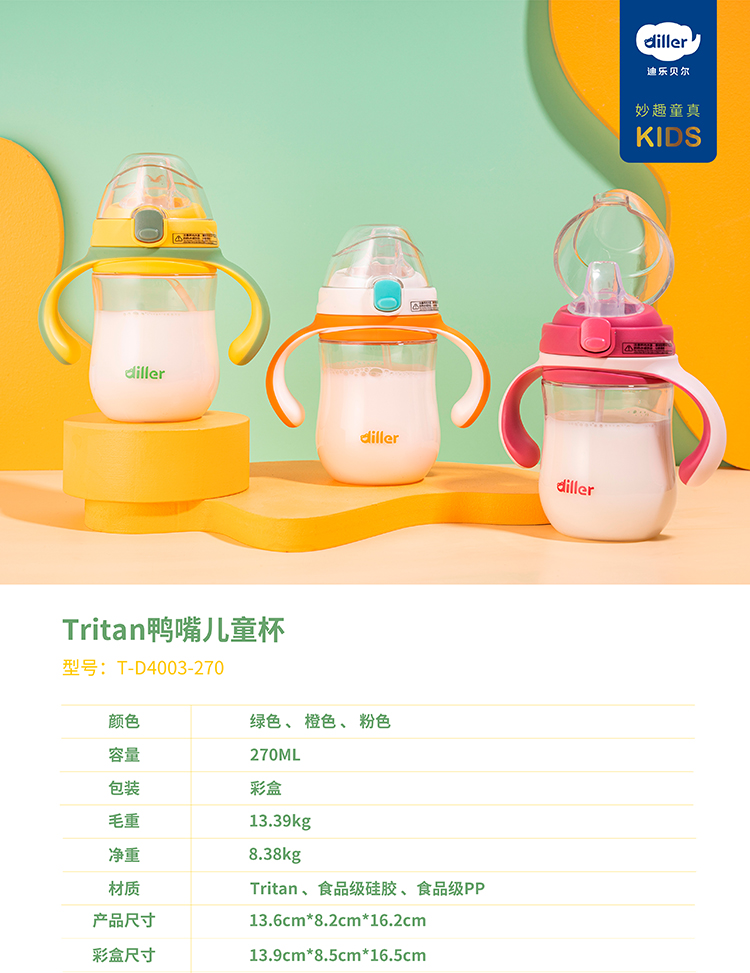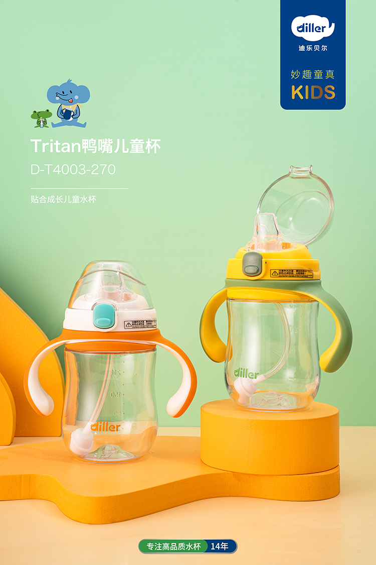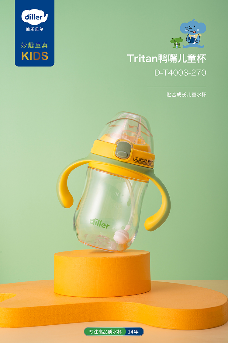 迪乐贝尔鸭嘴杯水杯儿童饮水杯幼儿园杯子tritan重力球吸管杯宝宝婴儿学饮杯鸭嘴270ML