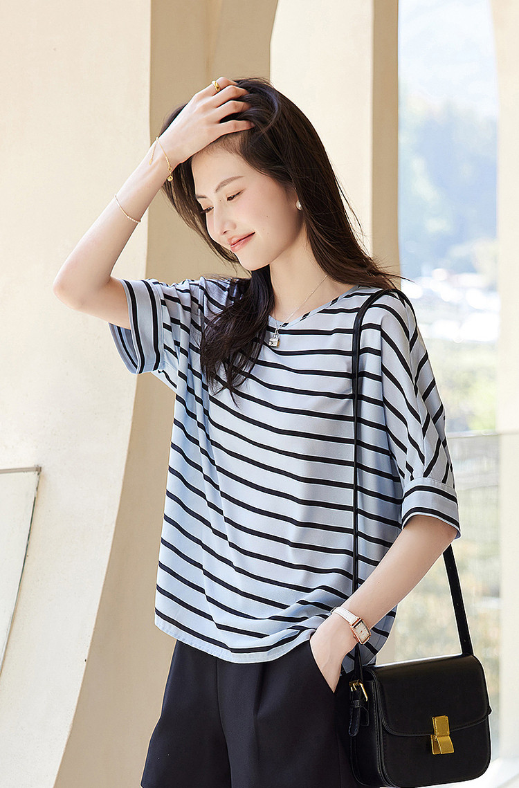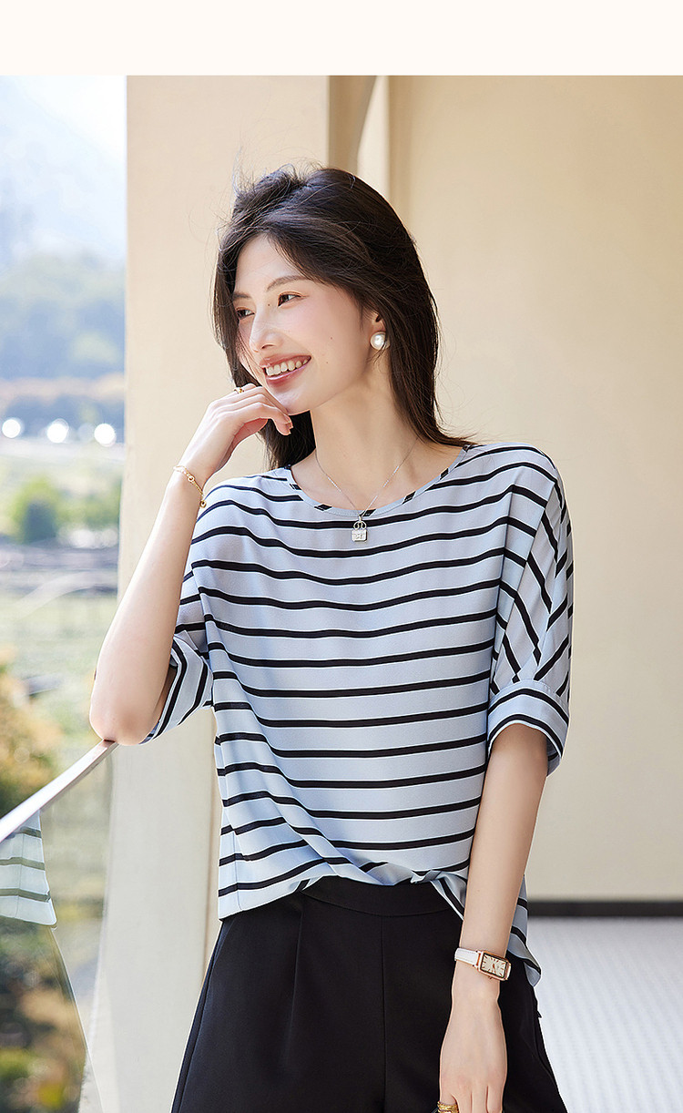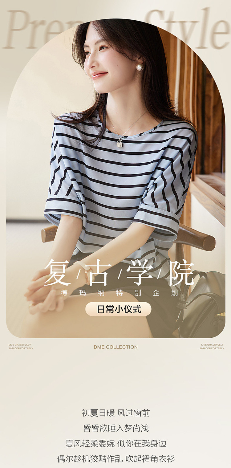 商品名称:【线条美学】夏宝藏日系条纹衬衫舒适自在遮肉好搭衬衣女装上衣 220801