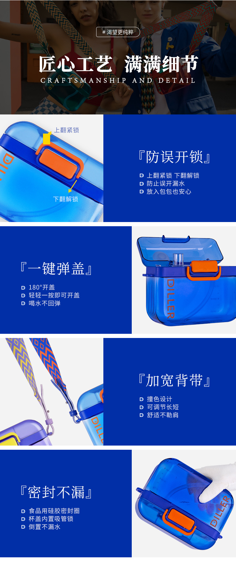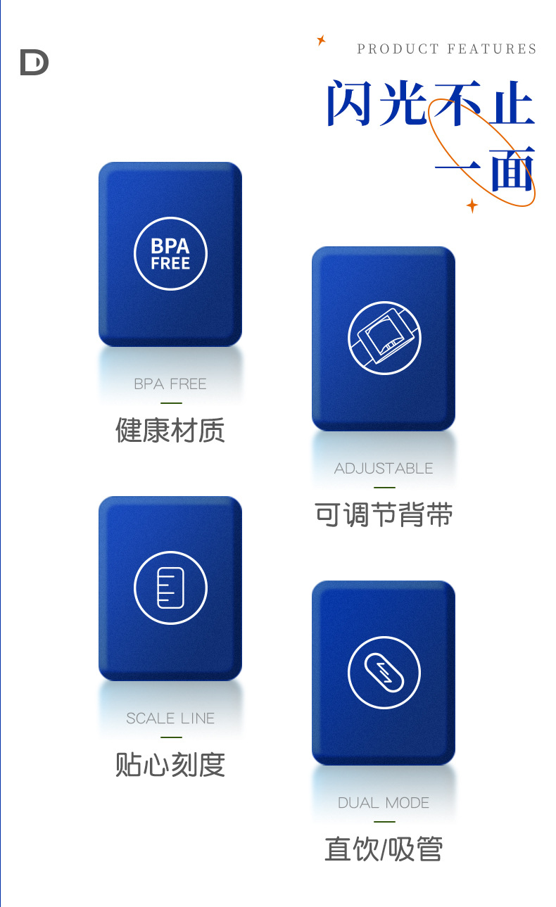 商品名称:迪乐贝尔创意方形水杯双饮杯大容量tritan塑料杯吸管杯学生运动水杯成人便携方形杯750ML