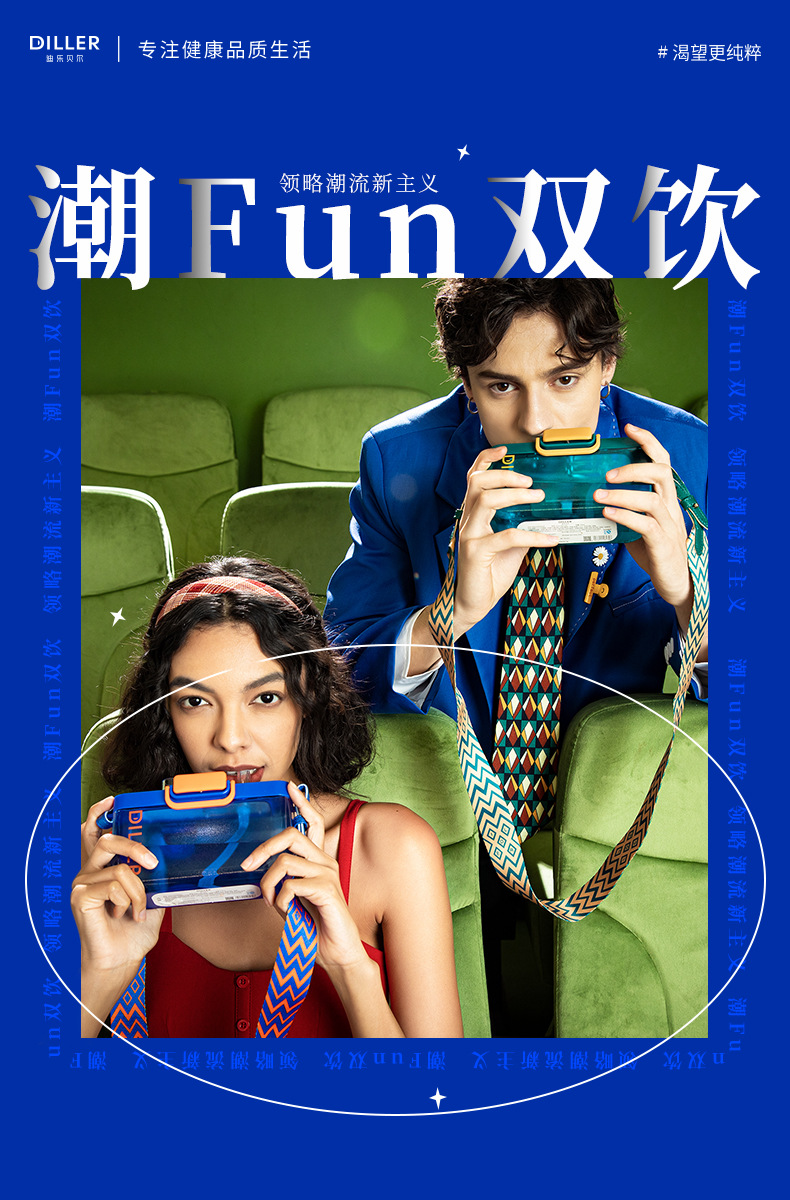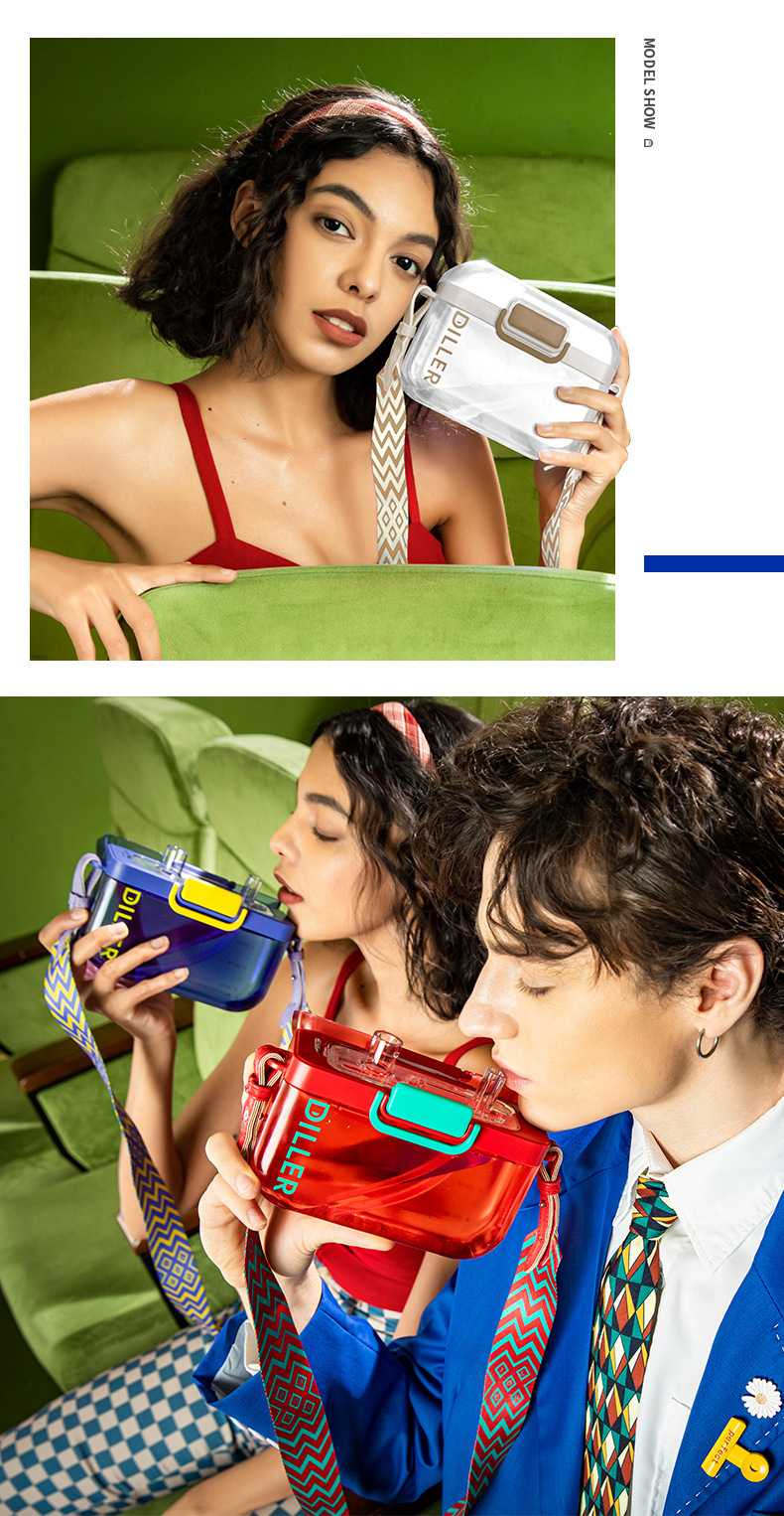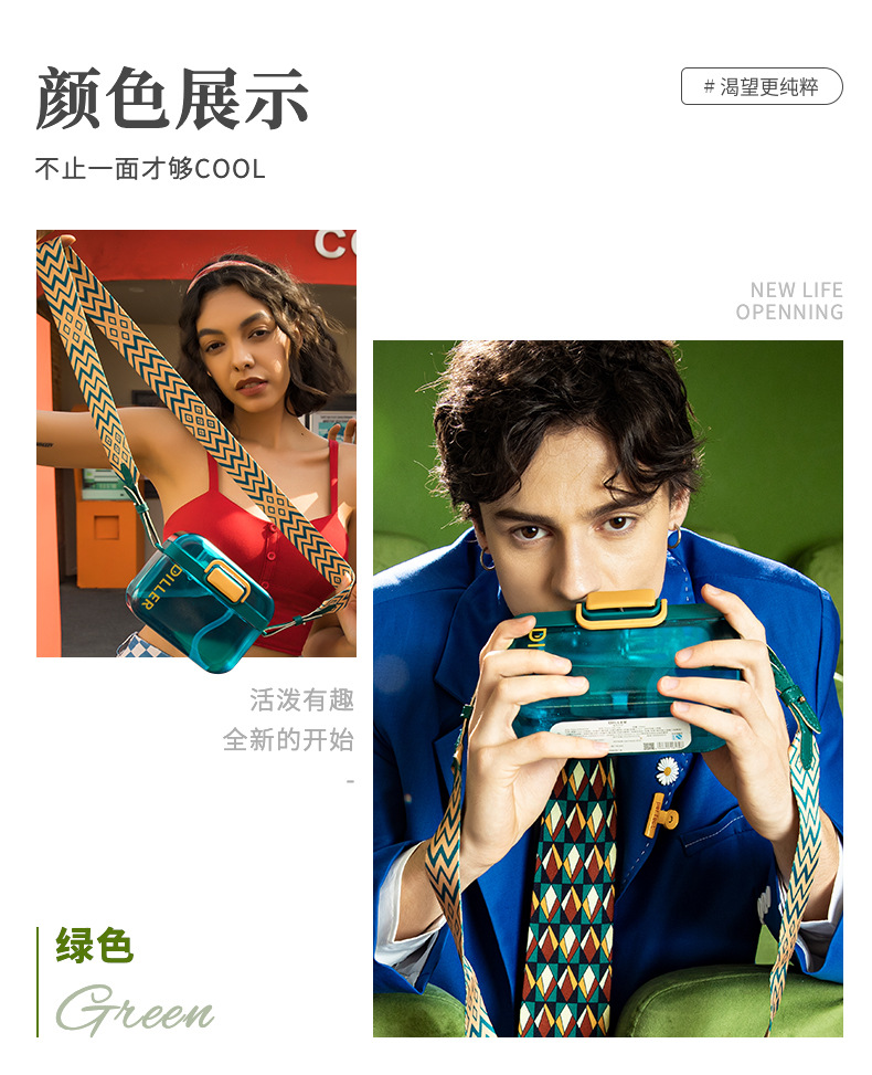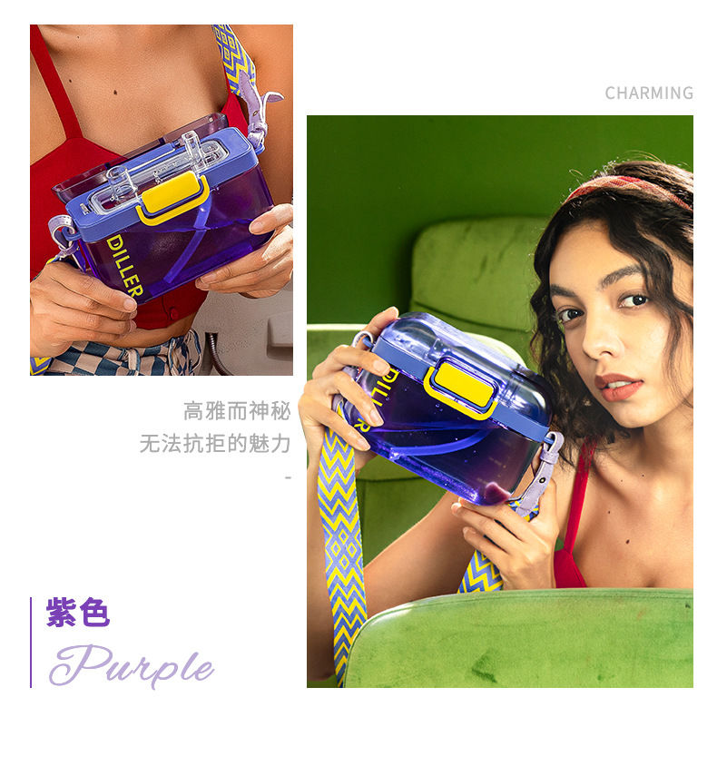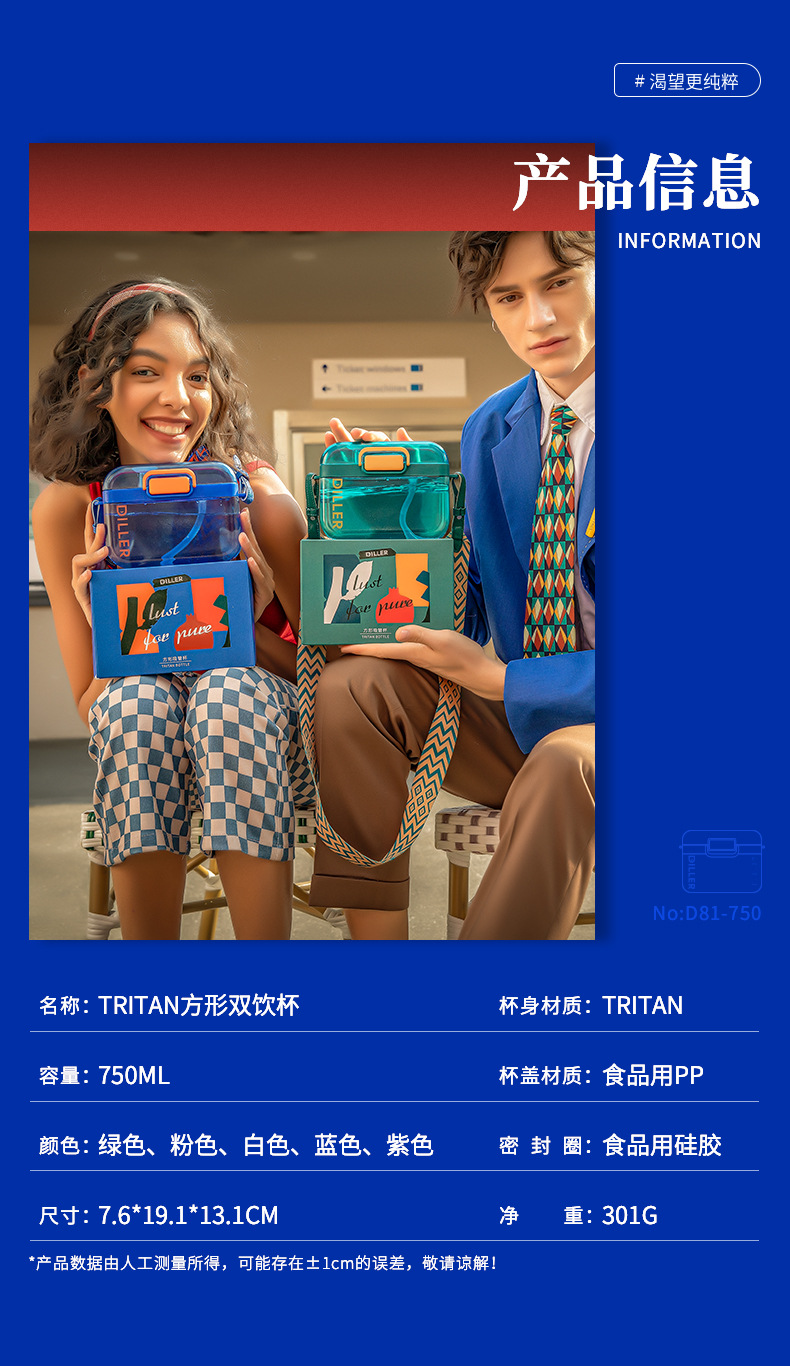 迪乐贝尔创意方形水杯双饮杯大容量tritan塑料杯吸管杯学生运动水杯成人便携方形杯750ML