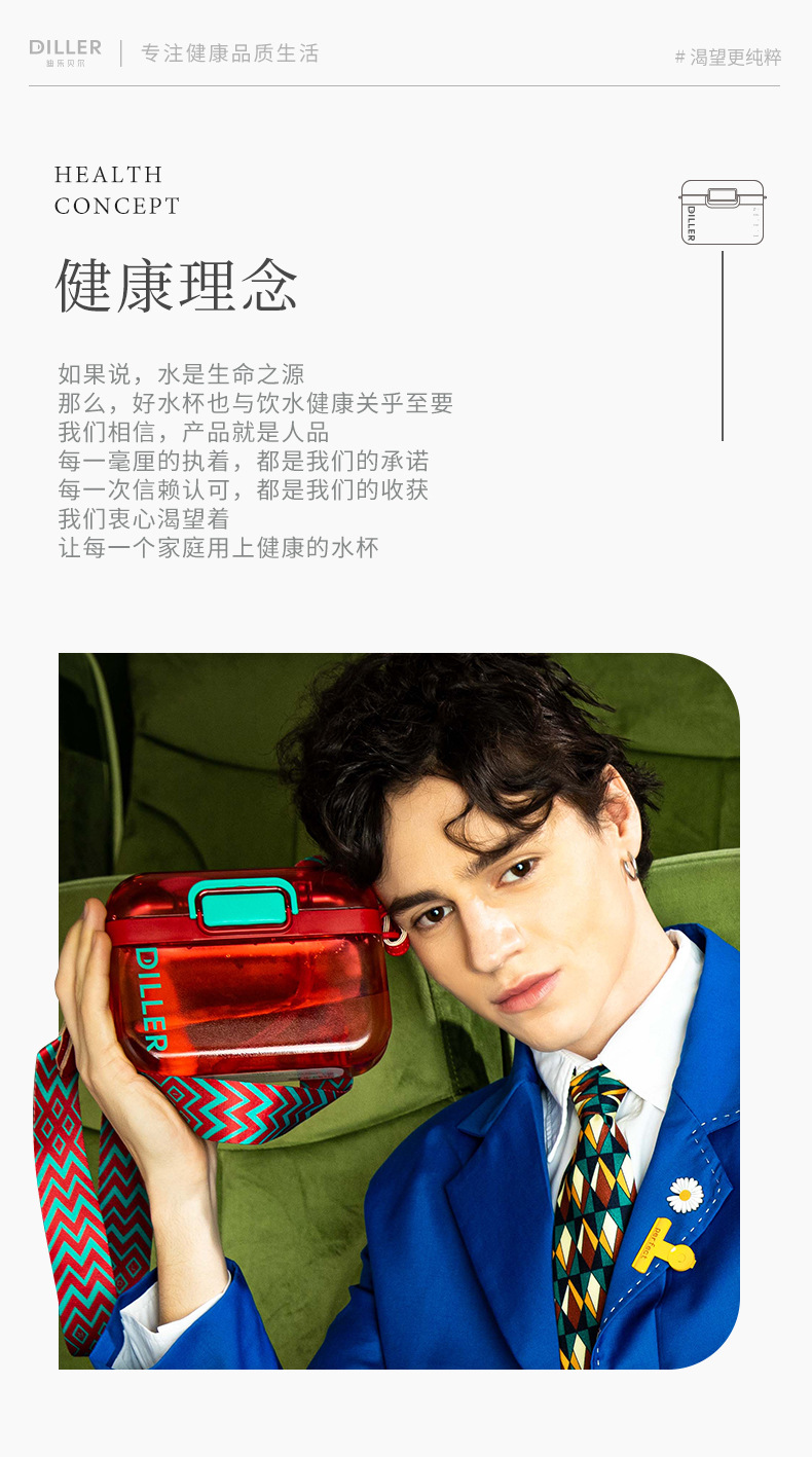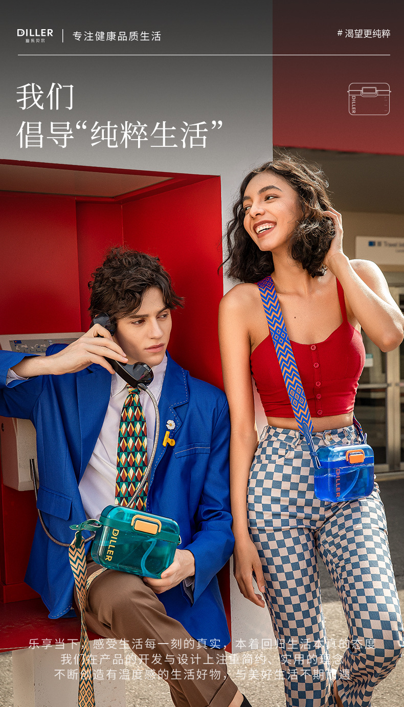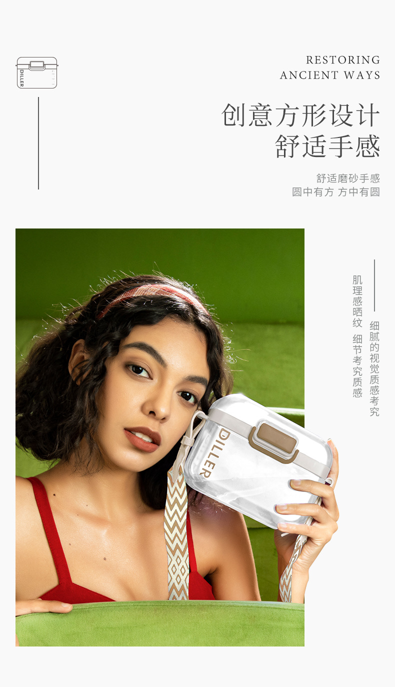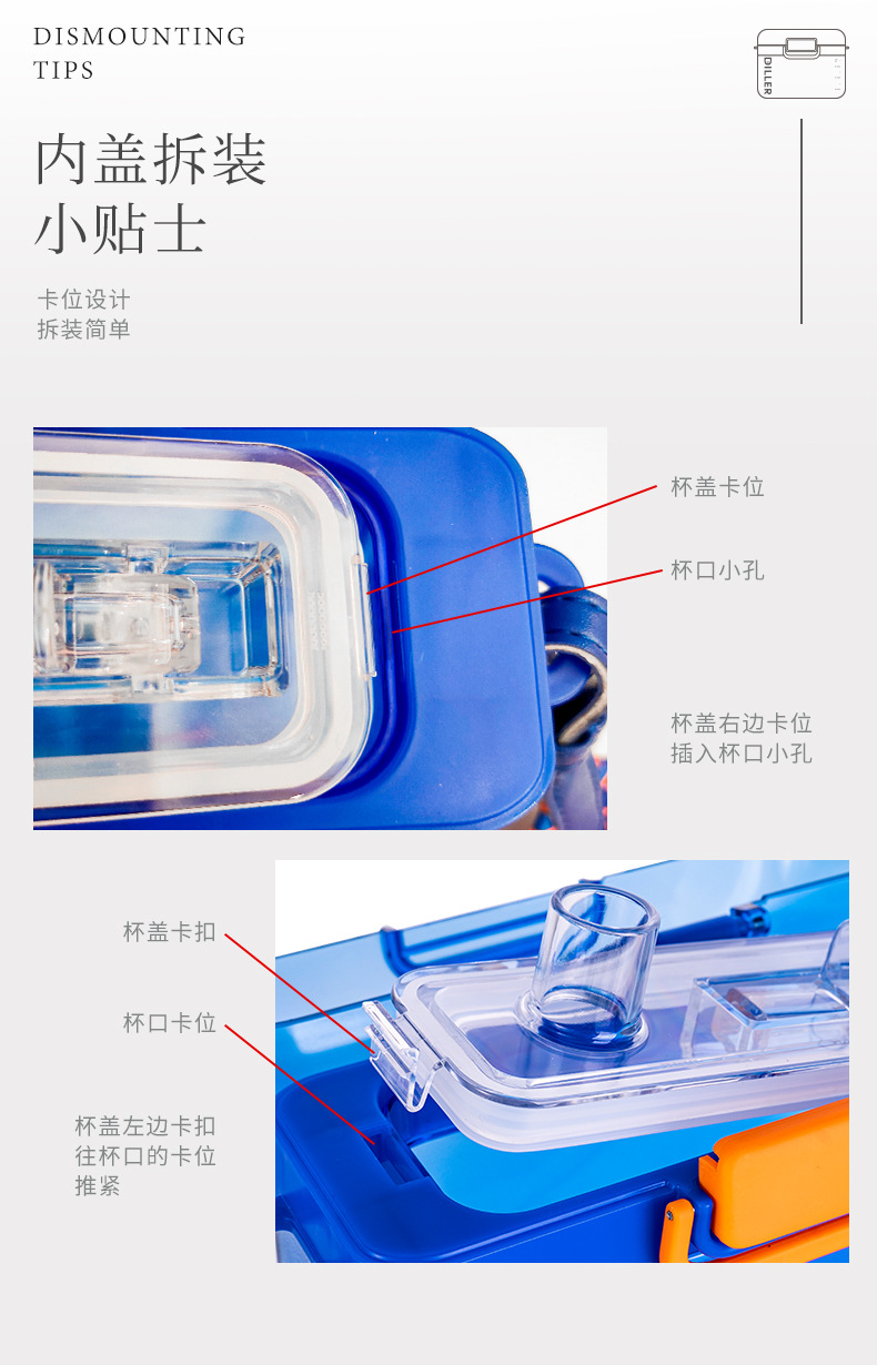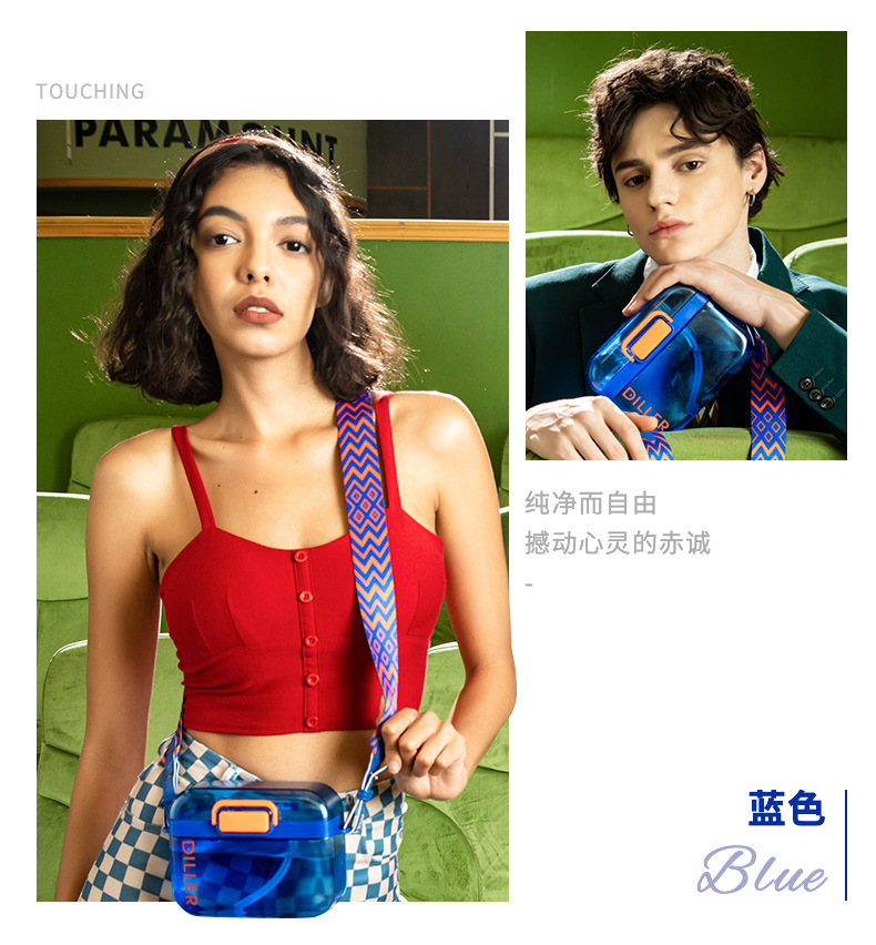 迪乐贝尔创意方形水杯双饮杯大容量tritan塑料杯吸管杯学生运动水杯成人便携方形杯750ML