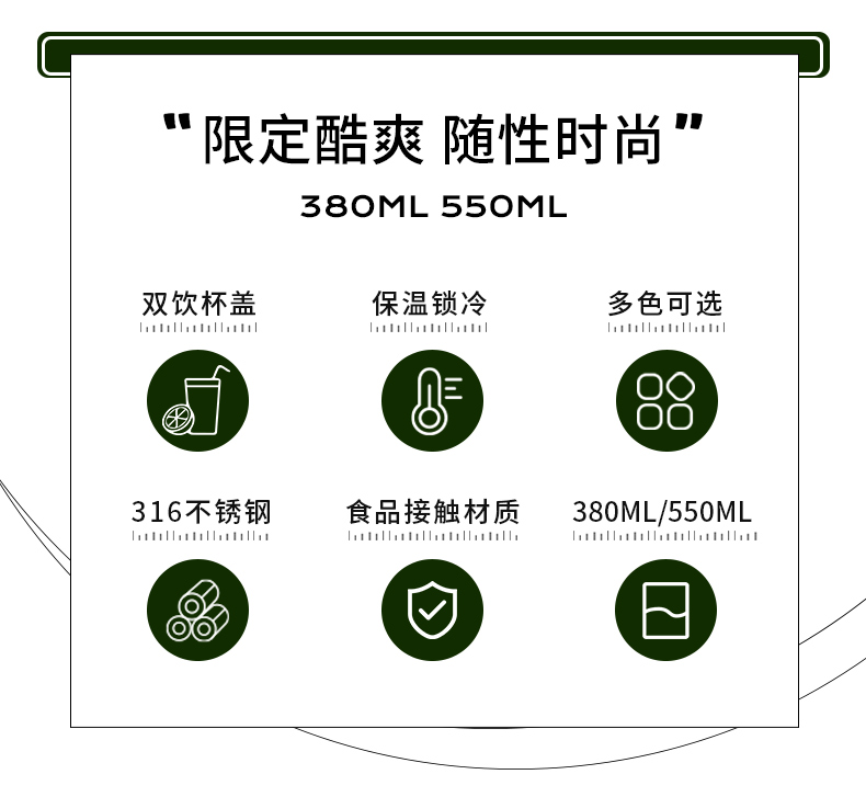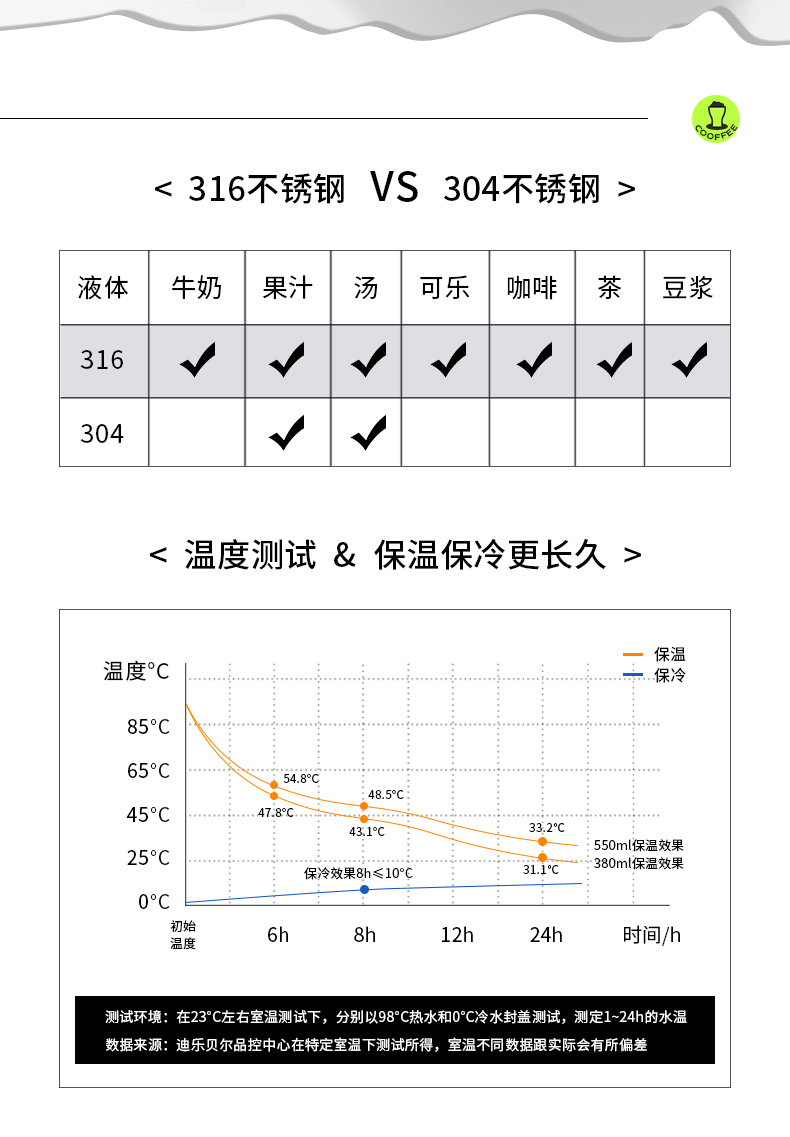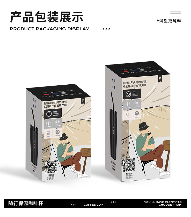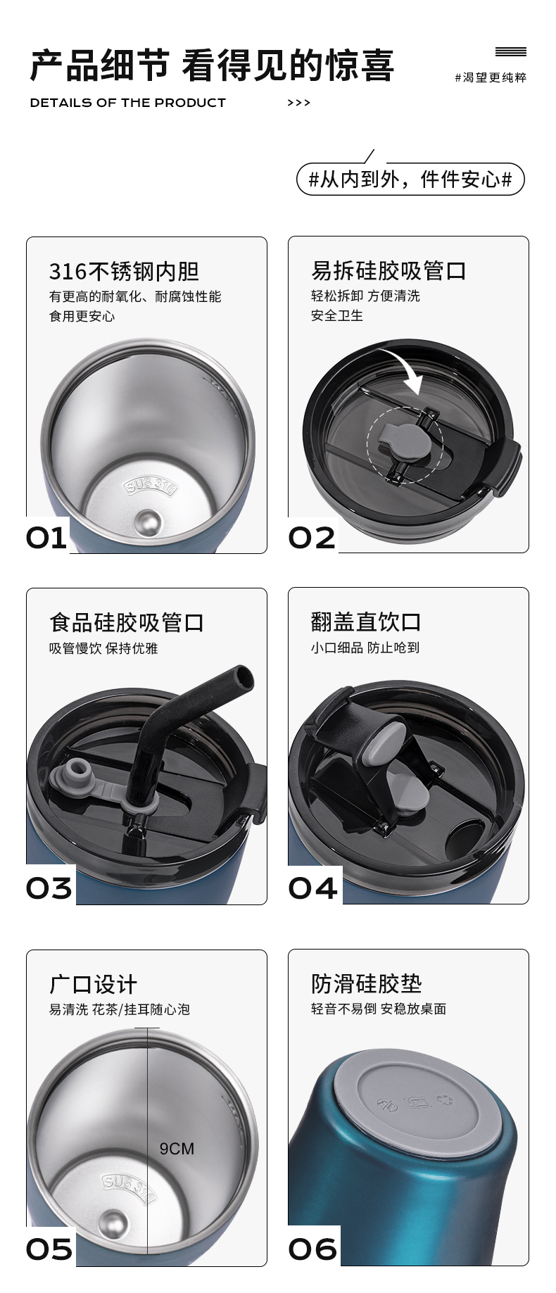 商品名称:迪乐贝尔秋冬新款成人咖啡杯316不锈钢保温杯办公室双饮杯高颜值车载随行杯便携吸管杯