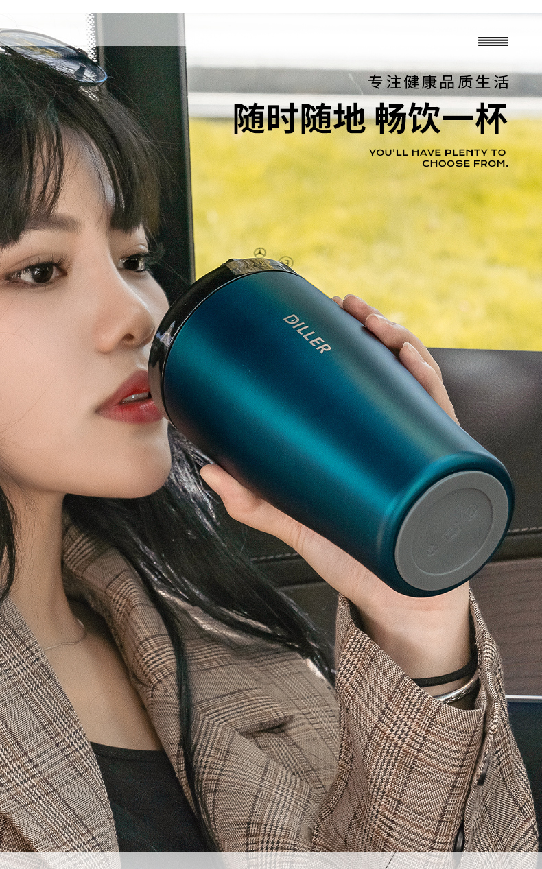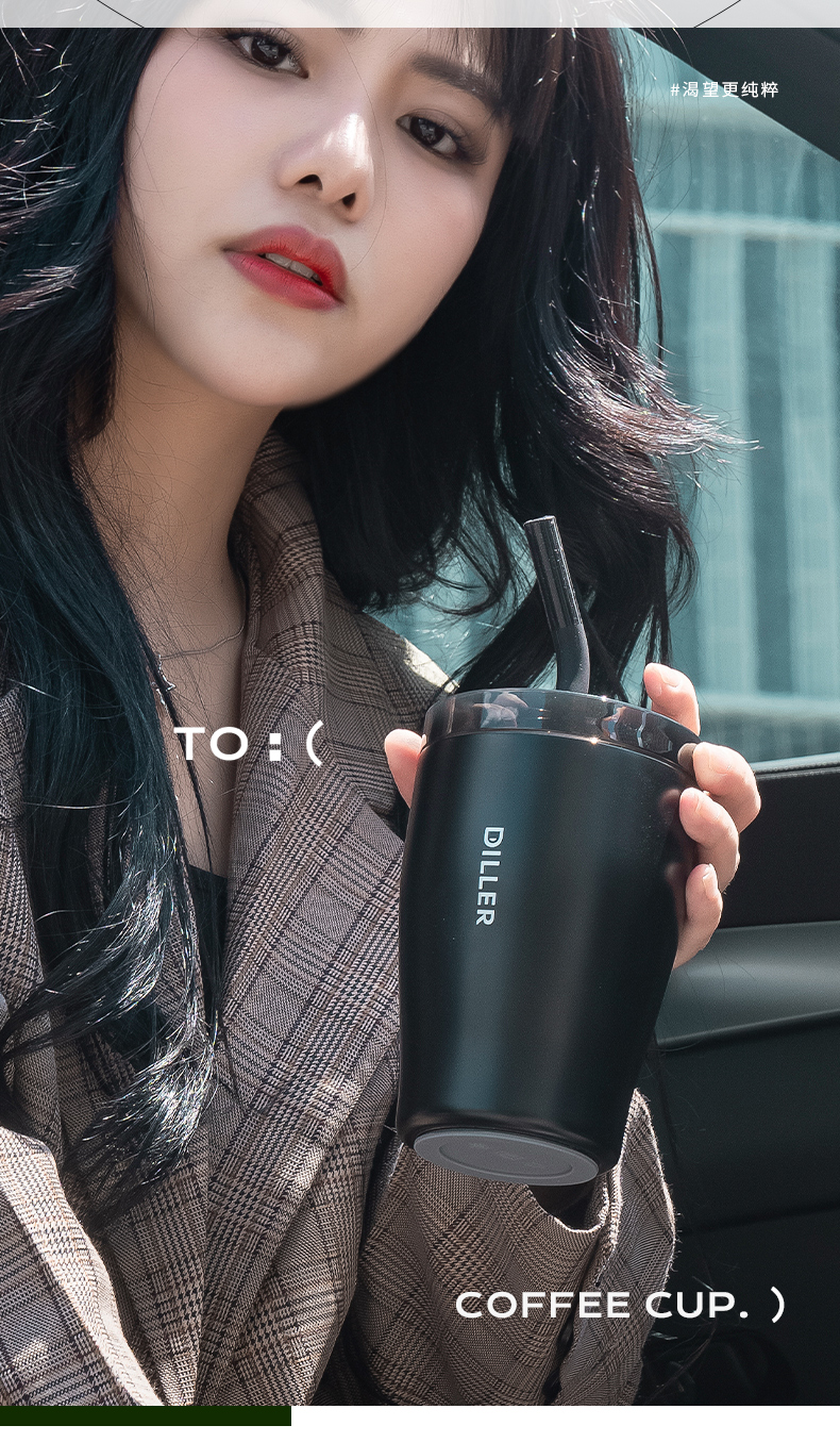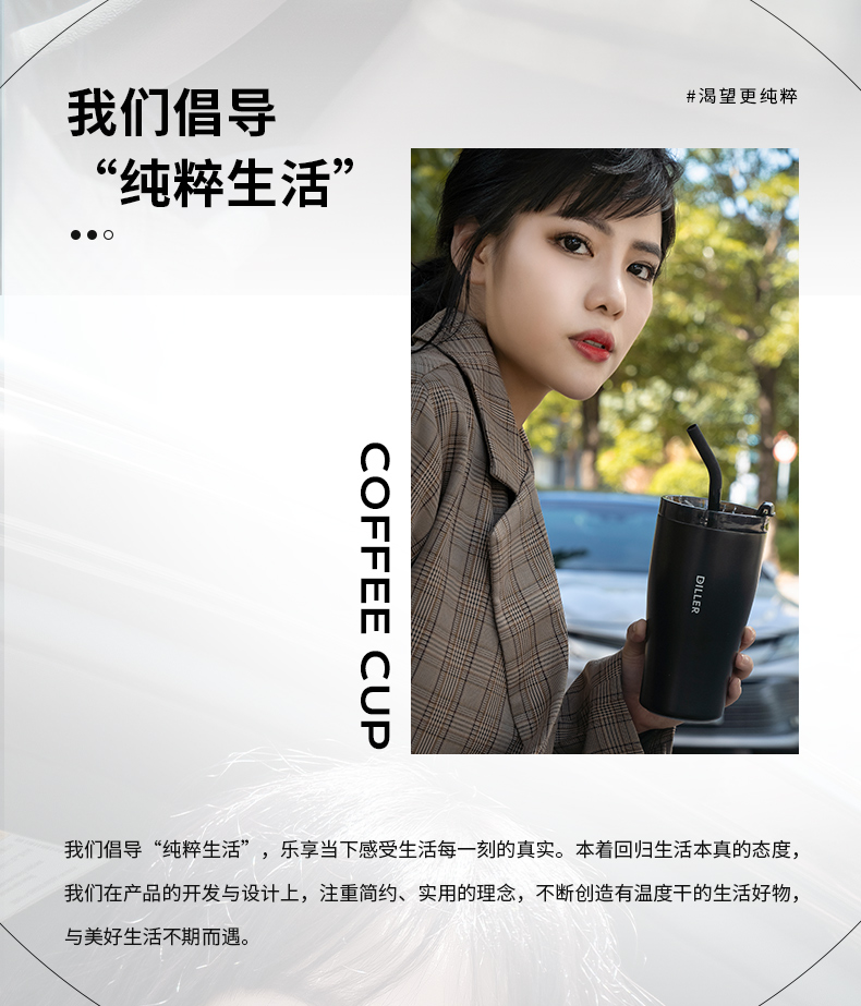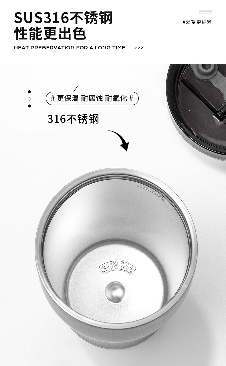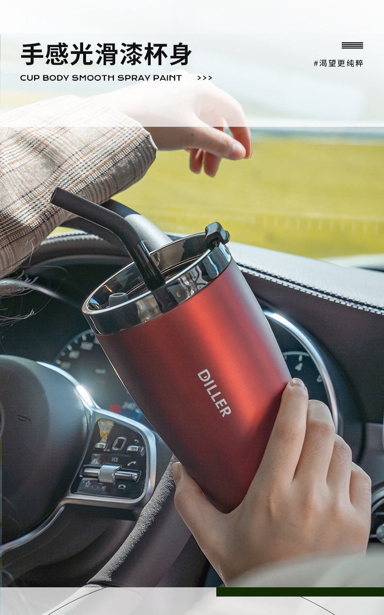 迪乐贝尔秋冬新款成人咖啡杯316不锈钢保温杯办公室双饮杯高颜值车载随行杯便携吸管杯