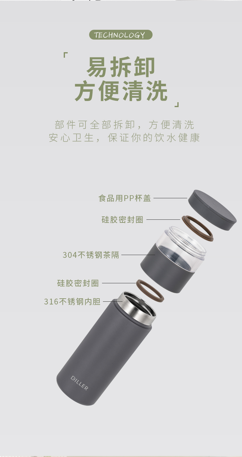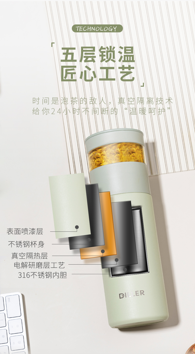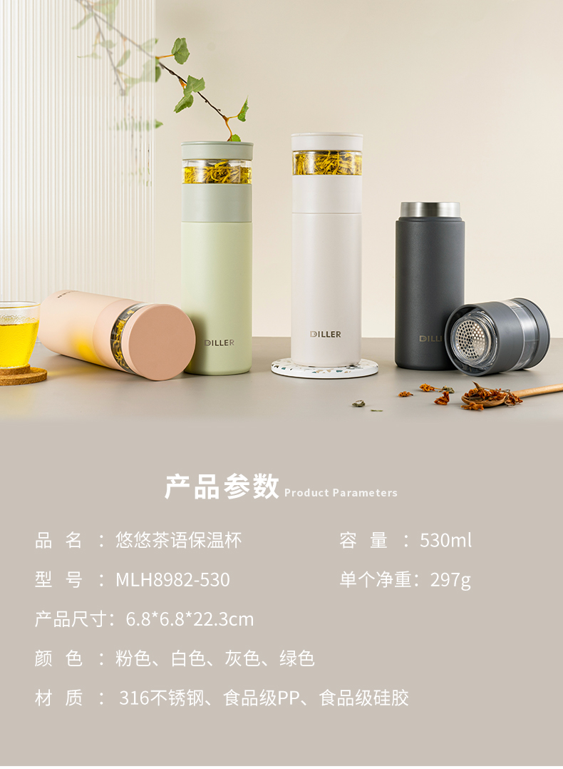 商品名称:【茶水分离】迪乐贝尔成人保温杯316不锈钢泡茶杯花茶杯子直饮杯男女士带茶隔水杯530ML