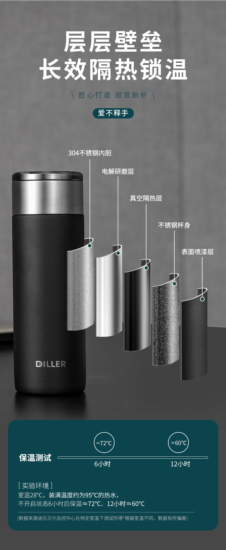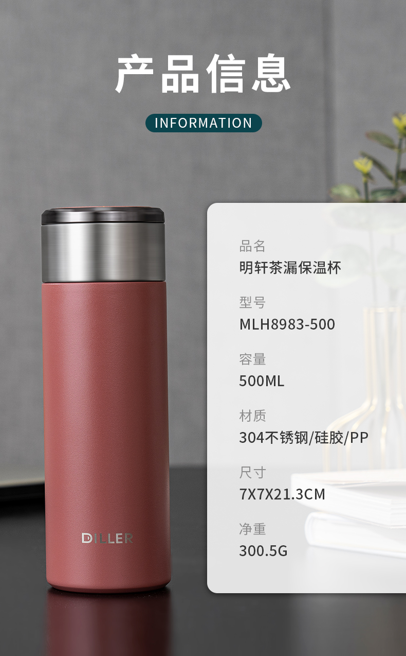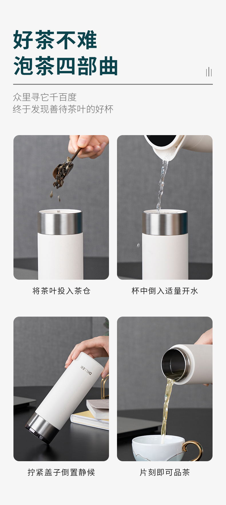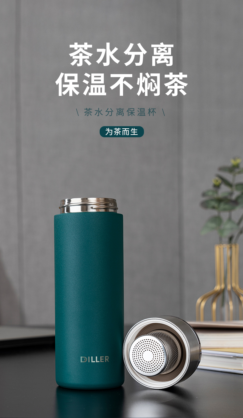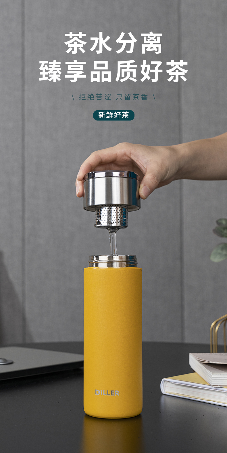 商品名称:【茶水分离】迪乐贝尔成人保温杯户外便携直饮杯304不锈钢商务泡茶水杯车载喝水壶500ML