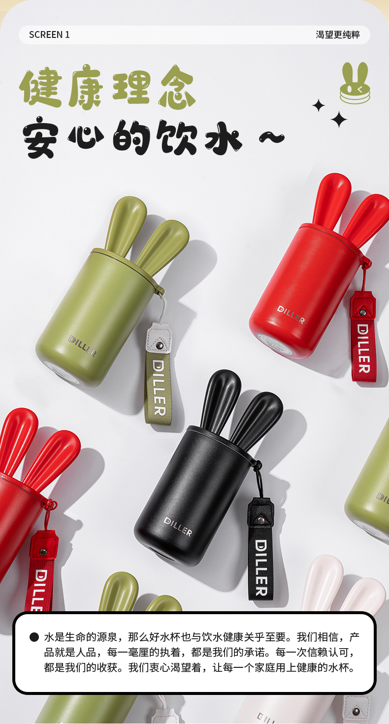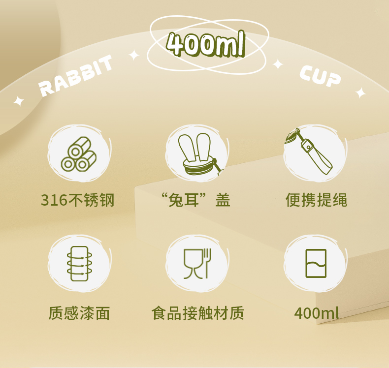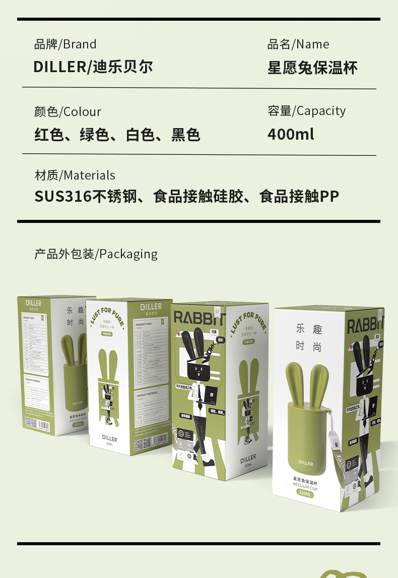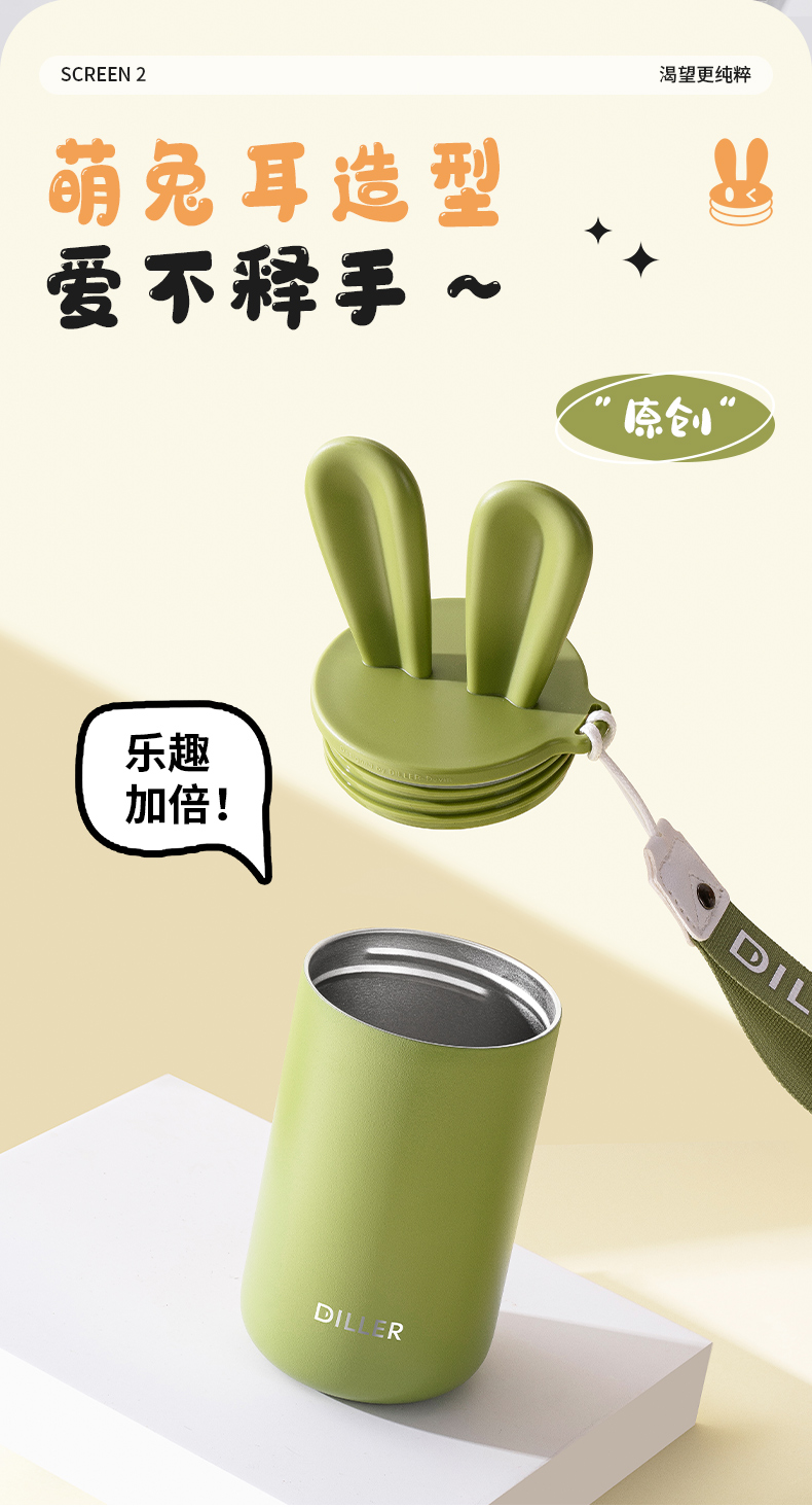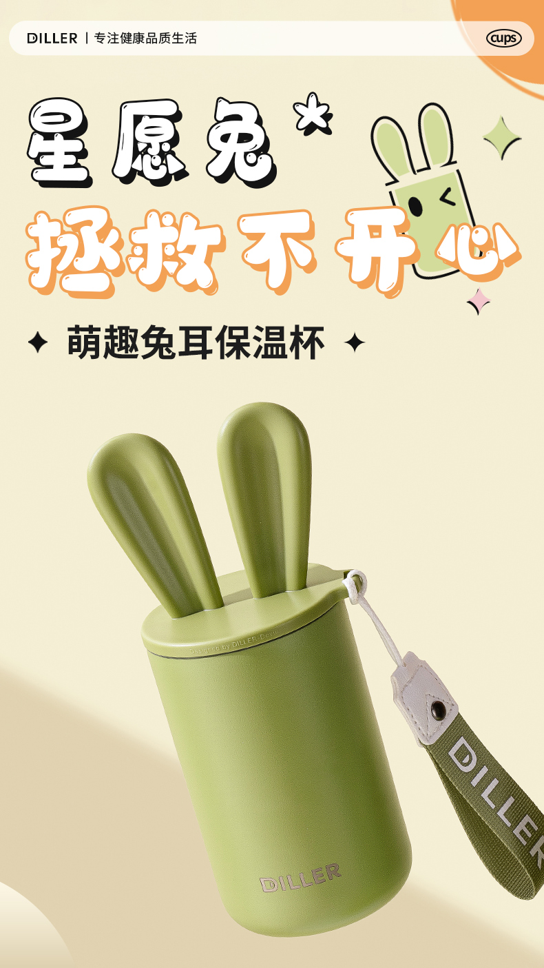 商品名称:迪乐贝尔可爱星愿兔保温保冷杯高颜值水杯316不锈钢女生杯子便携学生保温杯直饮杯400ML