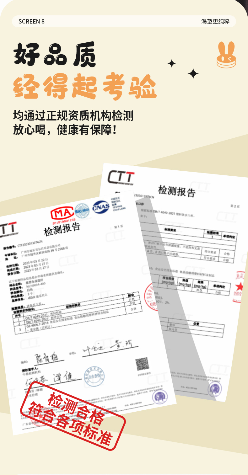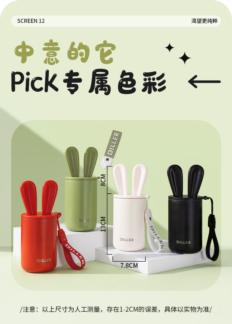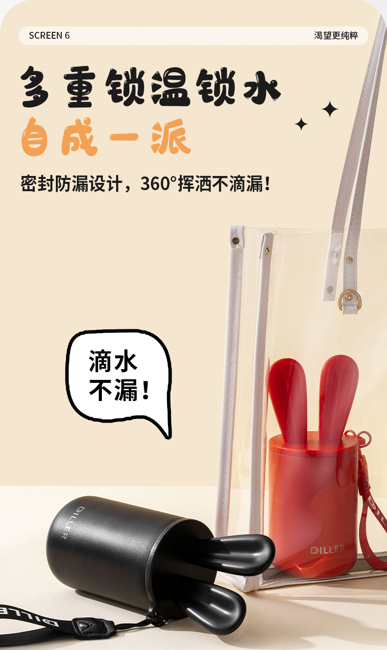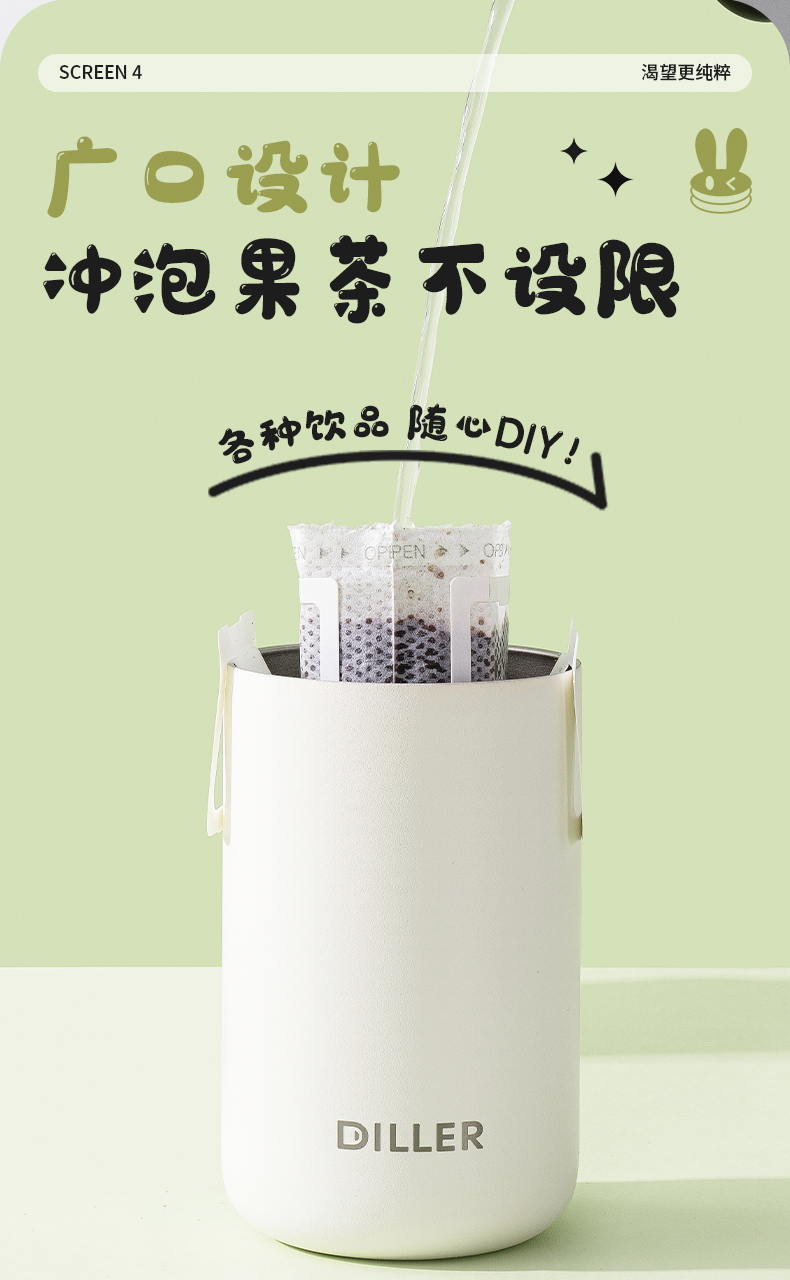 商品名称:迪乐贝尔可爱星愿兔保温保冷杯高颜值水杯316不锈钢女生杯子便携学生保温杯直饮杯400ML