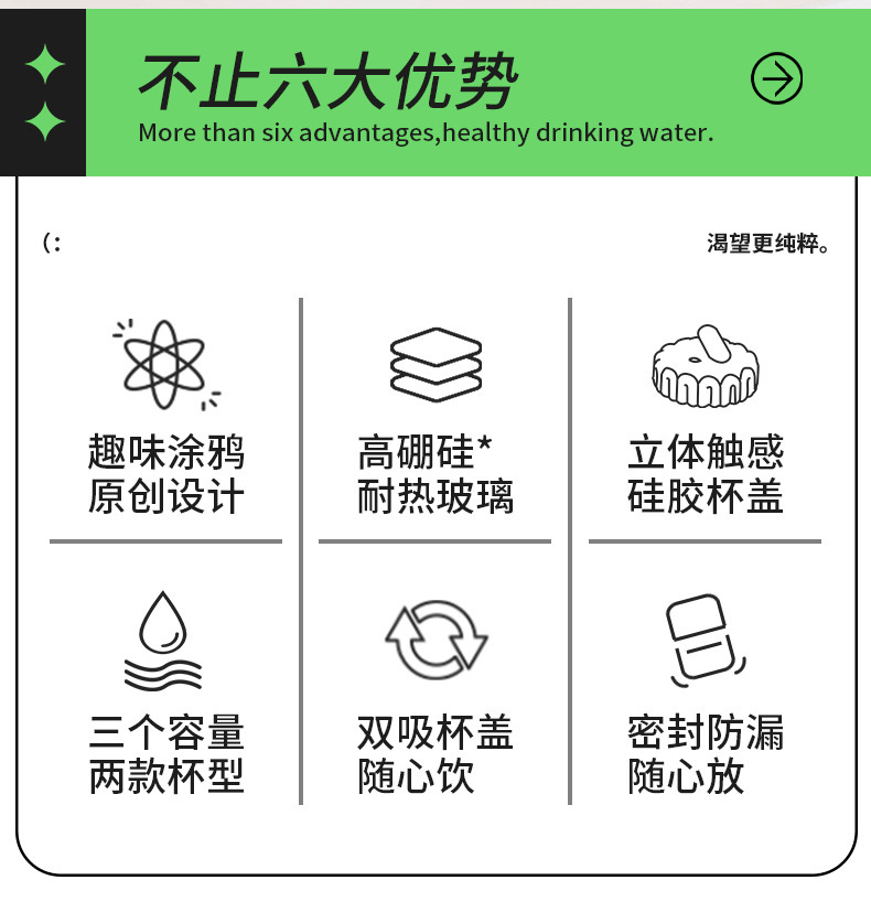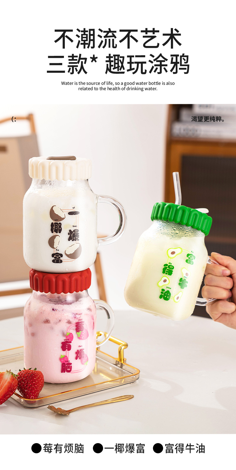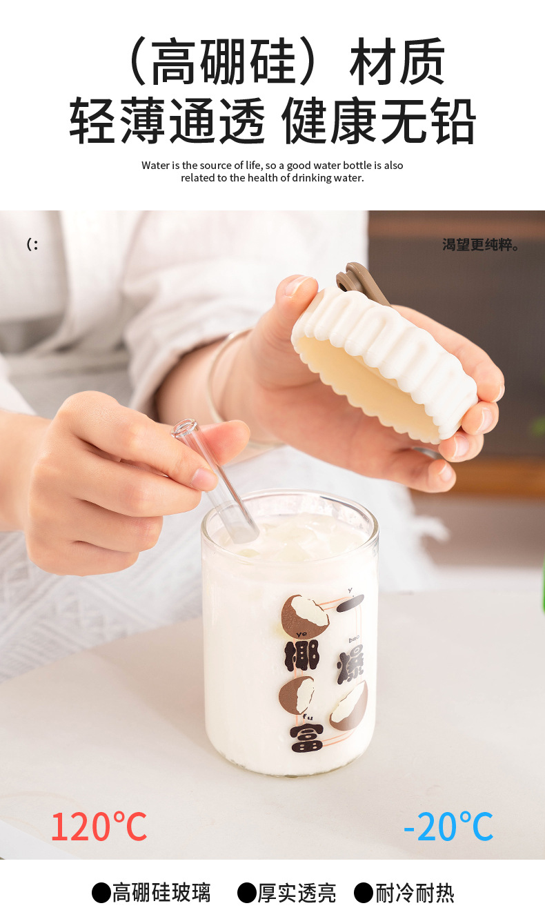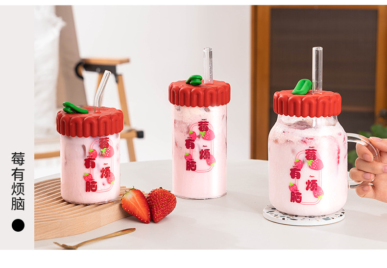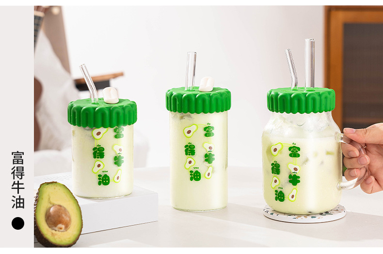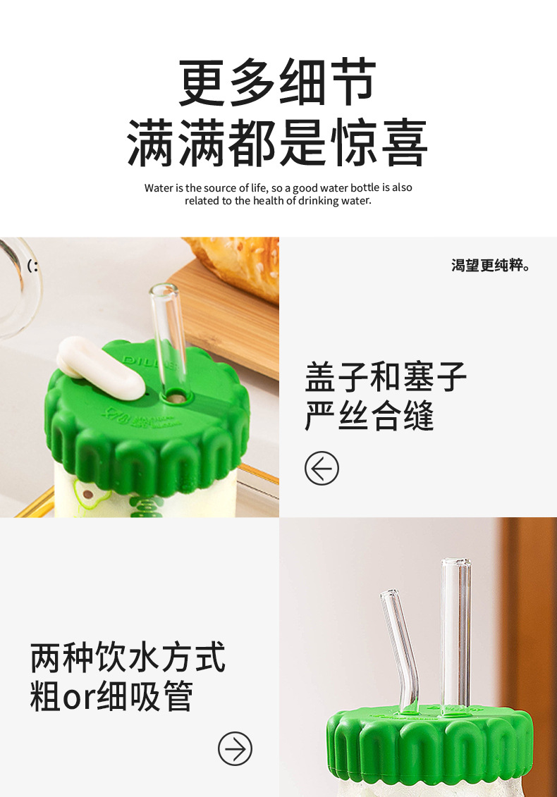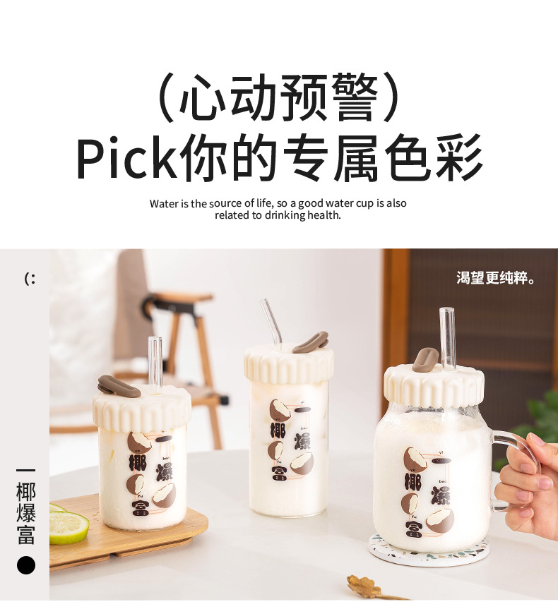 商品名称:迪乐贝尔潮语水果玻璃水杯带把手双饮刻度吸管杯大容量成人家用冷萃杯牛奶咖啡杯子
