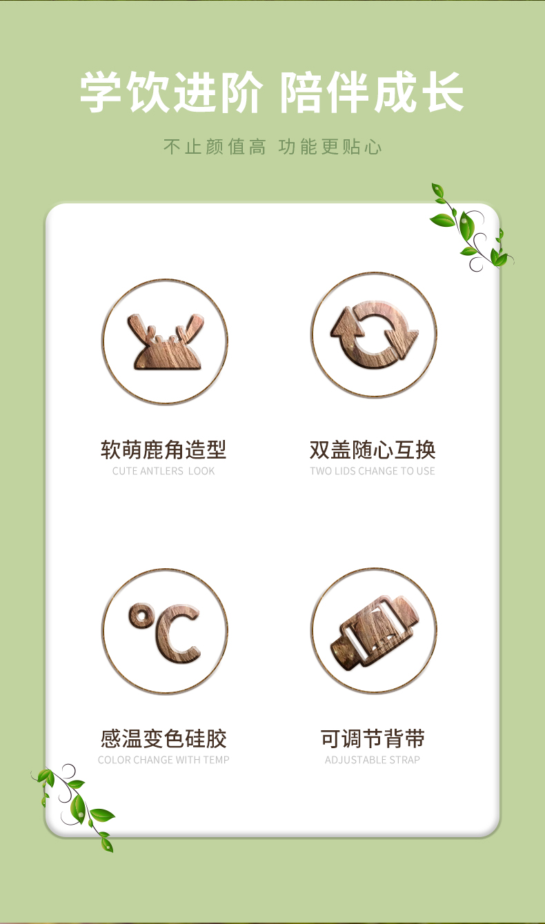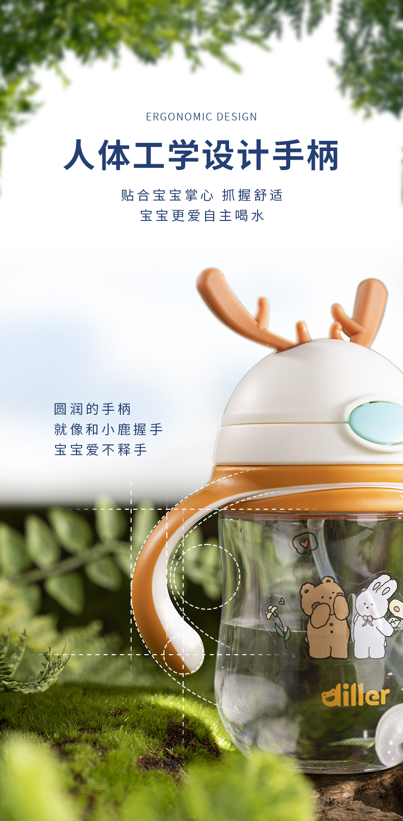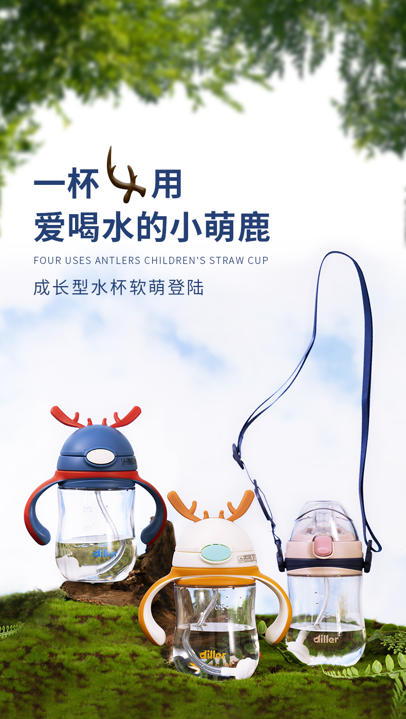 【双盖杯】迪乐贝尔儿童吸管杯水杯上学专用幼儿园宝宝便携保温杯可爱学生背带水壶