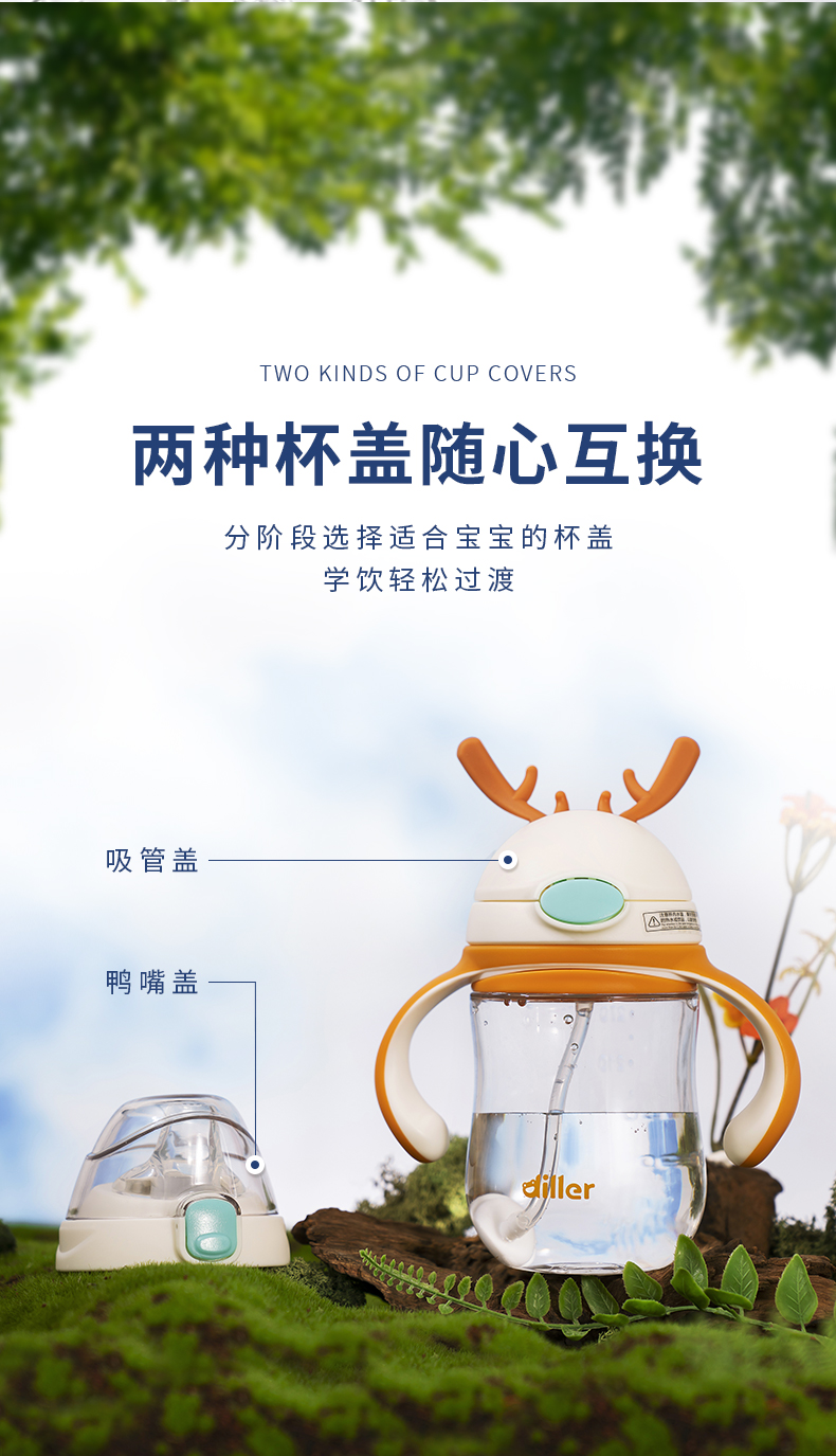 【吸嘴+鸭嘴】迪乐贝尔儿童吸管杯鸭嘴杯双盖杯幼儿园tritan重力球学饮杯宝宝喝水杯子