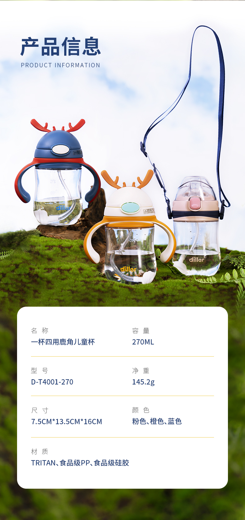 商品名称:【吸嘴+鸭嘴】迪乐贝尔儿童吸管杯鸭嘴杯双盖杯幼儿园tritan重力球学饮杯宝宝喝水杯子