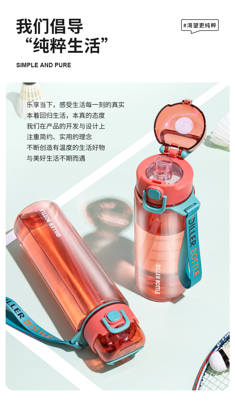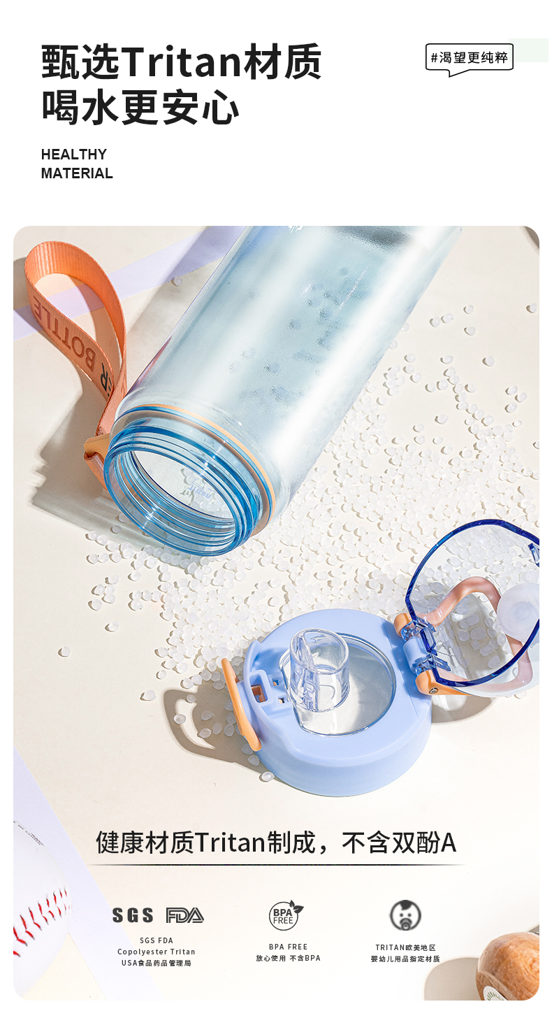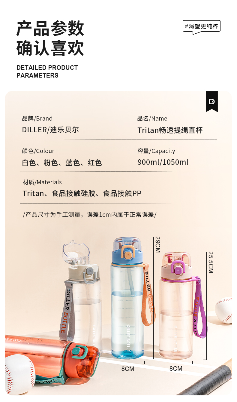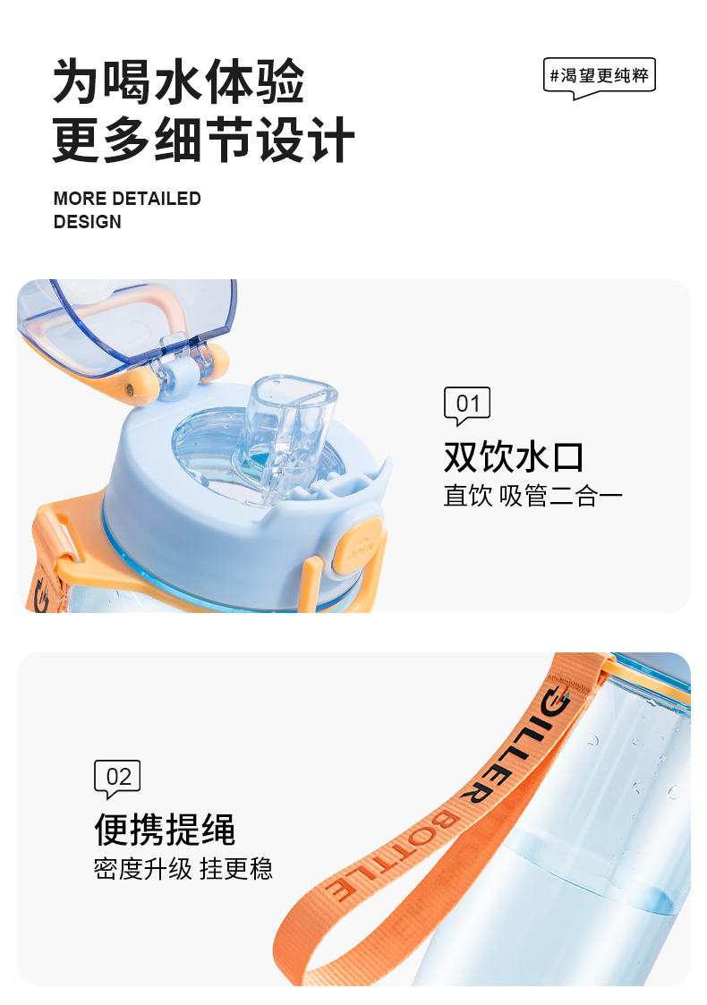 商品名称:迪乐贝尔新品成人直饮杯水杯双饮杯口夏季tritan带提绳吸管杯大容量水壶户外运动杯子