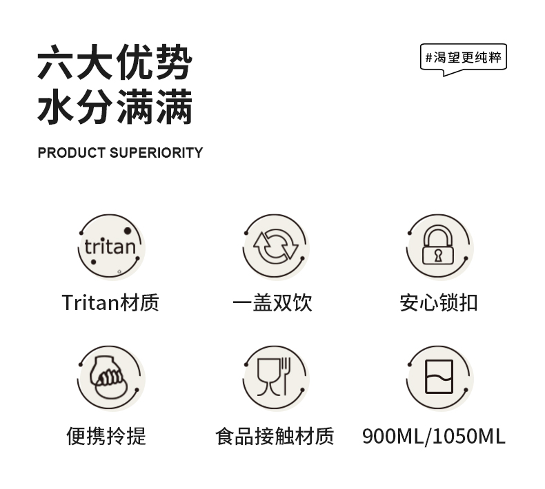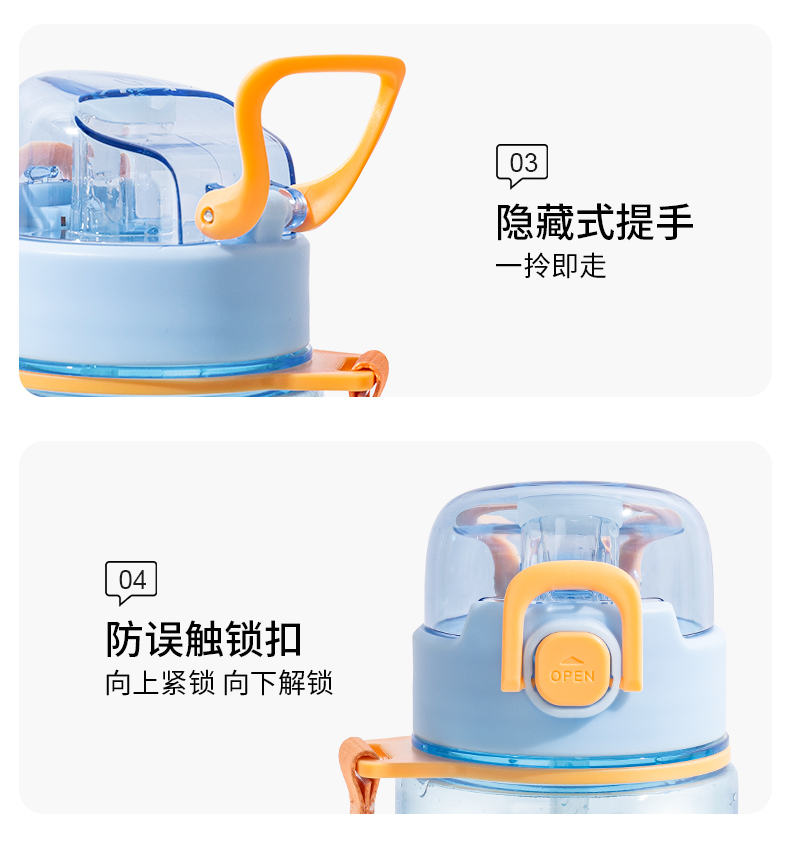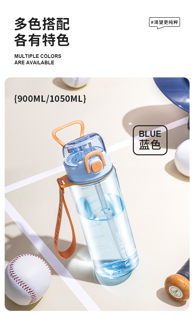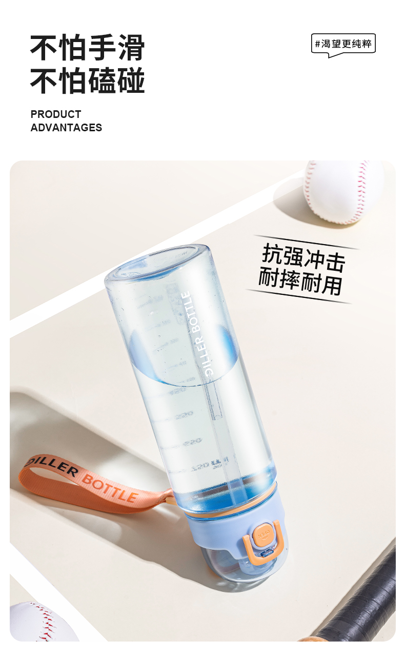 商品名称:迪乐贝尔新品成人直饮杯水杯双饮杯口夏季tritan带提绳吸管杯大容量水壶户外运动杯子