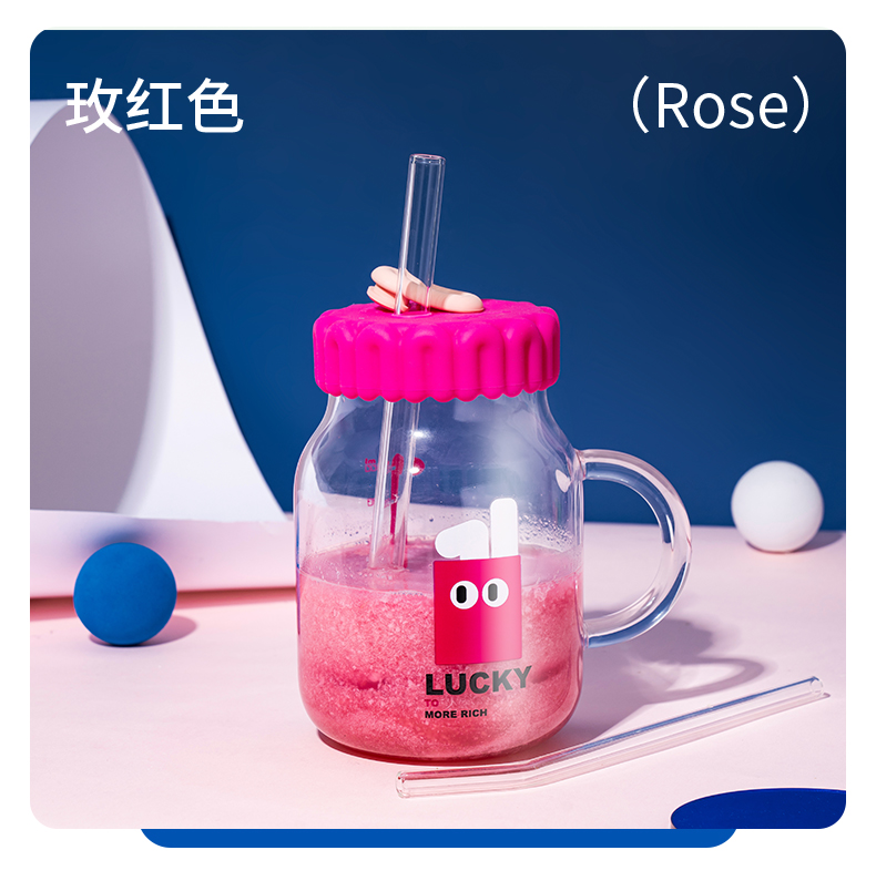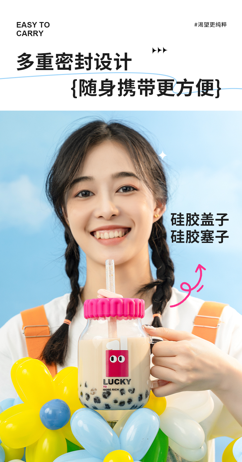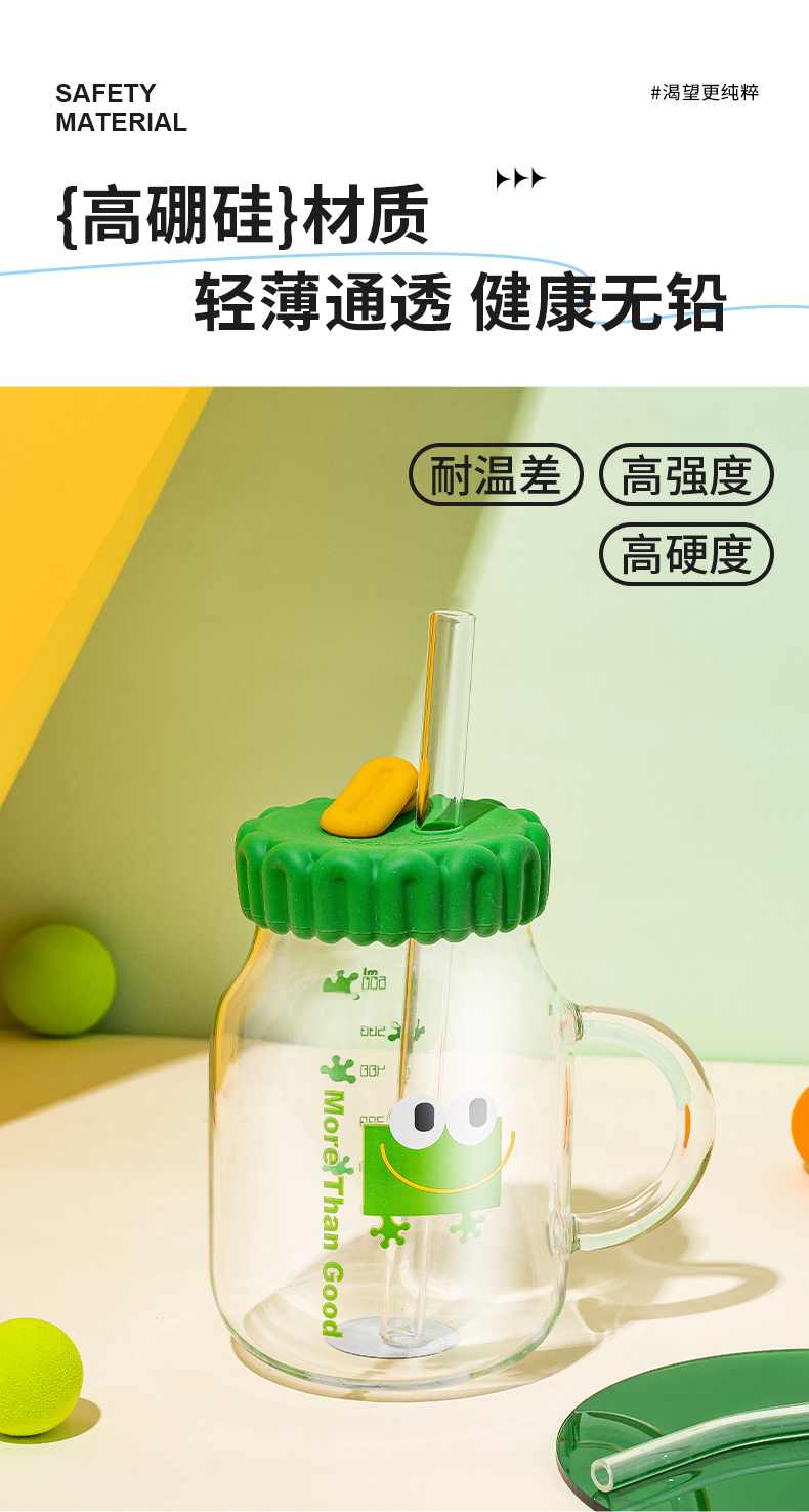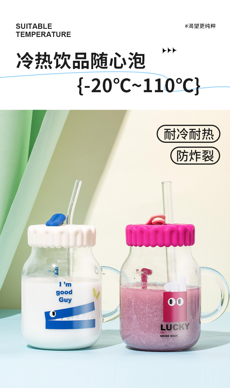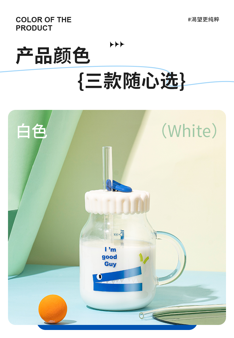 商品名称:【粗+细吸管】迪乐贝尔春夏新款学生喝水杯双吸管带手柄奶茶玻璃杯子高颜值咖啡杯860ML