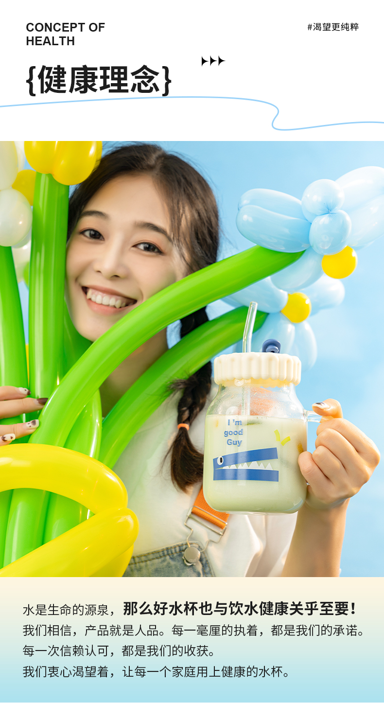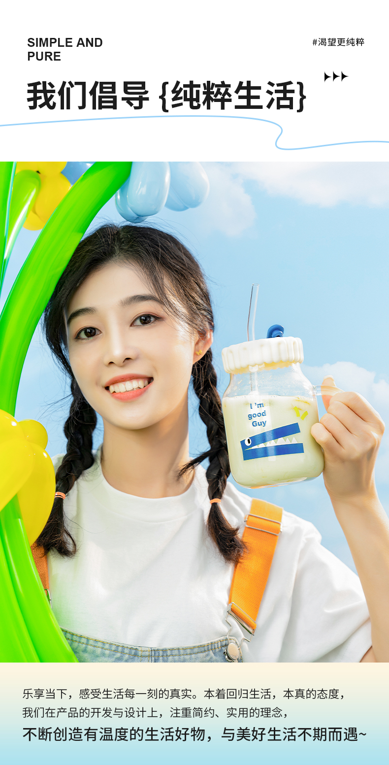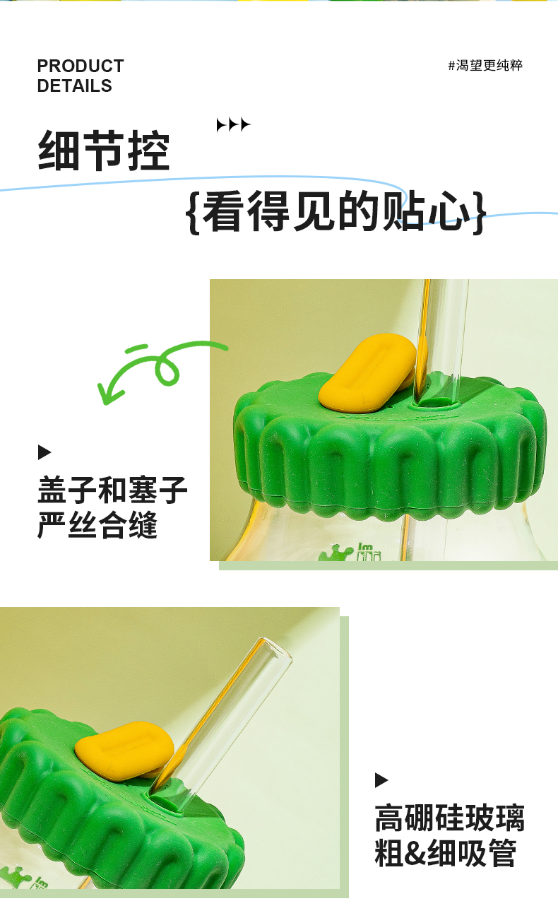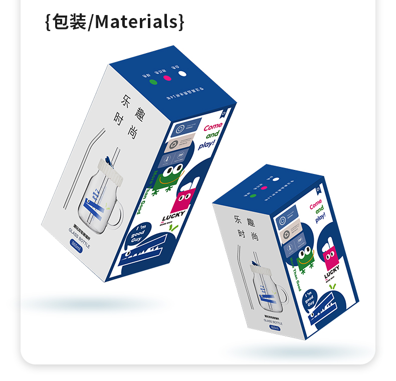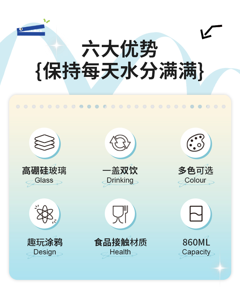 商品名称:【粗+细吸管】迪乐贝尔春夏新款学生喝水杯双吸管带手柄奶茶玻璃杯子高颜值咖啡杯860ML