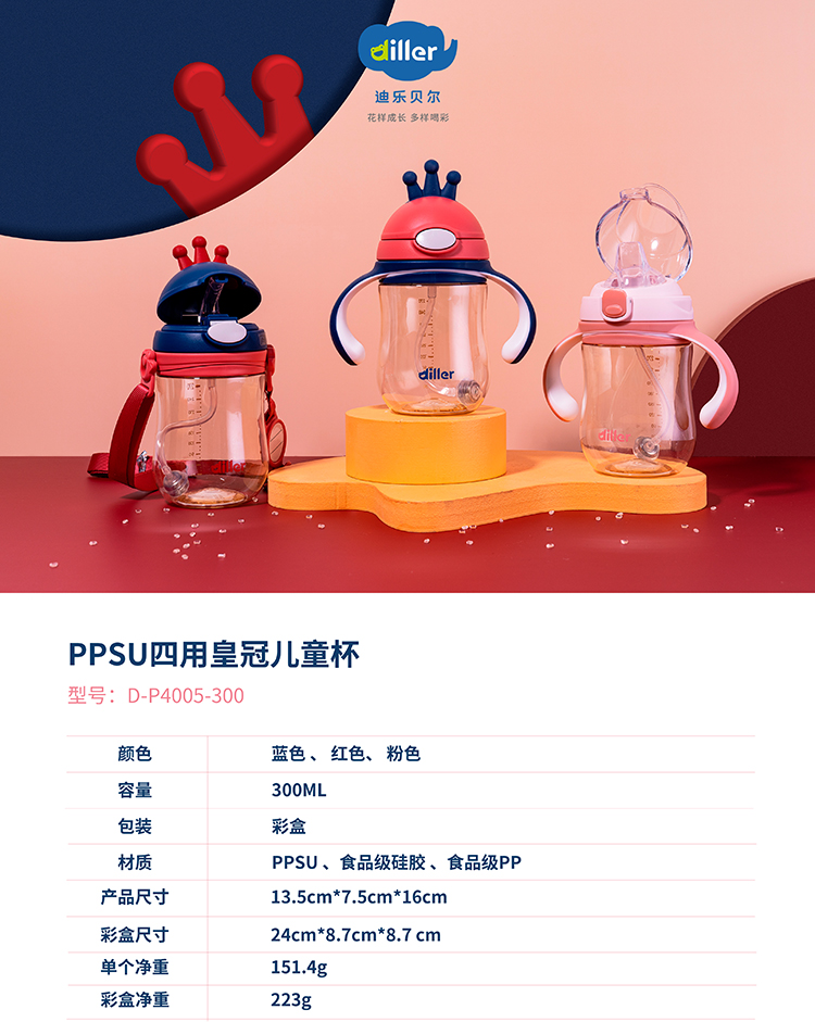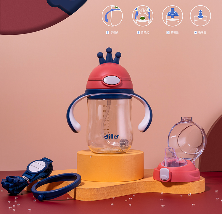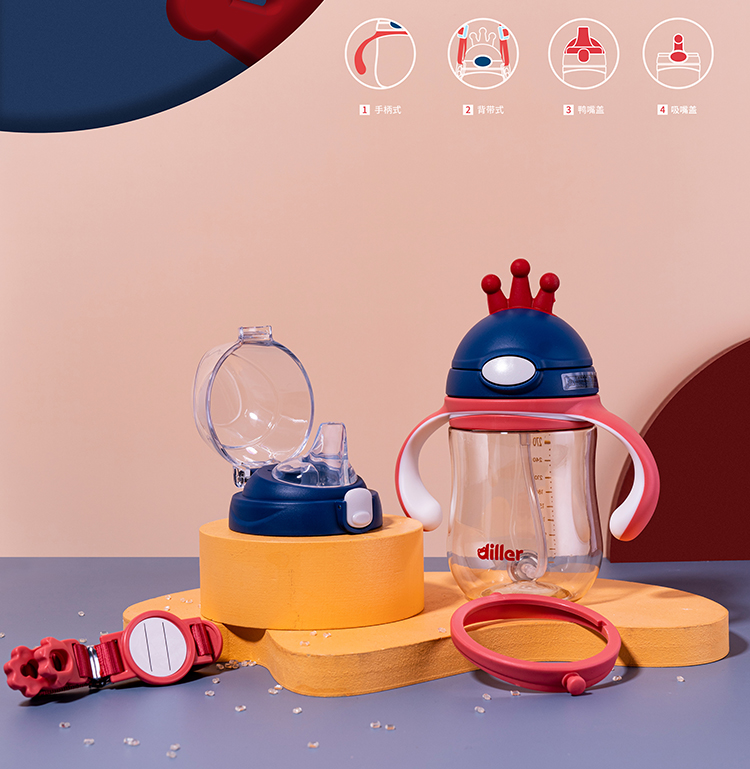 商品名称:【吸嘴盖+鸭嘴盖】迪乐贝尔儿童吸管杯鸭嘴杯宝宝两用杯学饮杯ppsu礼盒装双盖水杯300ML
