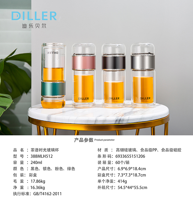 商品名称:【茶水分离】迪乐贝尔泡茶杯成人双层玻璃杯直饮杯女养生花茶杯学生随手杯喝茶杯240ML