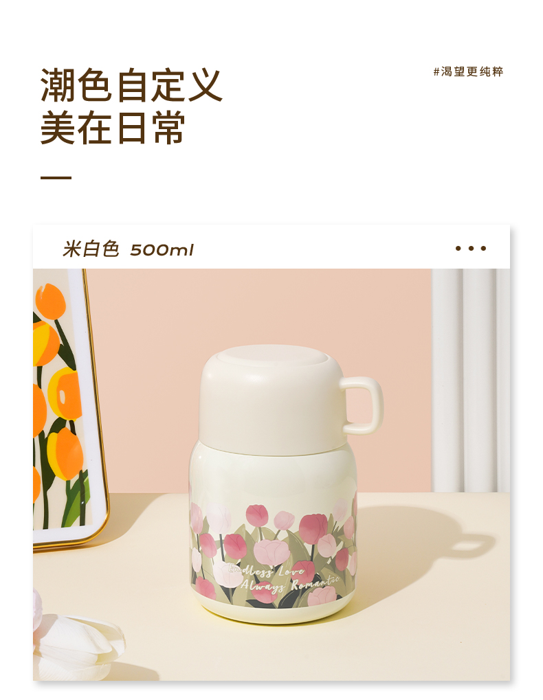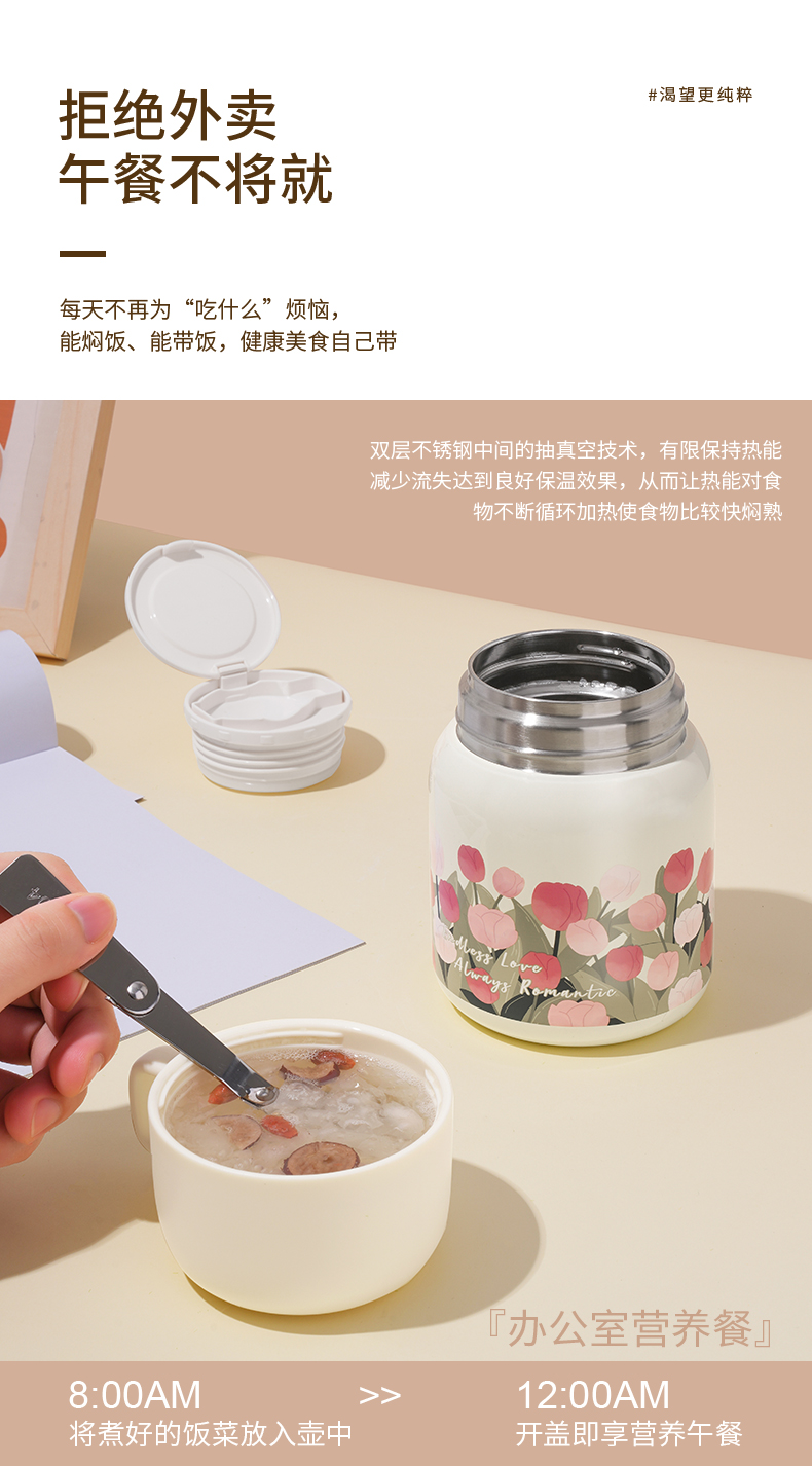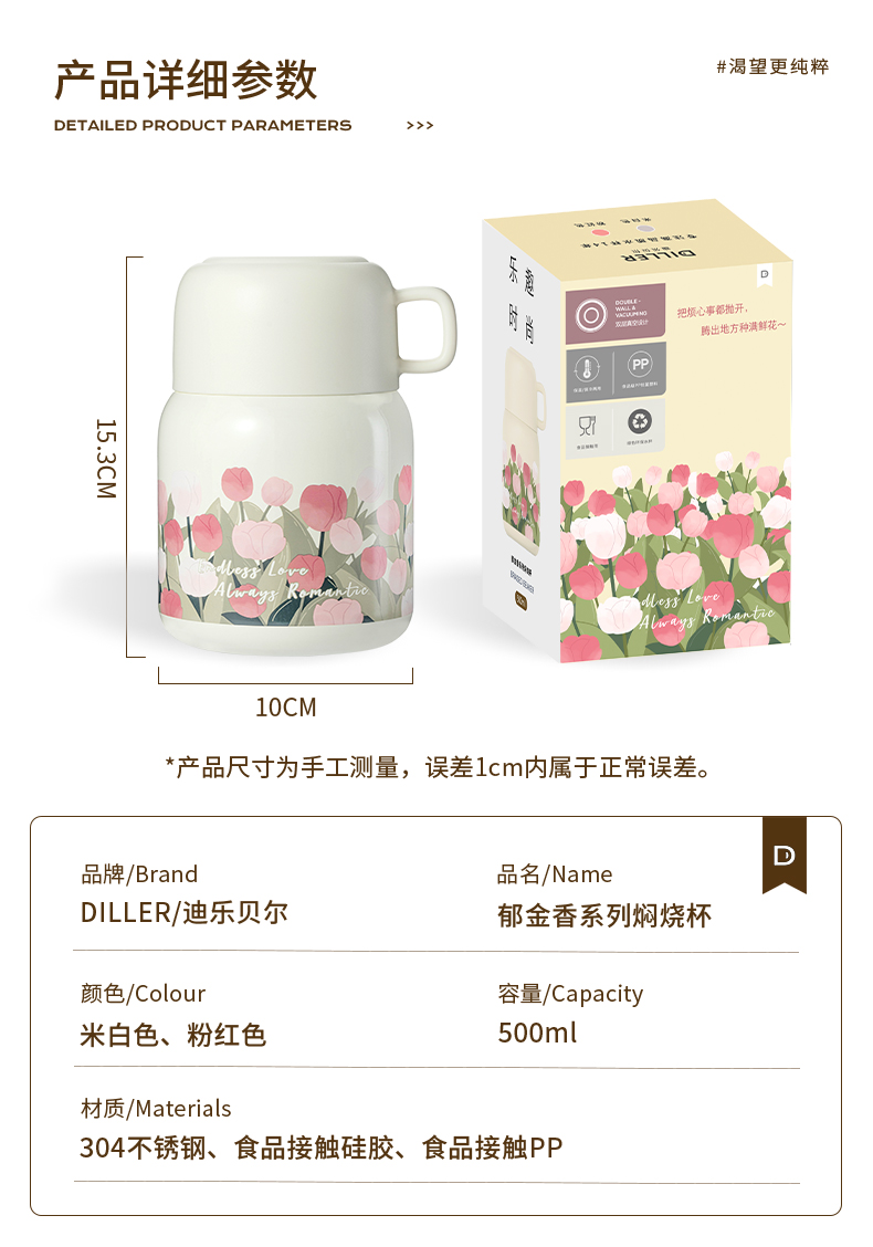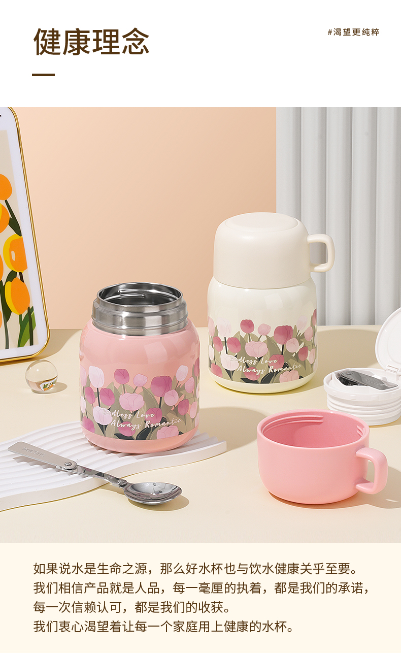 商品名称:【带折叠餐勺】迪乐贝尔新品大肚杯郁金香焖烧壶银耳燕窝焖烧杯上班族便携保温杯500ML