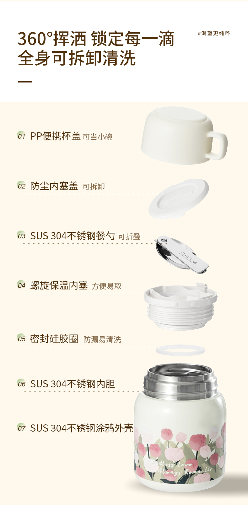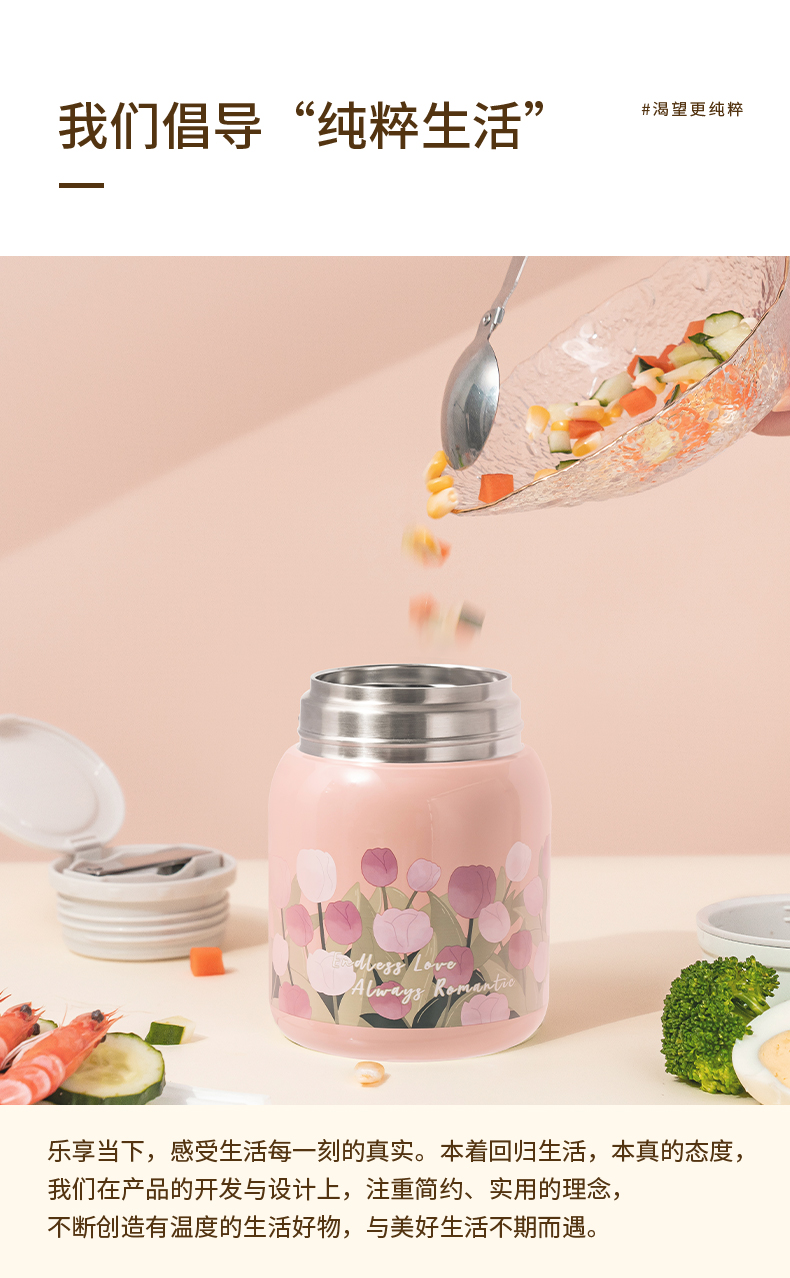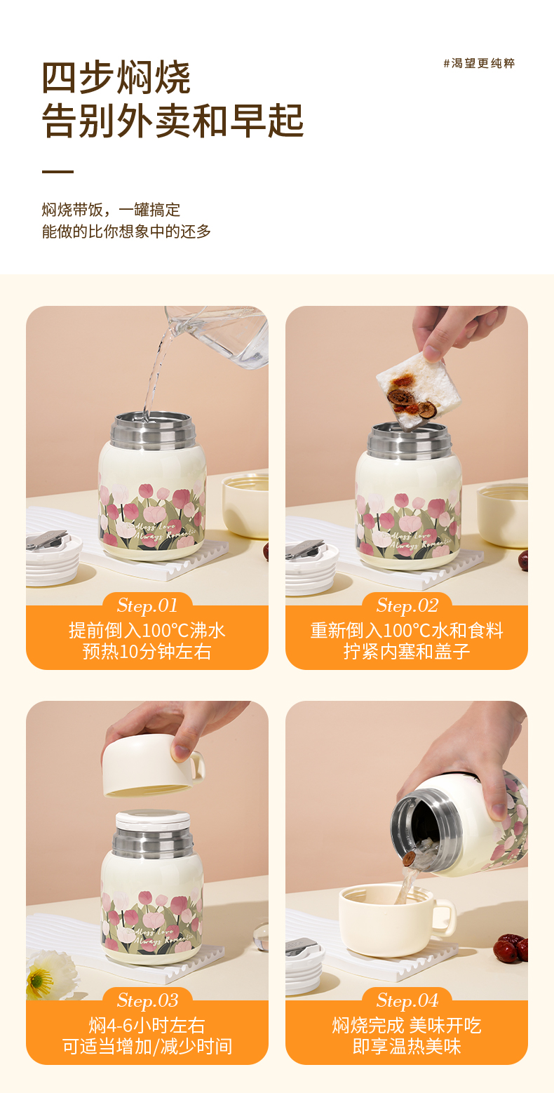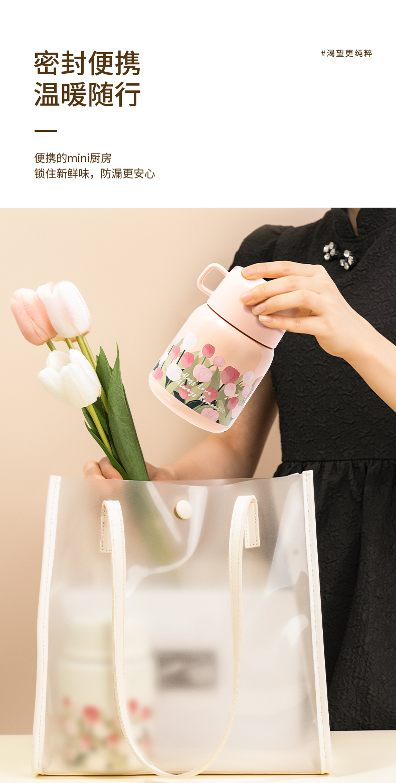 商品名称:【带折叠餐勺】迪乐贝尔新品大肚杯郁金香焖烧壶银耳燕窝焖烧杯上班族便携保温杯500ML
