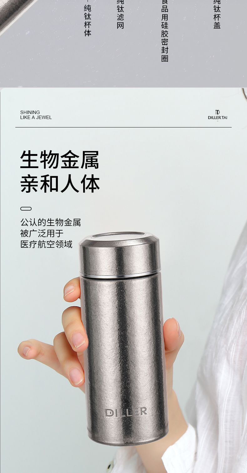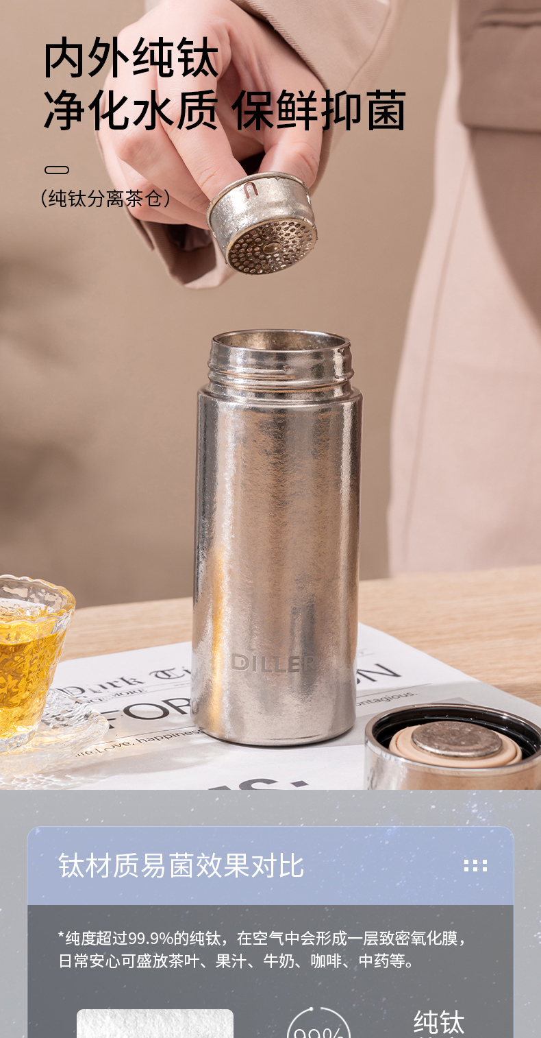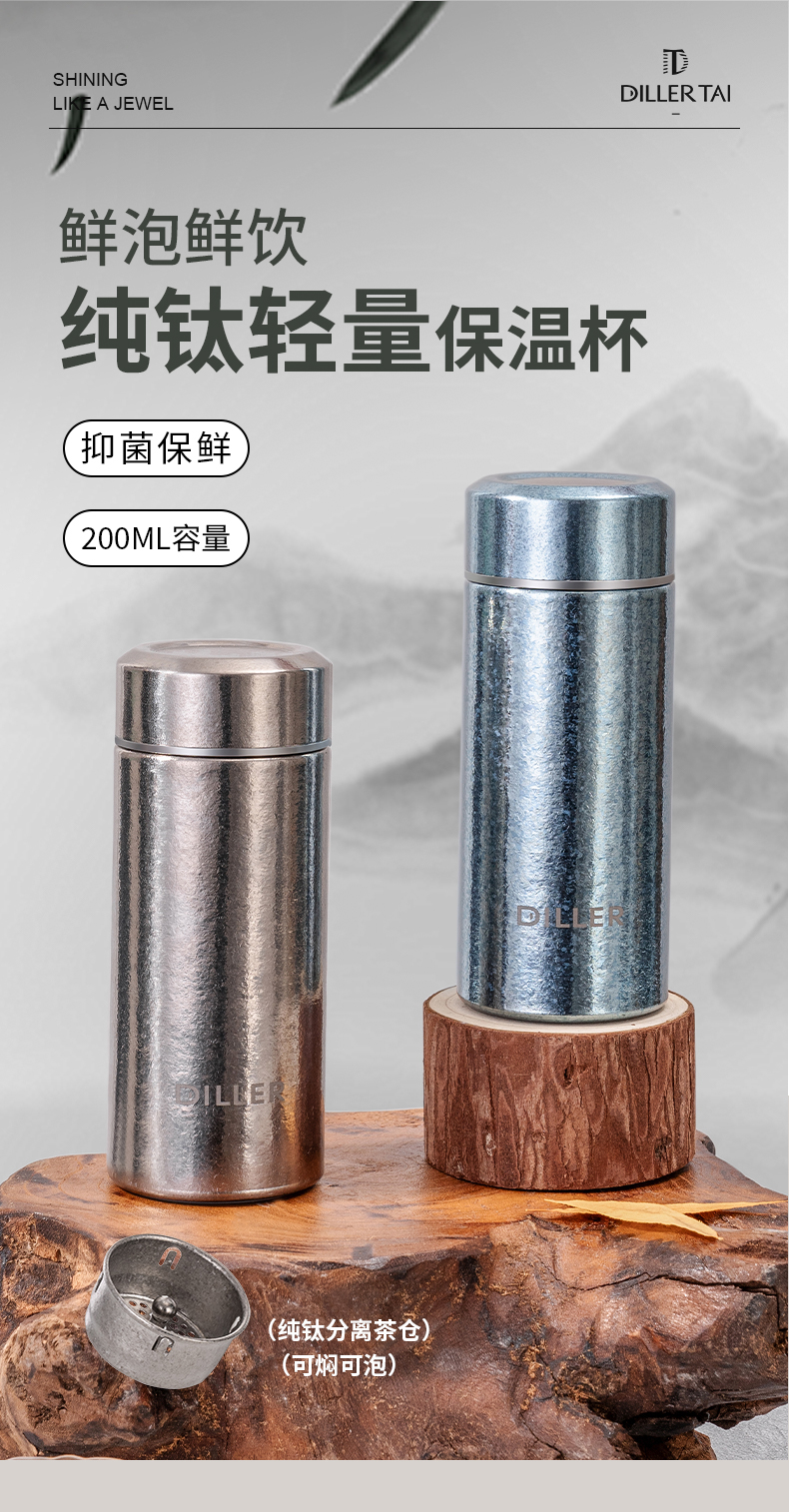 迪乐贝尔新款纯钛轻量茶隔保温杯男女士抗菌保鲜泡茶杯高档商务便携随身杯直饮杯200ML