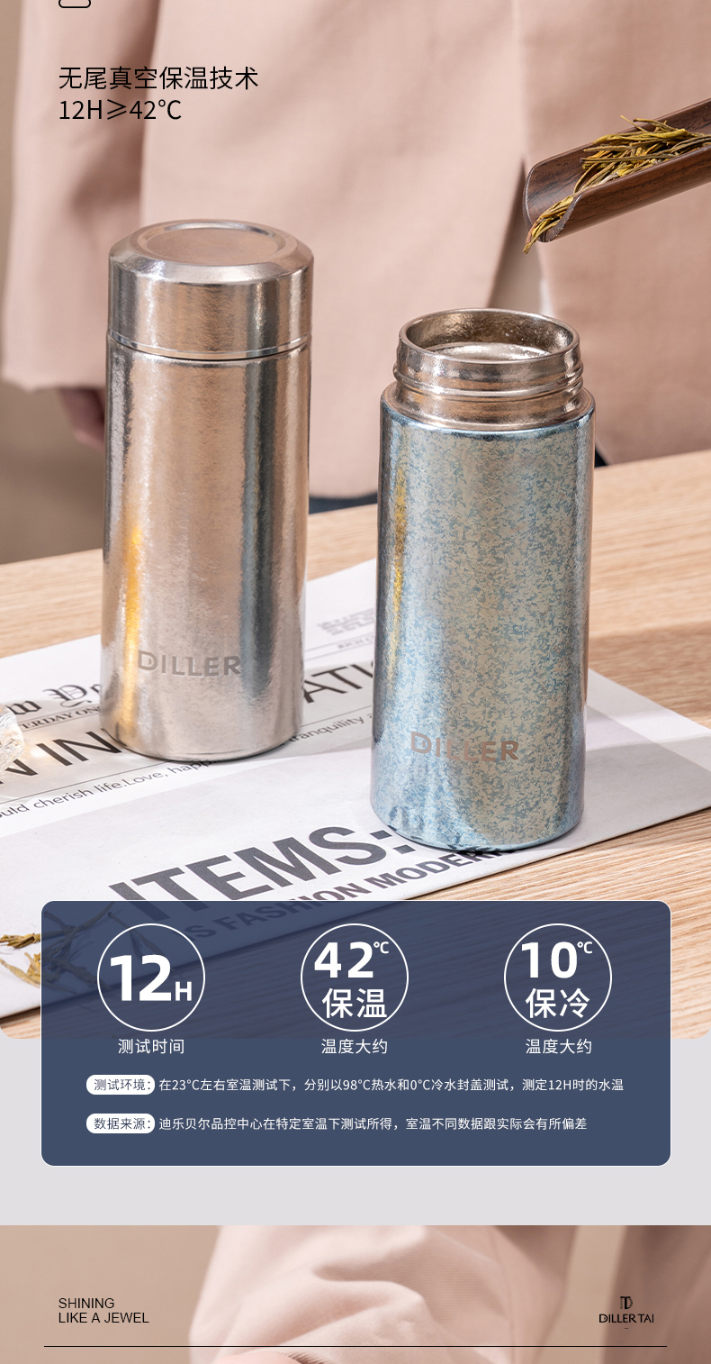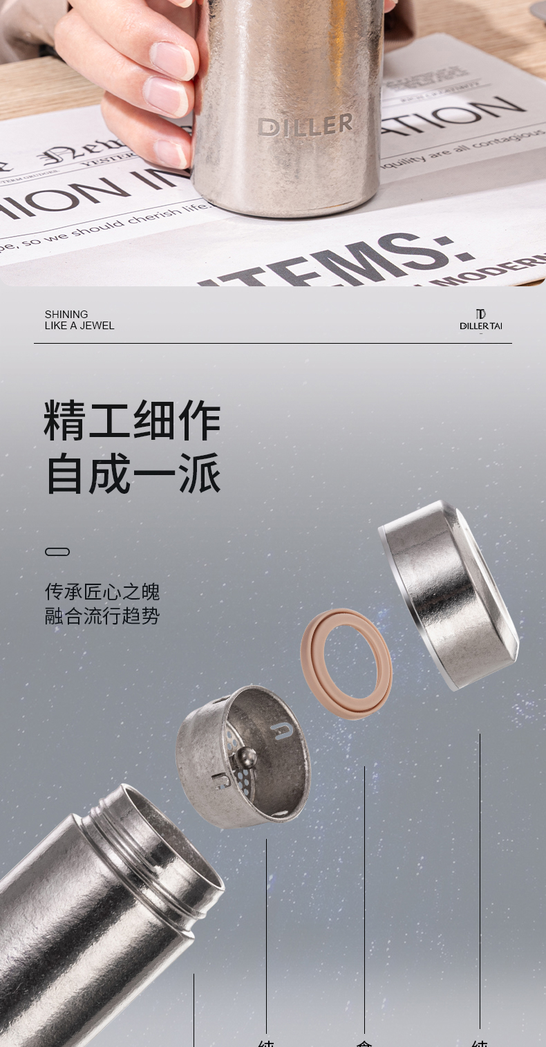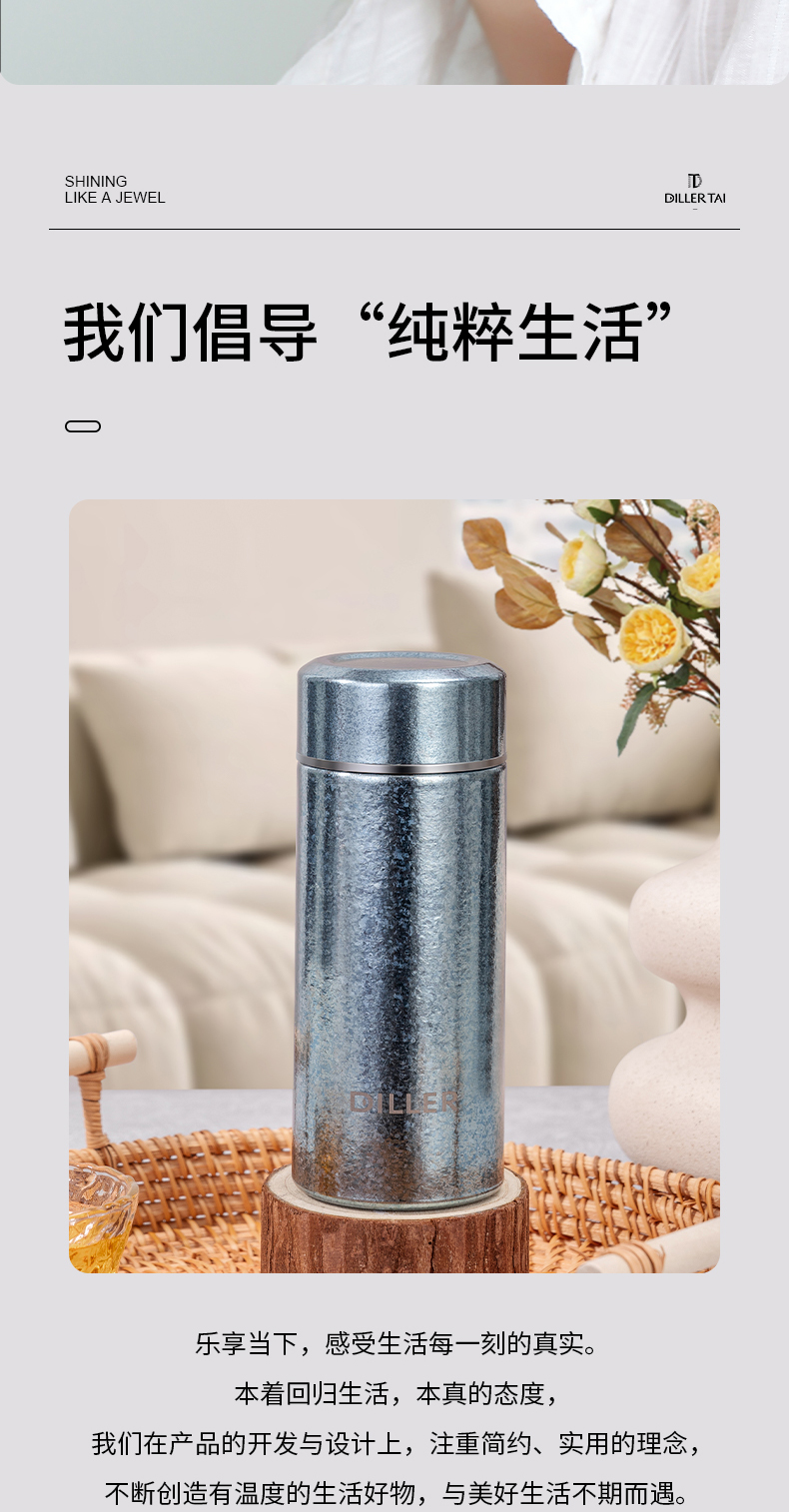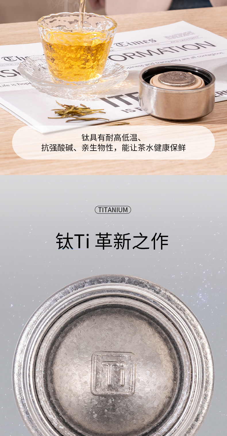 迪乐贝尔新款纯钛轻量茶隔保温杯男女士抗菌保鲜泡茶杯高档商务便携随身杯直饮杯200ML