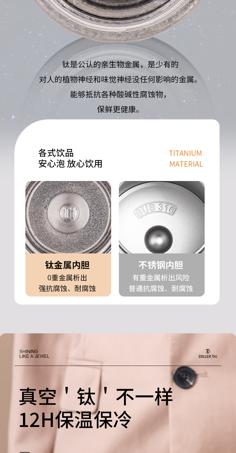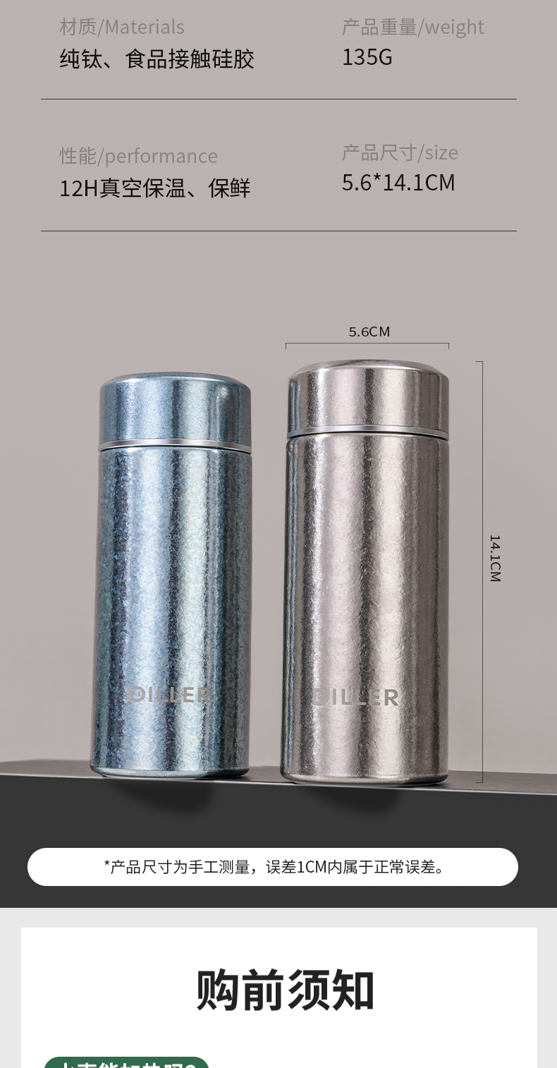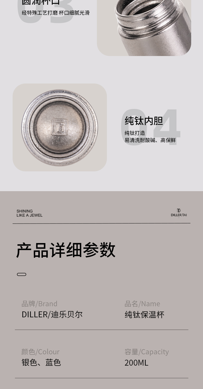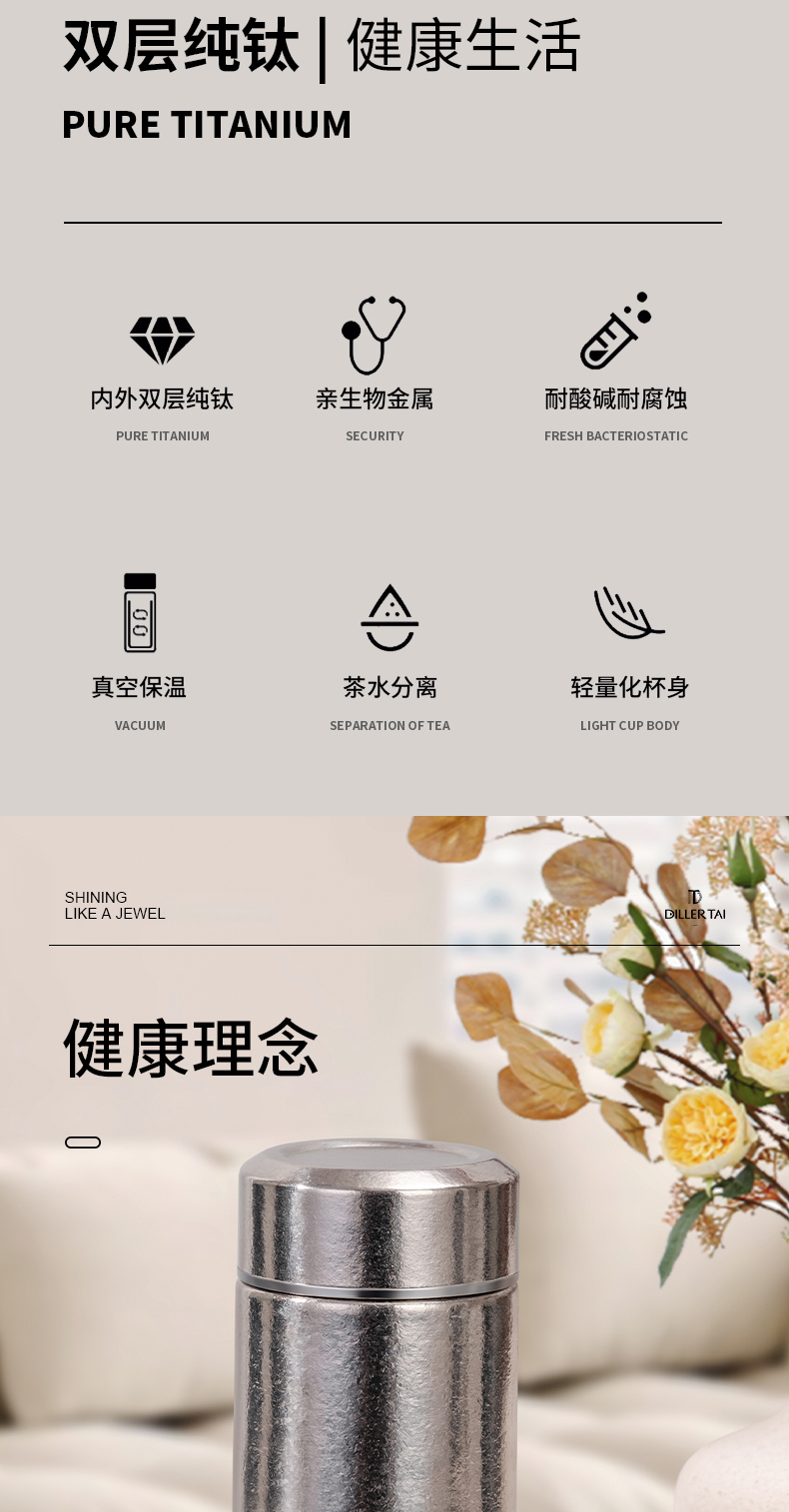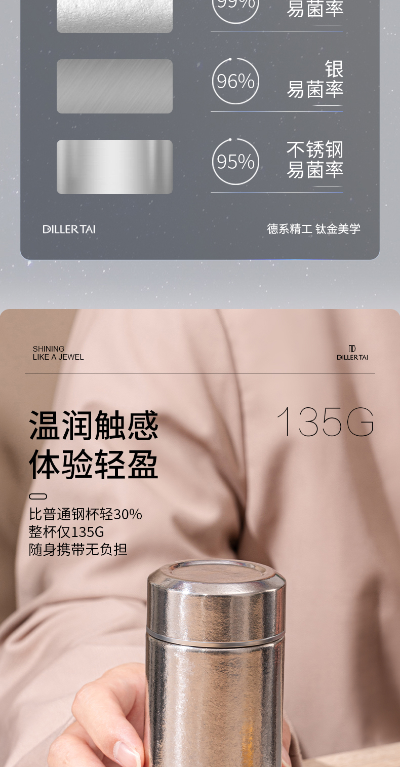 商品名称:迪乐贝尔新款纯钛轻量茶隔保温杯男女士抗菌保鲜泡茶杯高档商务便携随身杯直饮杯200ML