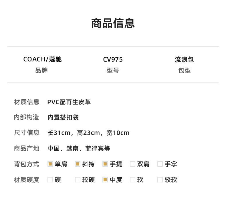 商品名称:COACH 奥莱款女士PVC配皮单肩斜挎手提包 CV975IMXAQ