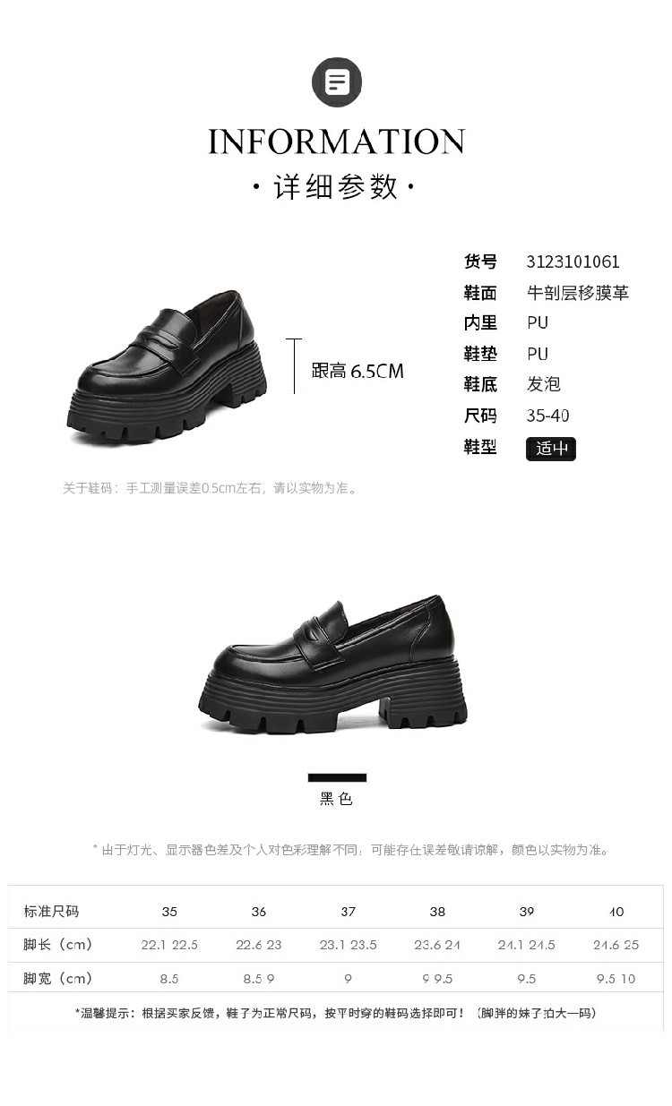 【小个子增高】春季复古厚底乐福鞋女鞋学院风小皮鞋通勤单鞋女鞋 267290