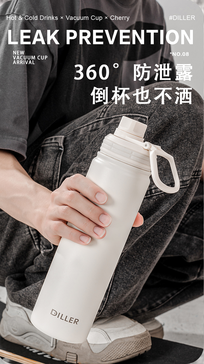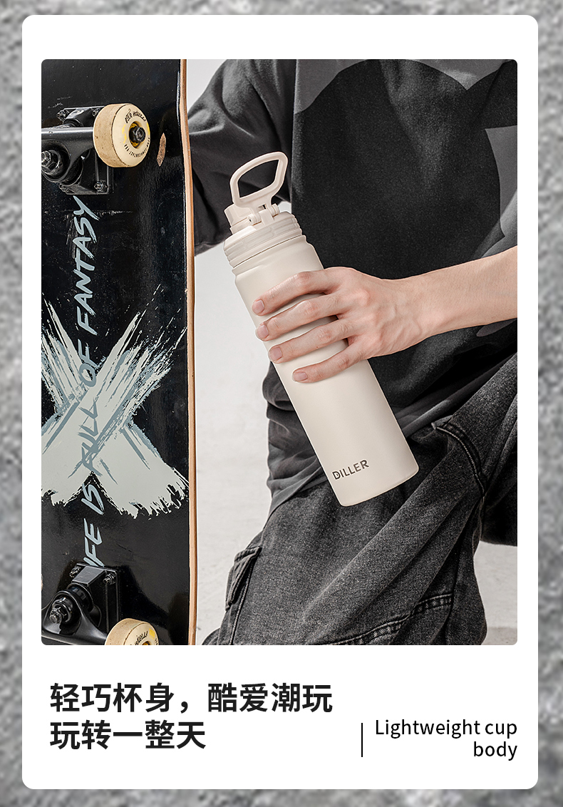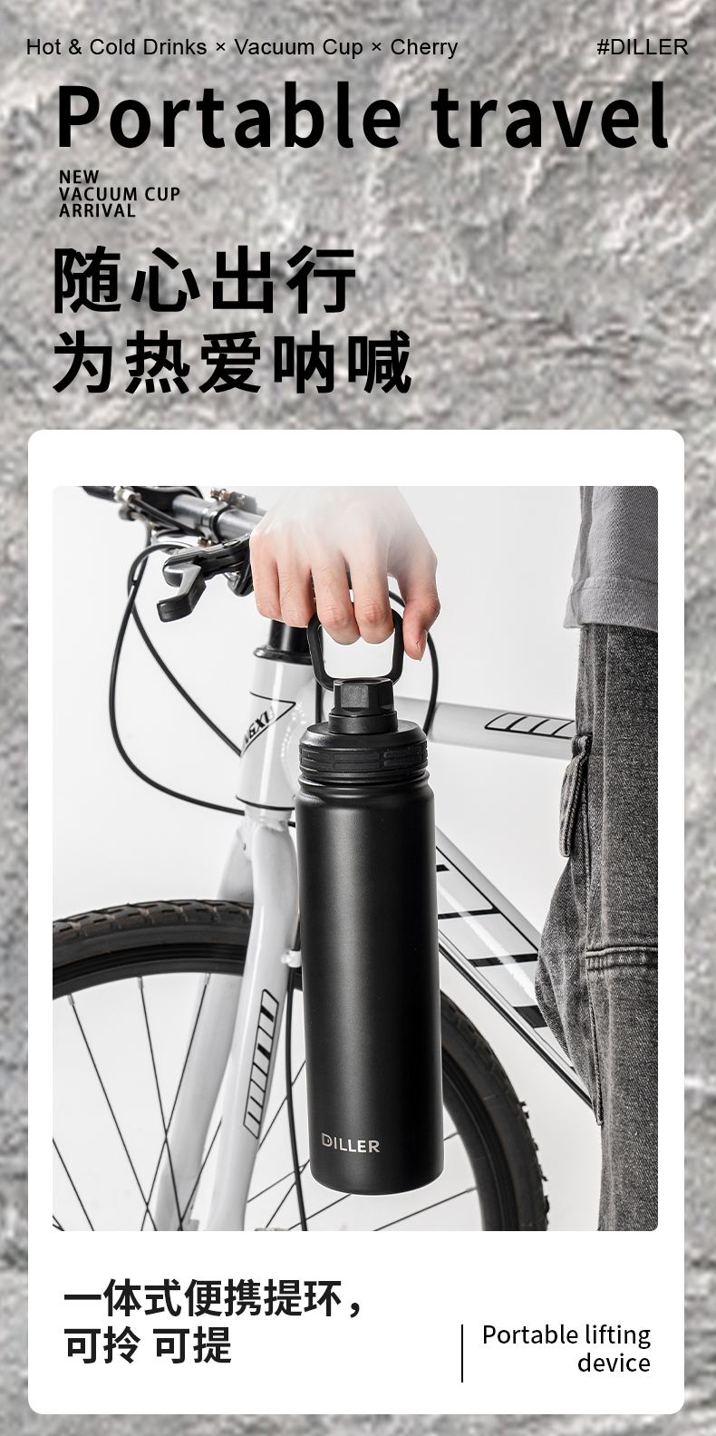 迪乐贝尔新款高颜值成人户外运动保温杯大容量提环杯子304不锈钢上学水杯骑行杯包邮