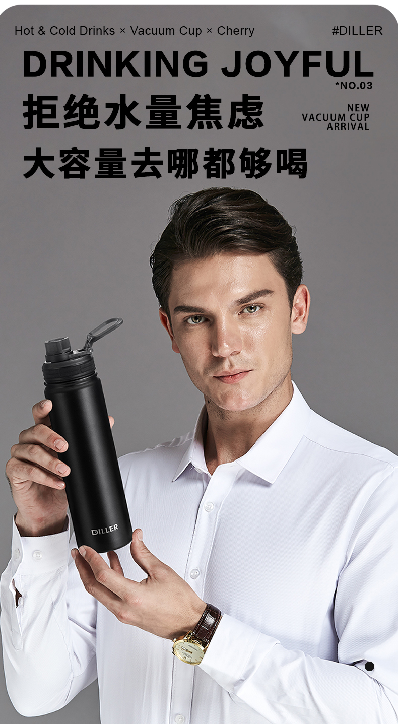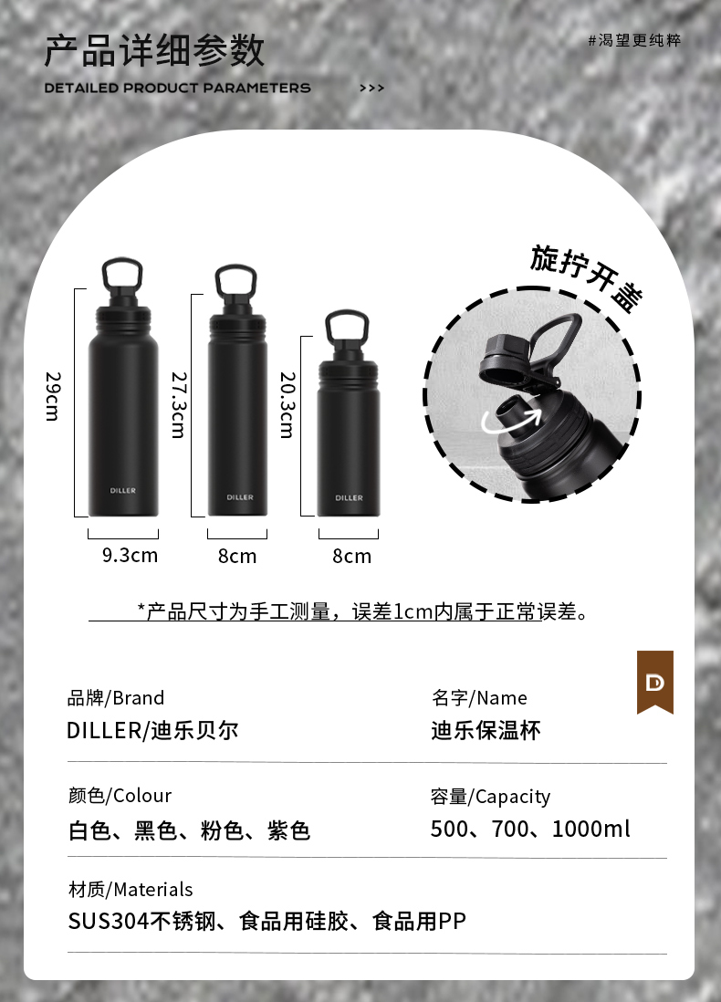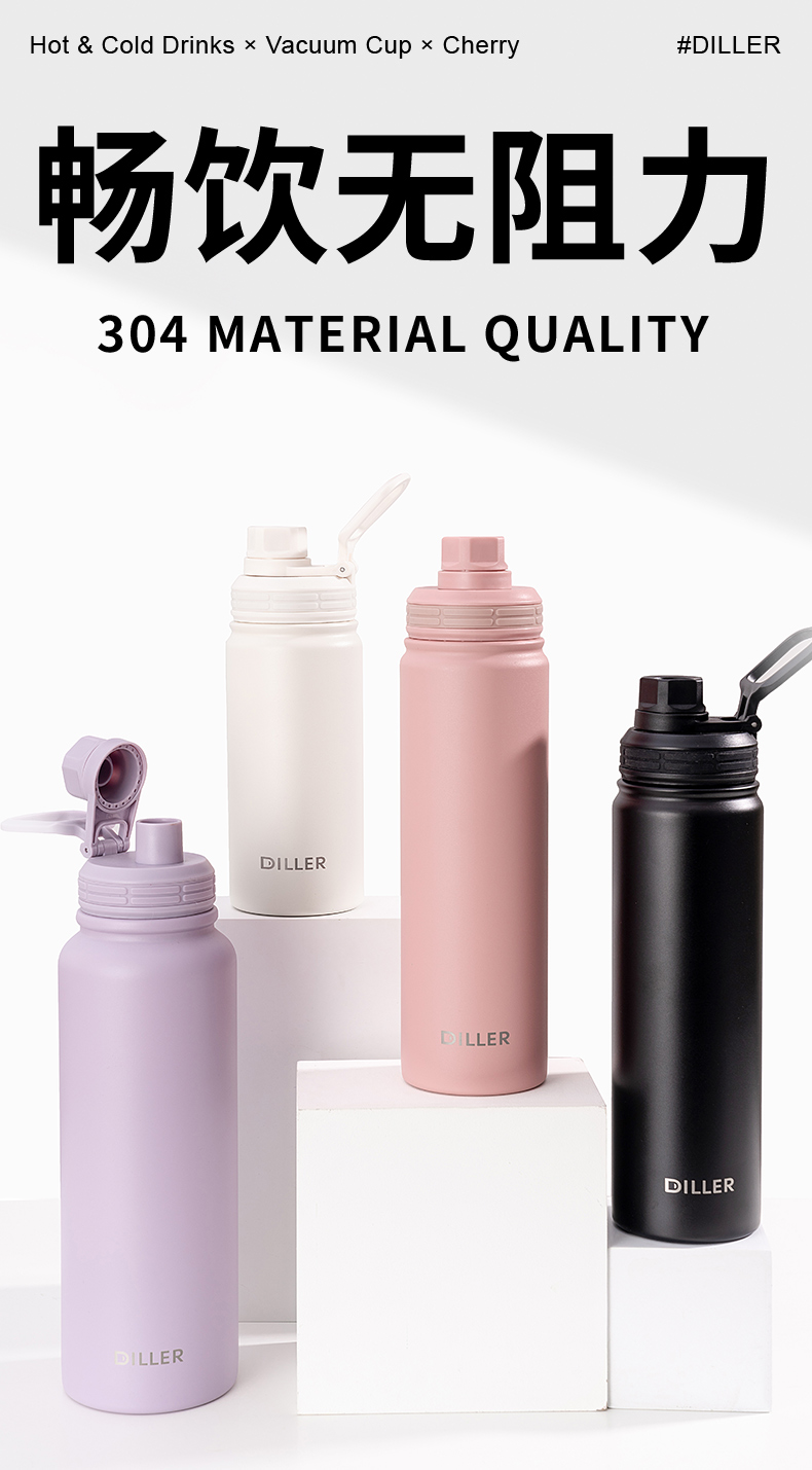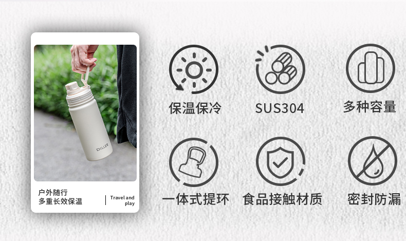 迪乐贝尔新款高颜值成人户外运动保温杯大容量提环杯子304不锈钢上学水杯骑行杯包邮