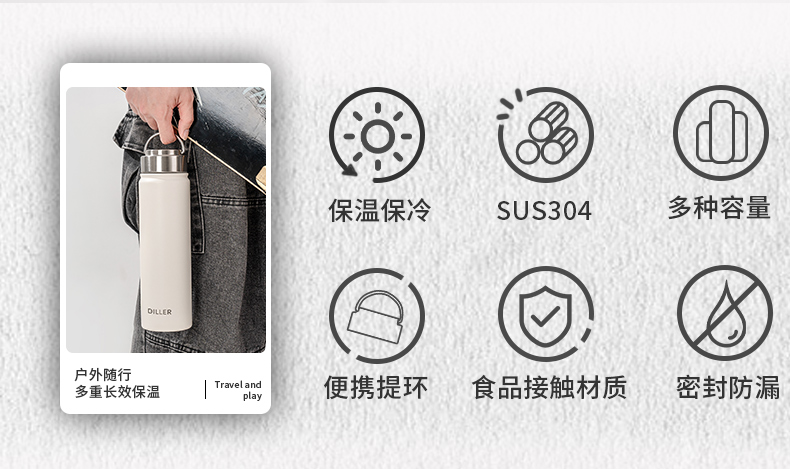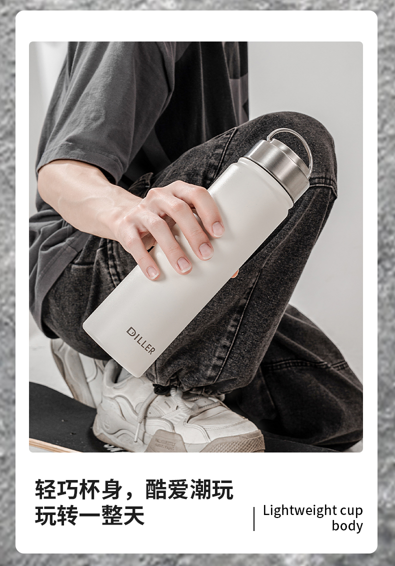 商品名称:迪乐贝尔新品成人保温杯秋冬款高颜值保温杯304不锈钢大容量提环杯礼品商务直饮杯包邮