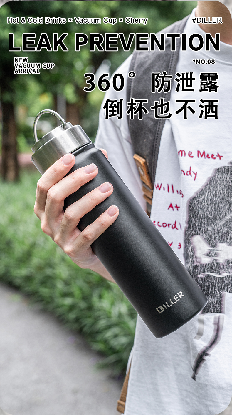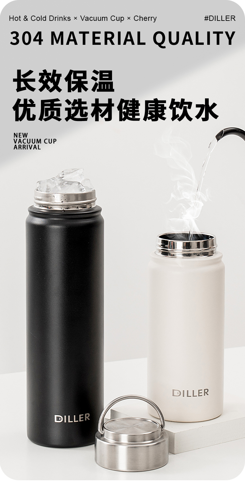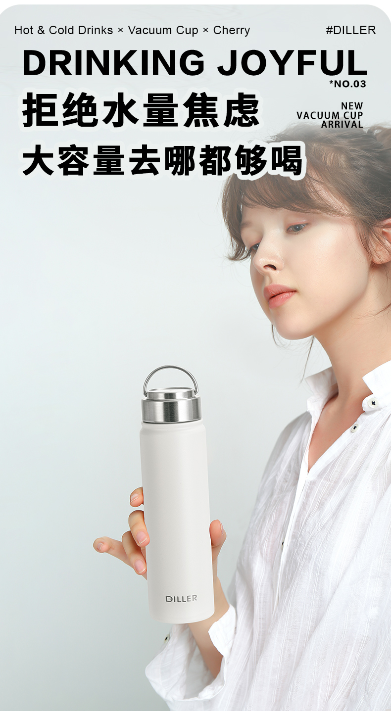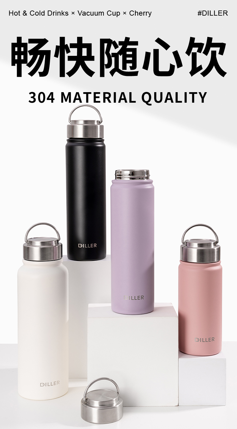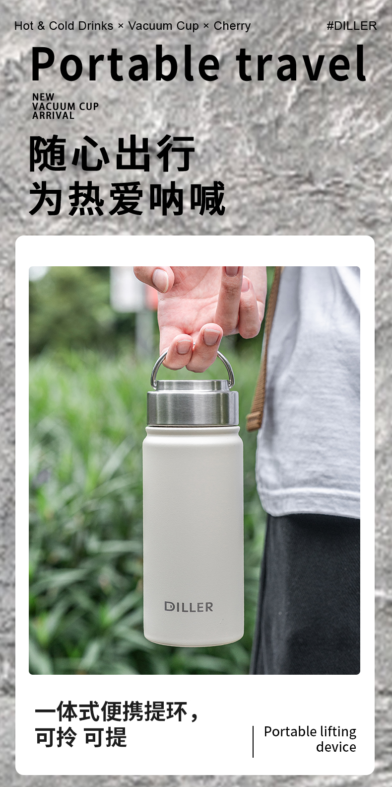 迪乐贝尔新品成人保温杯秋冬款高颜值保温杯304不锈钢大容量提环杯礼品商务直饮杯包邮