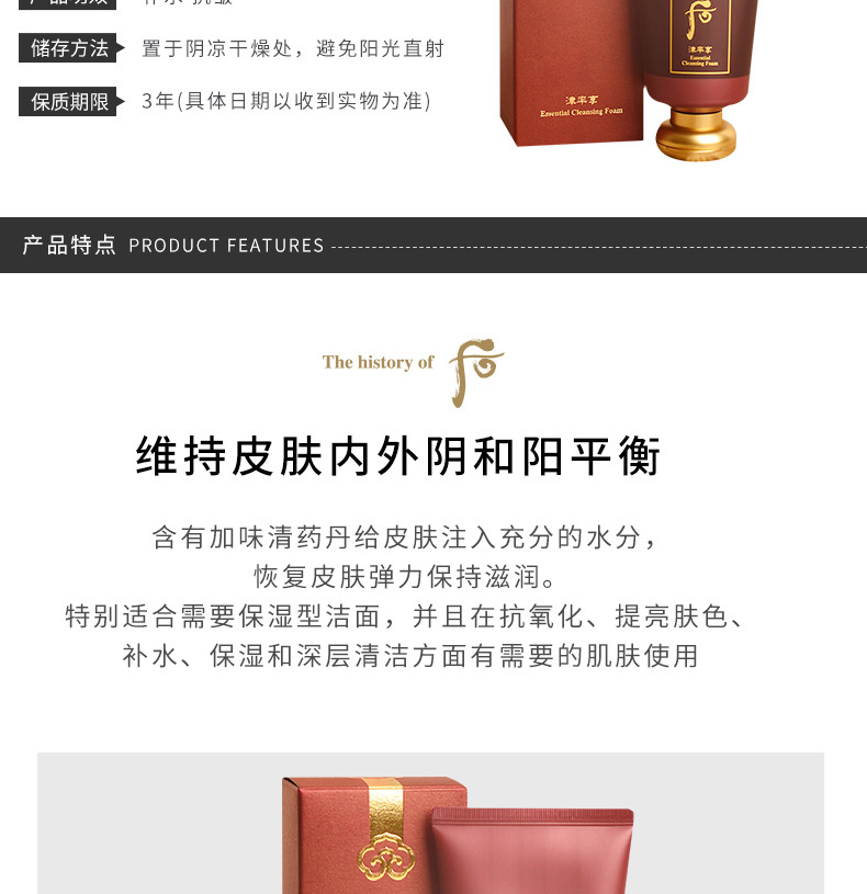 商品名称:Whoo/后 津率享红华凝香洁面乳 180ML 国内专柜版