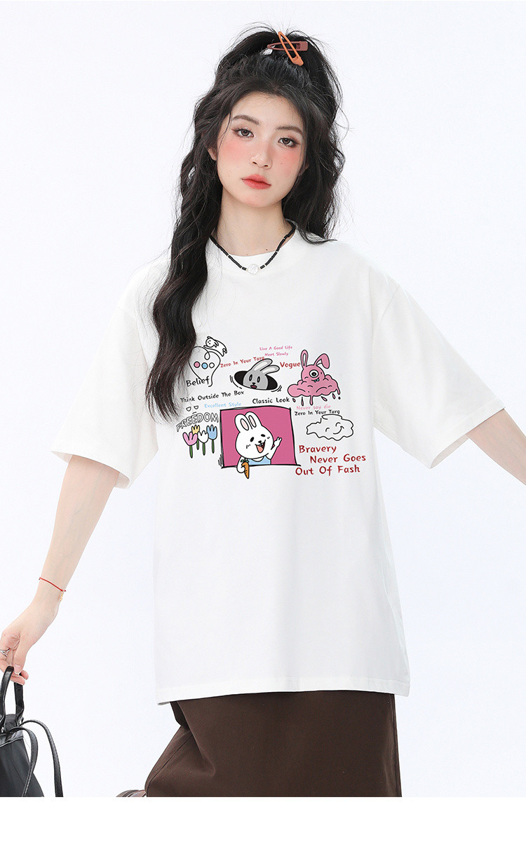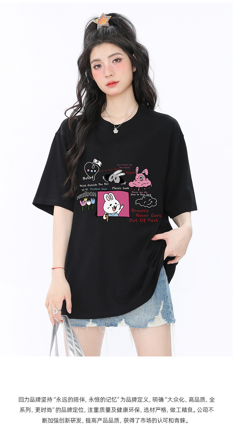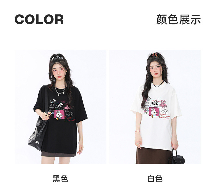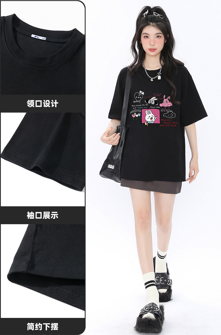 商品名称:【女装】可爱印花休闲短袖T恤男女2025夏季纯棉宽松潮牌上衣 277139