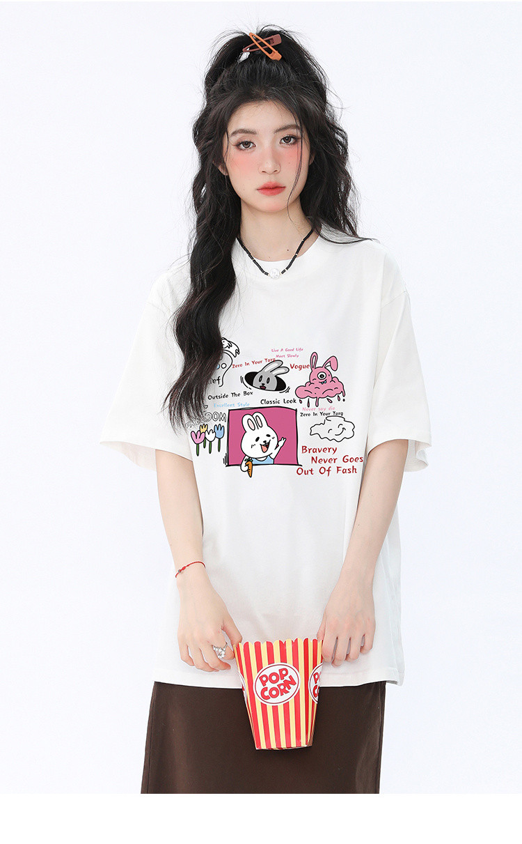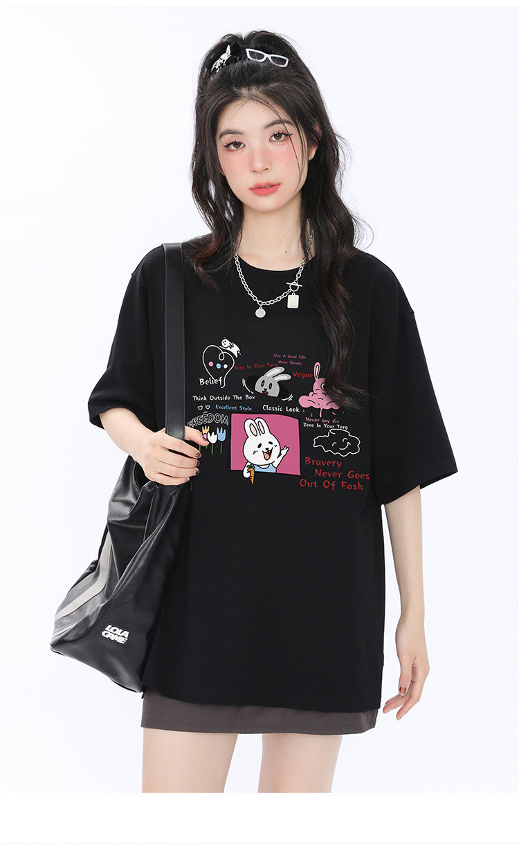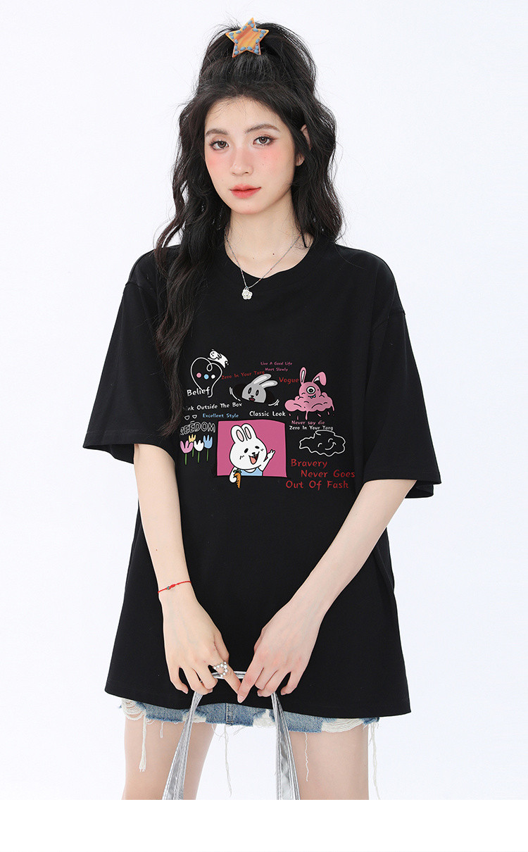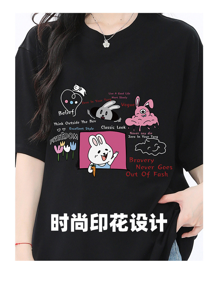商品名称:【女装】可爱印花休闲短袖T恤男女2025夏季纯棉宽松潮牌上衣 277139