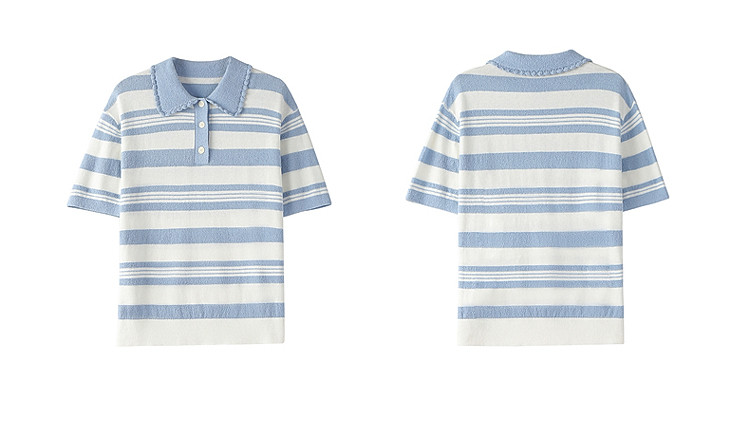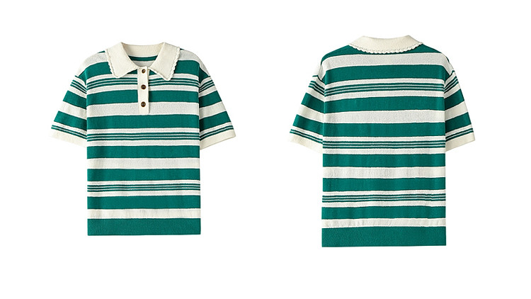 商品名称:限定系列OCH.春装 亚麻棉polo领条纹上衣短袖针织衫女 811599