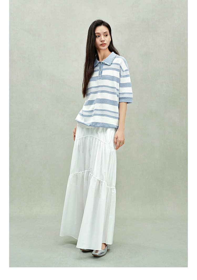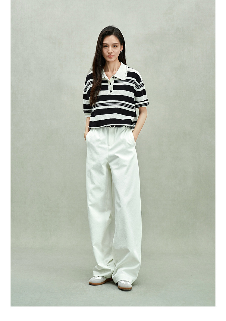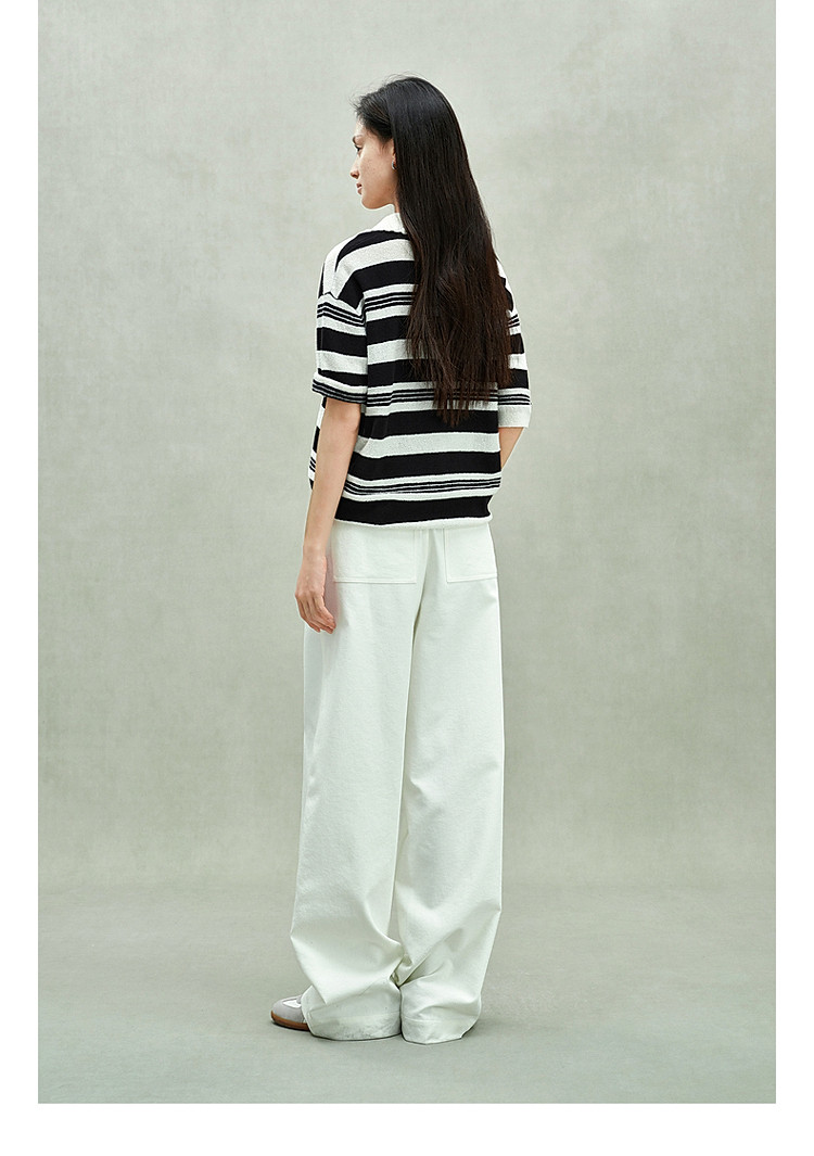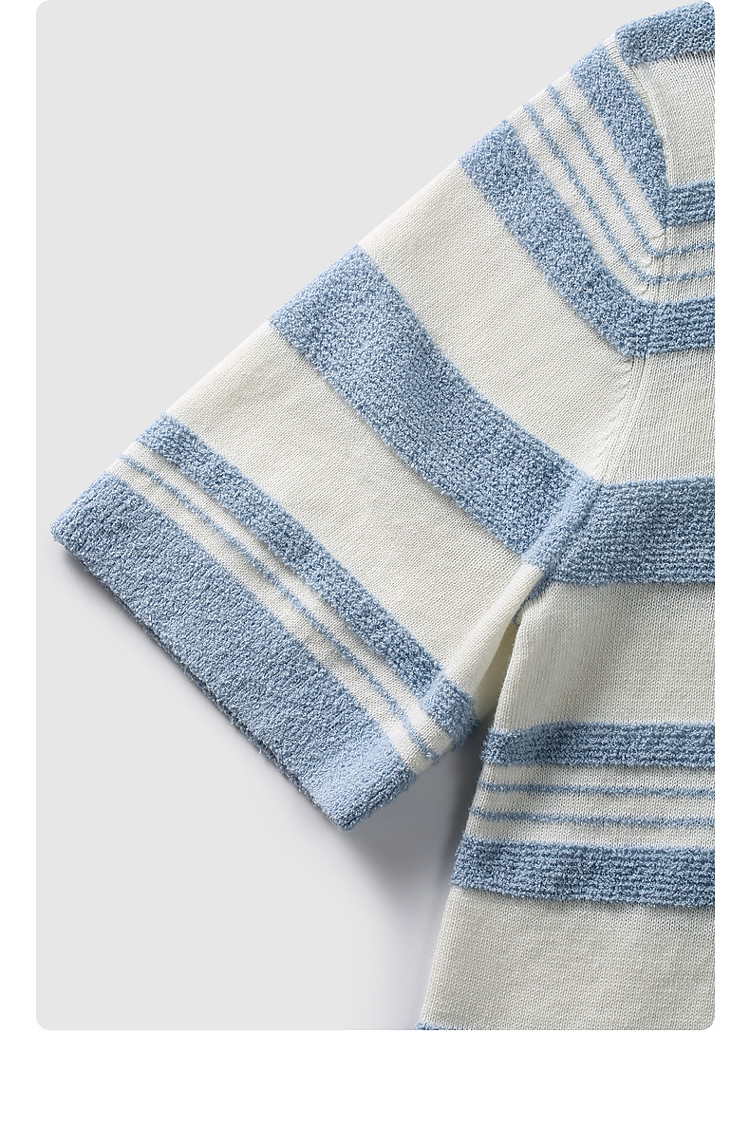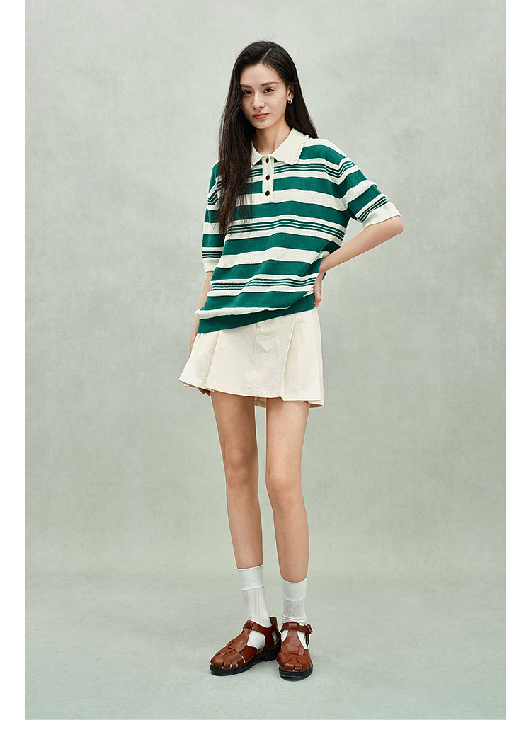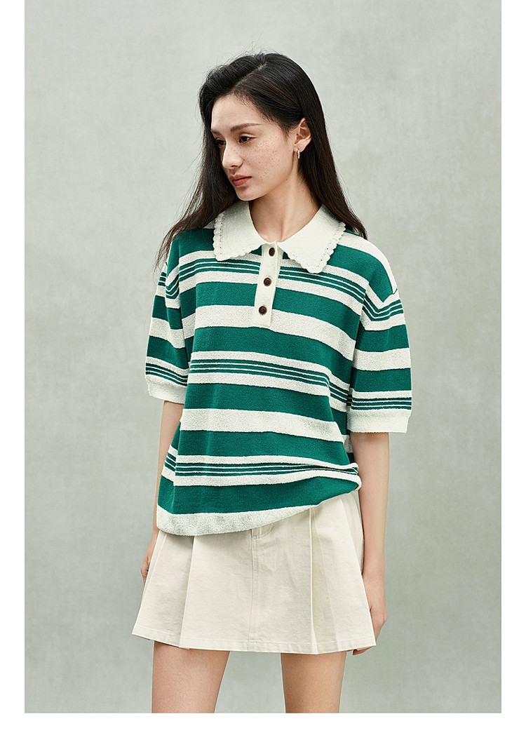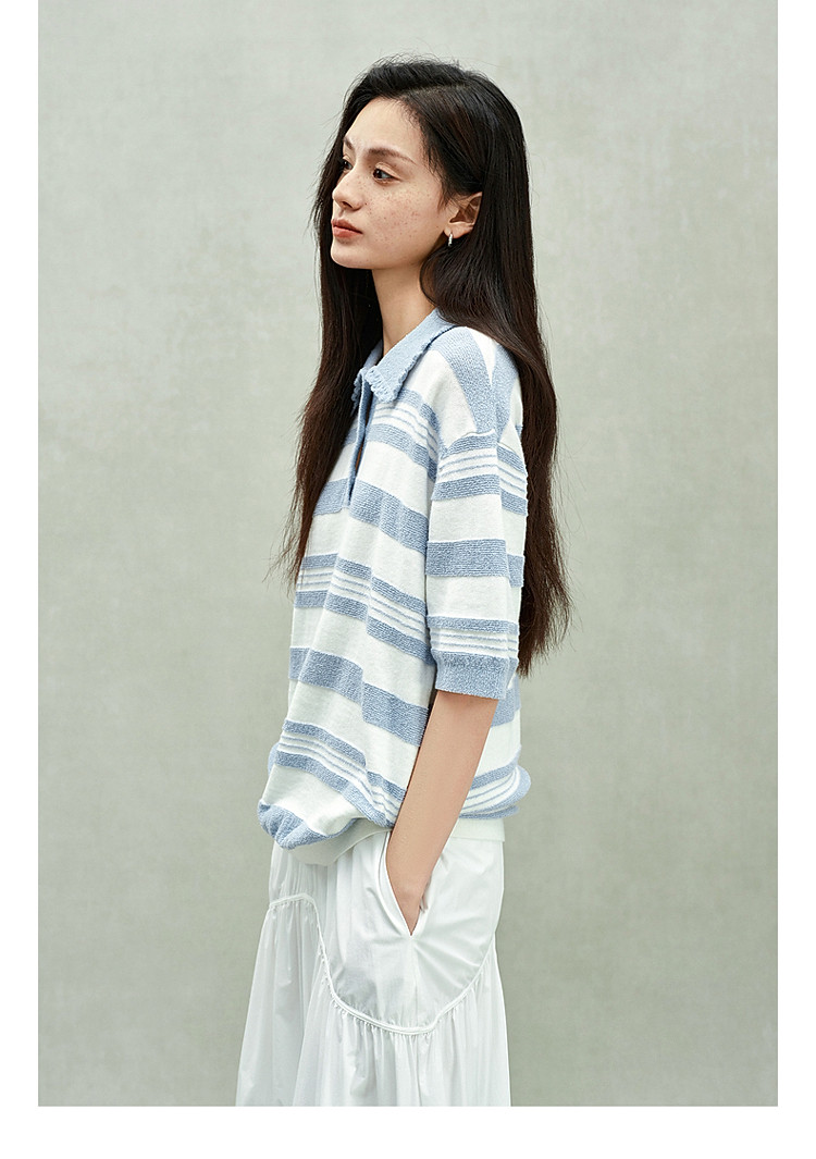 限定系列OCH.春装 亚麻棉polo领条纹上衣短袖针织衫女 811599